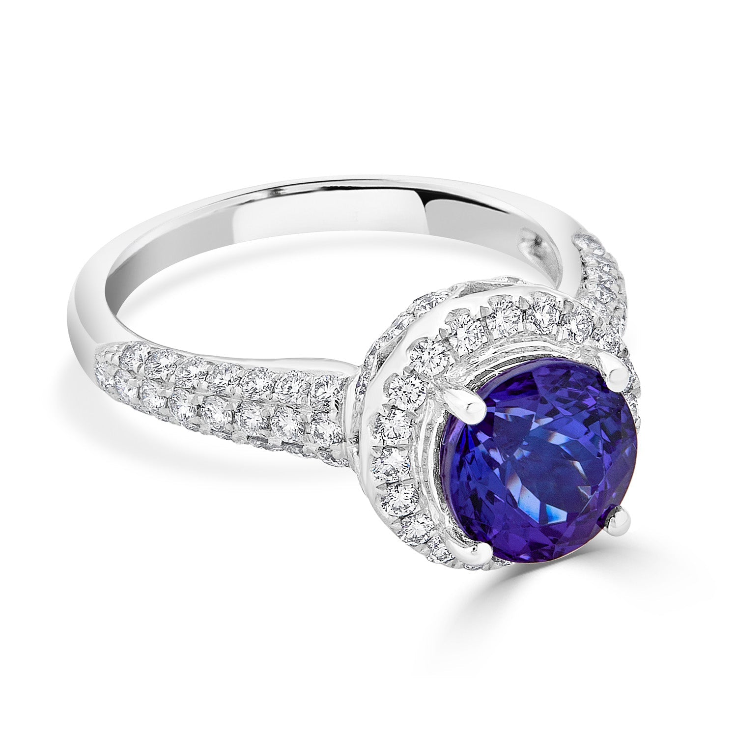 The Refined Radiance Of Round-cut Tanzanite And Round Diamonds Will Lend An Opulent Finish To Any Look. The Gemstones Come Together With Luminous White Gold In An Enchanting Arrangement For A Fabulous Look.