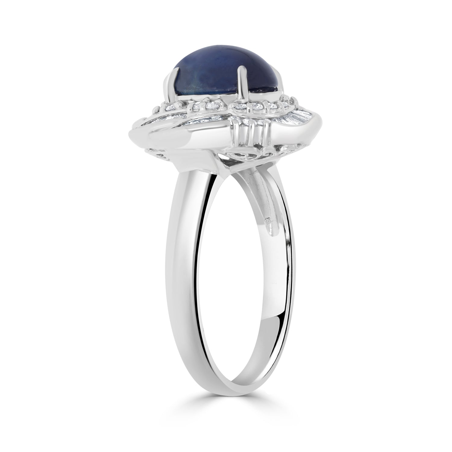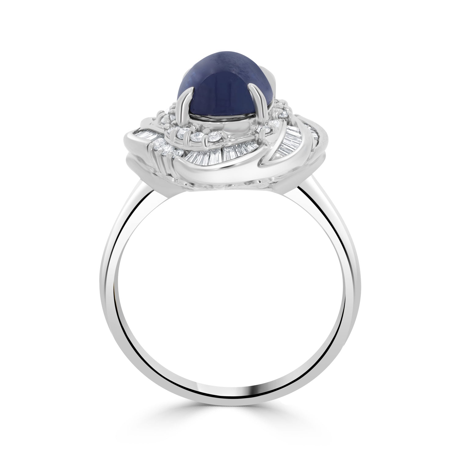 This stylish ring is set with an oval-cut Sapphire, mix Diamonds and platinum 900.