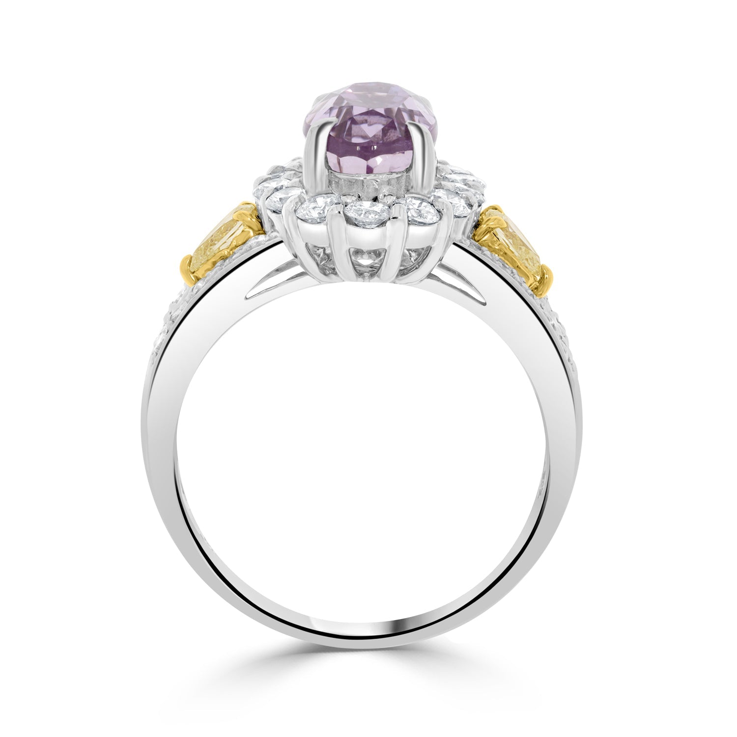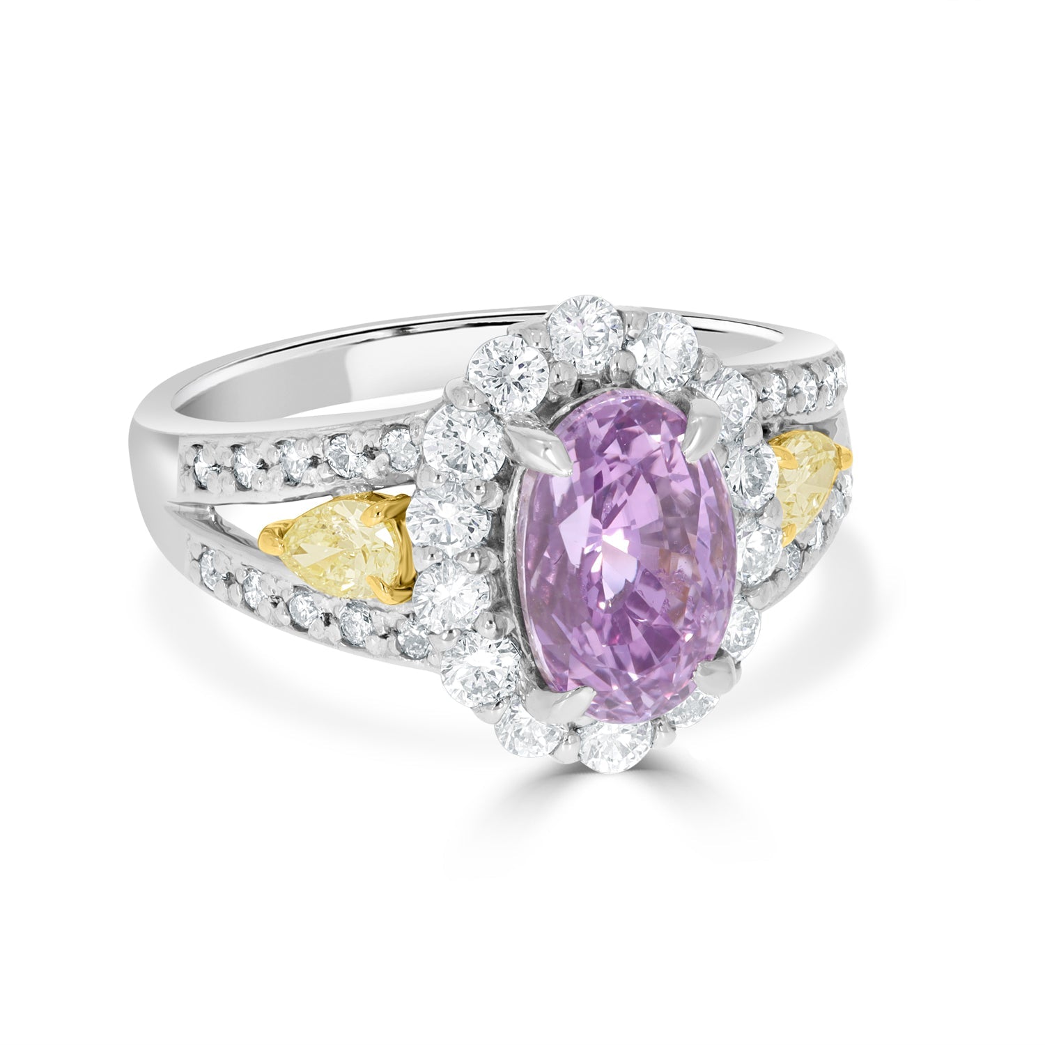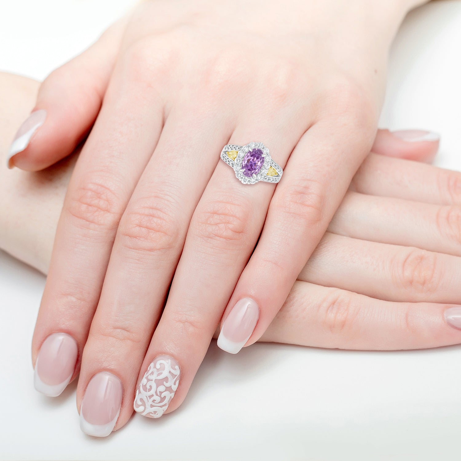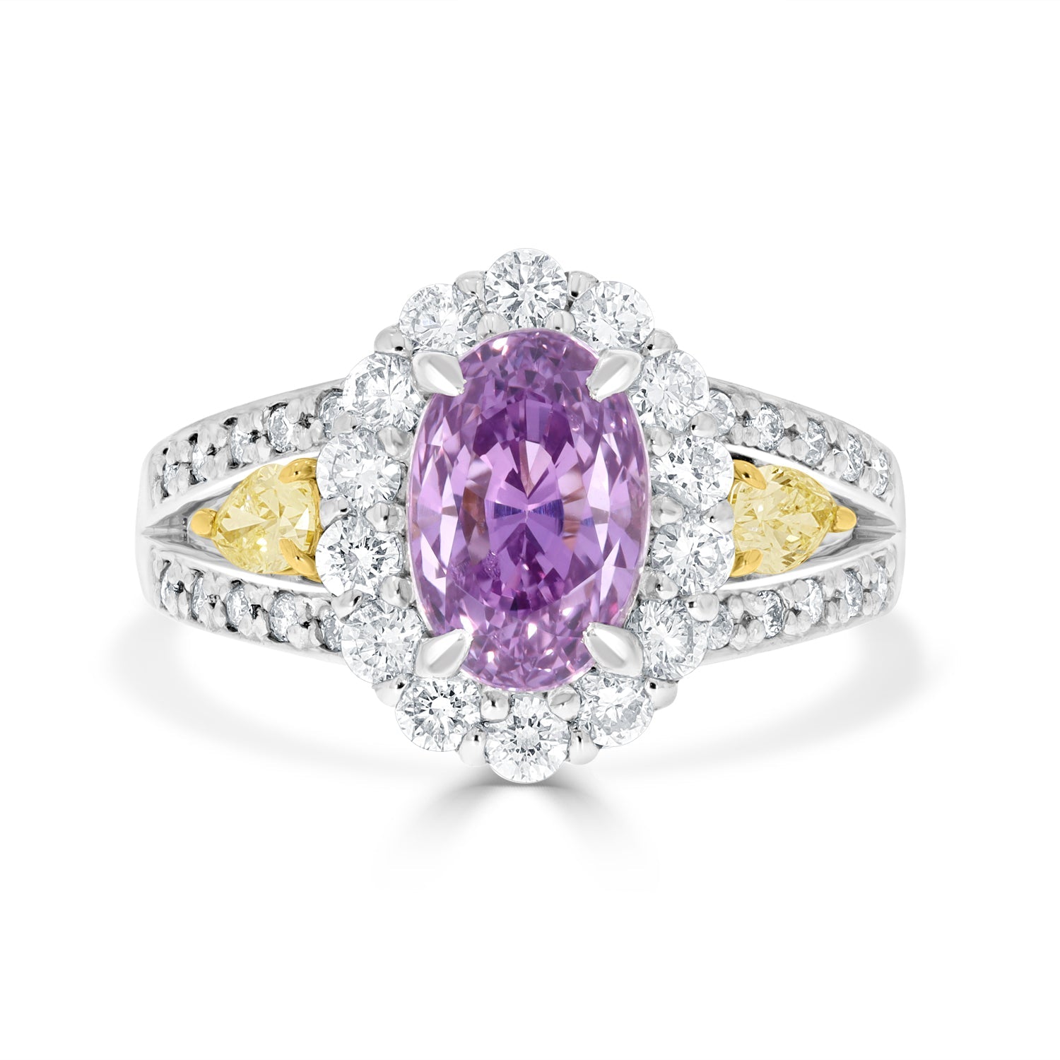 This ring is set with oval-cut Sapphire and mix Diamonds, giving it a luxurious look.