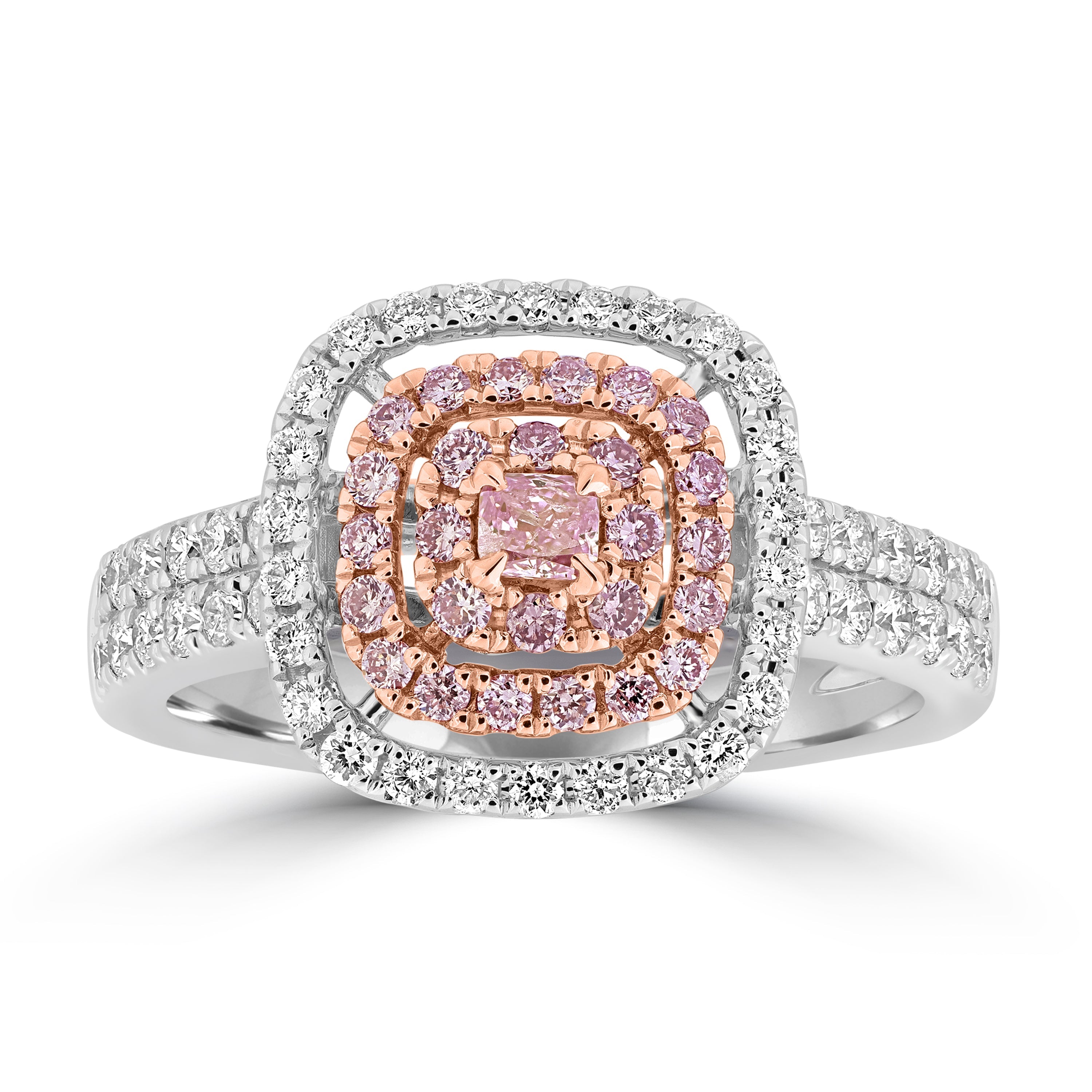 Exuding timeless elegance, this 18K two-tone gold ring is a work of art. Its meticulous design featuring round-cut pink Diamonds and round Diamonds, radiates charm and class, making it a perfect gift.