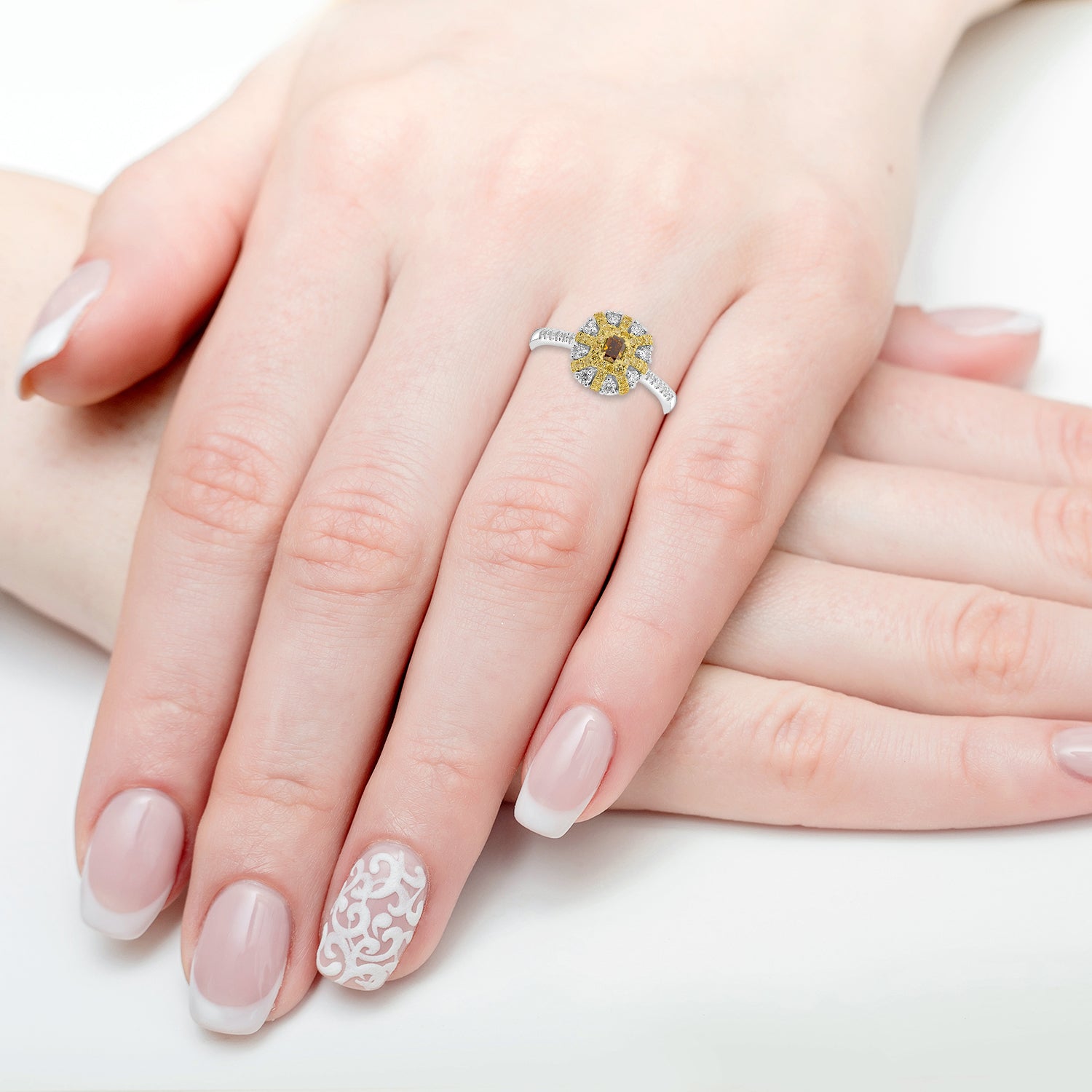 0.142ct Orange Diamond Rings with 0.542tct Diamond set in 18K Two Tone Gold