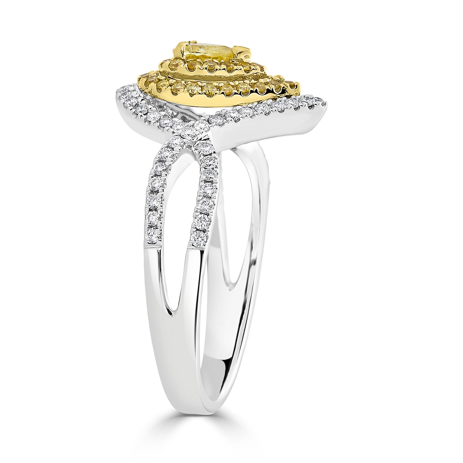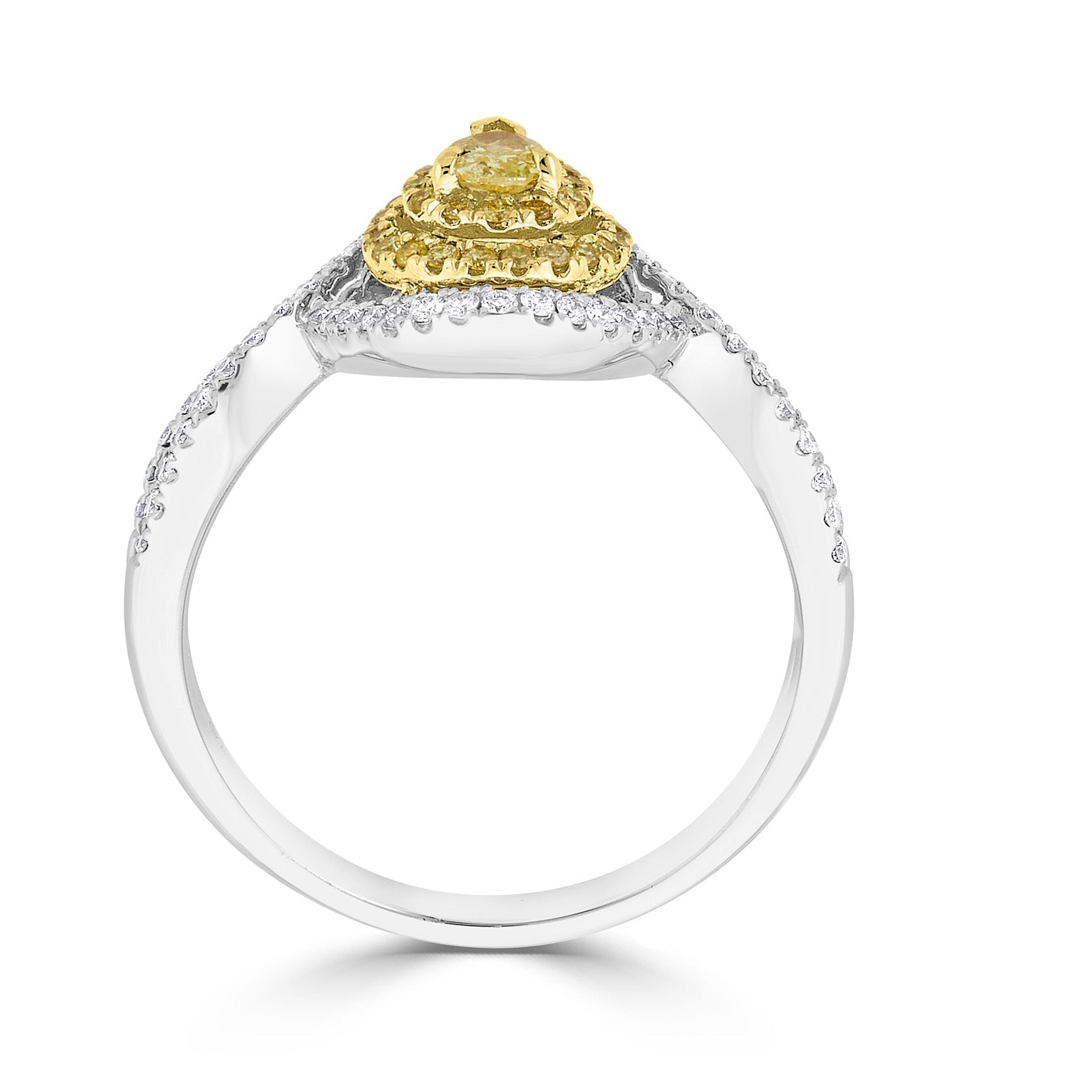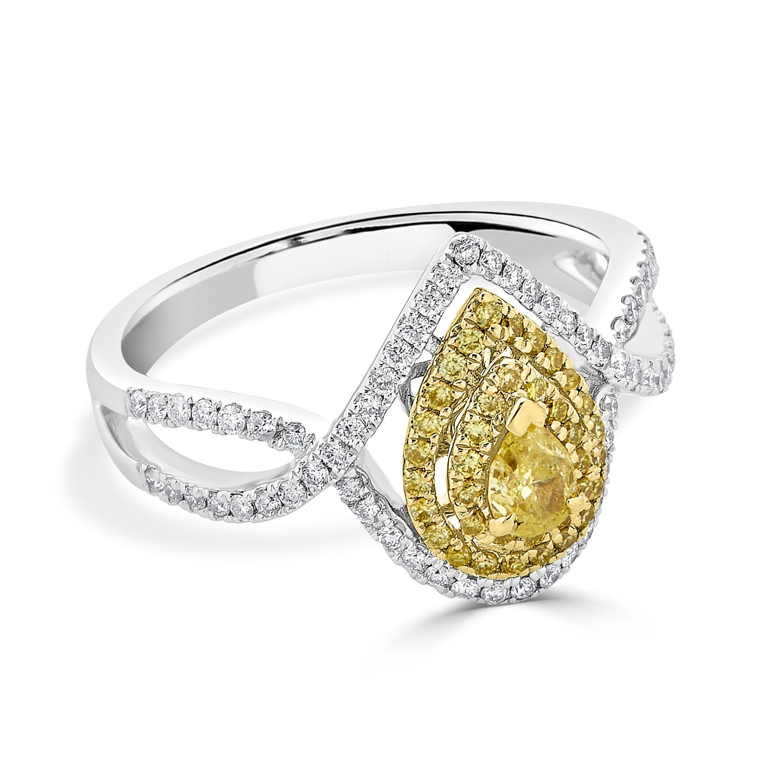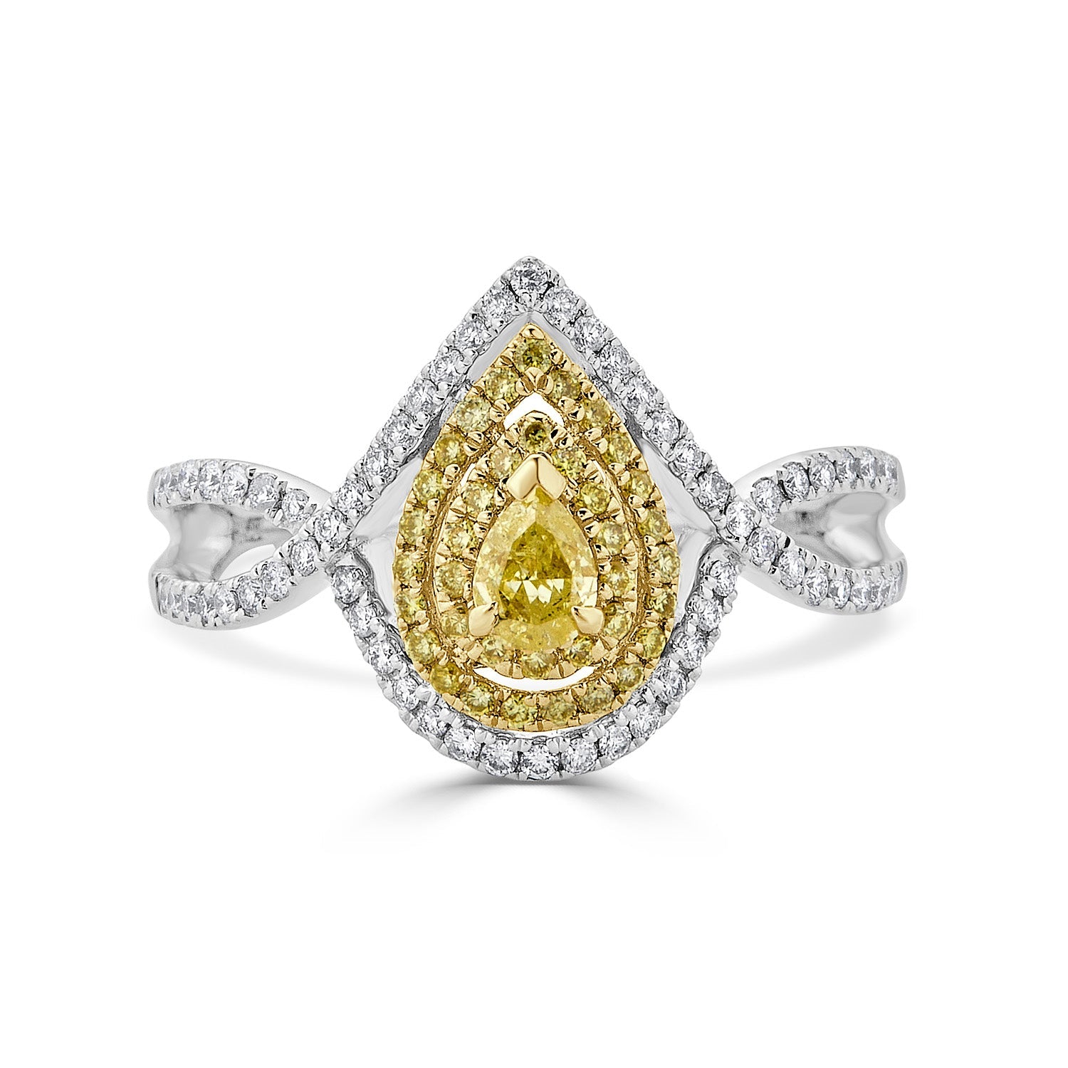Set With A Splendid Pear Cut Diamond, This Exclusive Ring Adds Glamour To Your Ensemble. Designed With 18k Two-tone Gold, Its Unmatched Sparkle Comes From The Round Cut Diamonds Around It.
