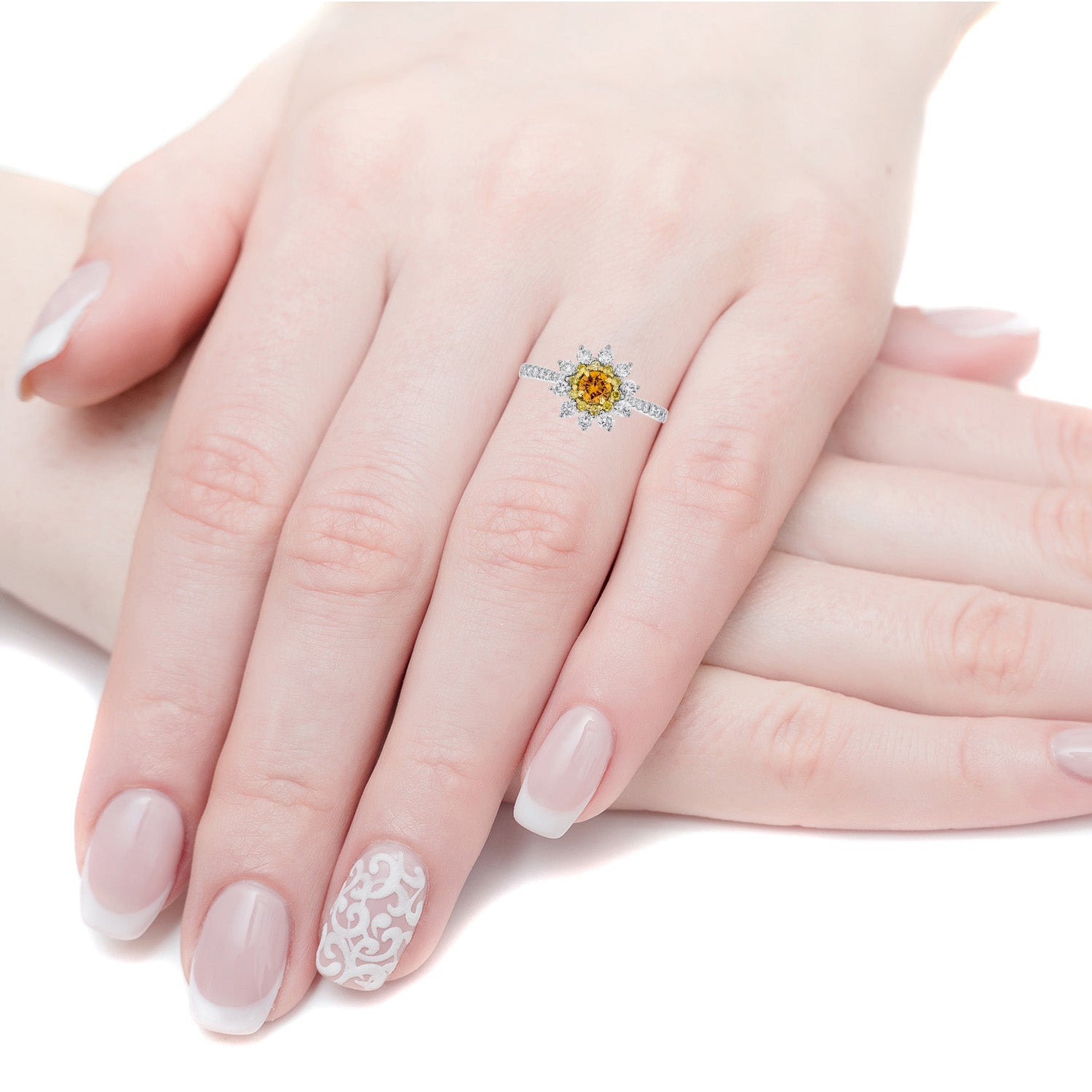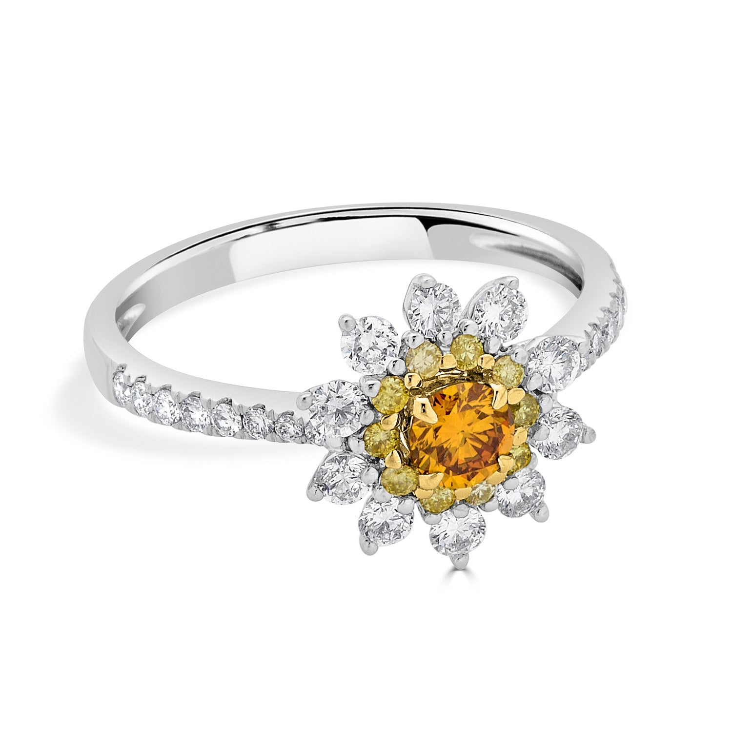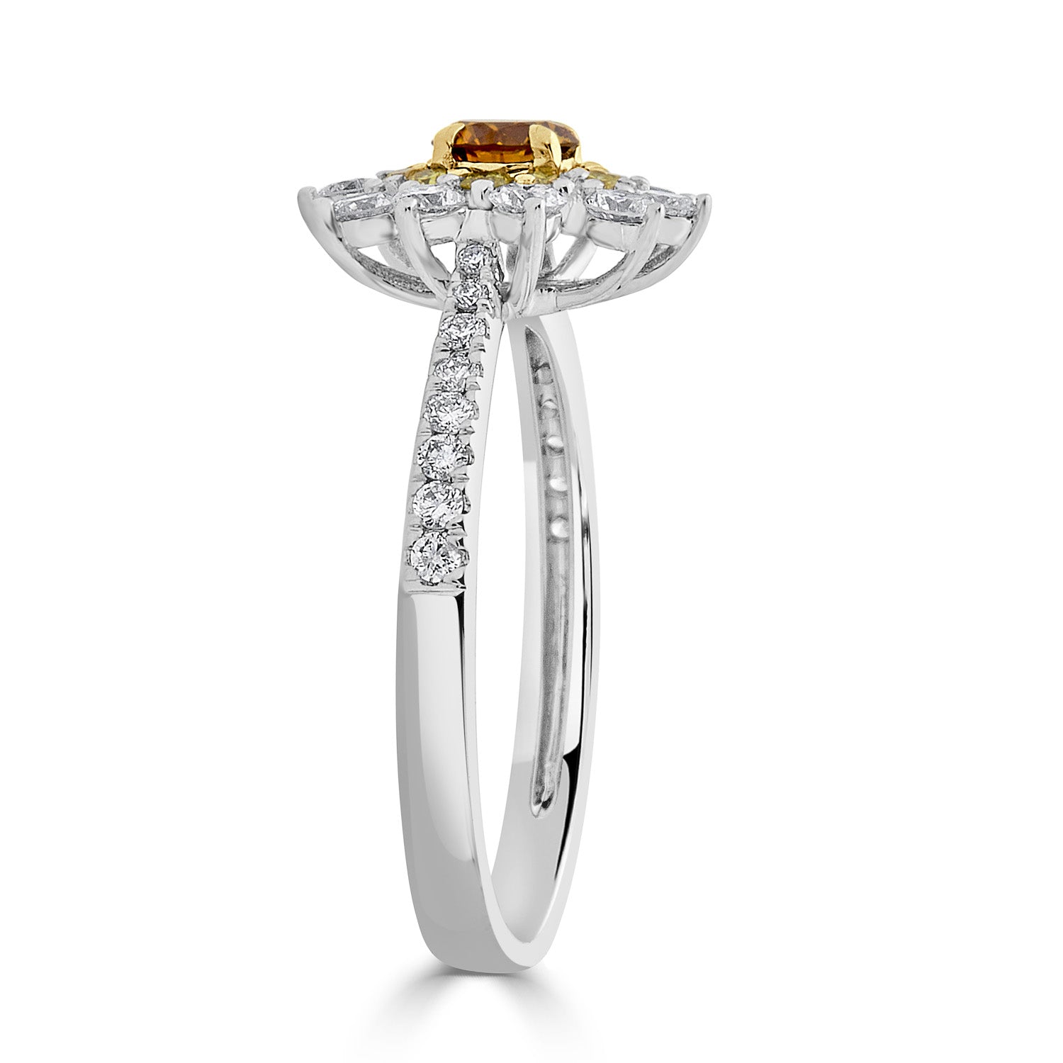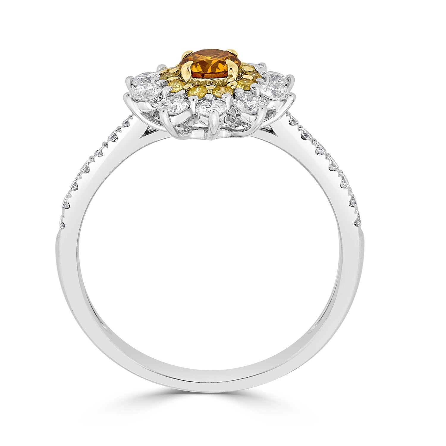 The high-class design and the richness of 14k two-tone gold make you fall in love with this ring. This ring is luxurious and gives a truly fine finish to your look with the sparkle of an orange Diamond and round accent Diamonds.