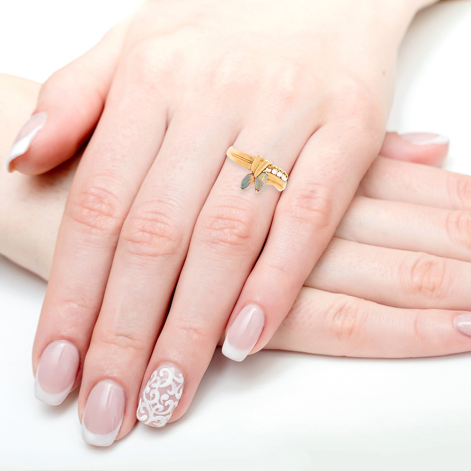 0.25ct Opals Rings with 0.14ct diamonds set in 14K yellow gold