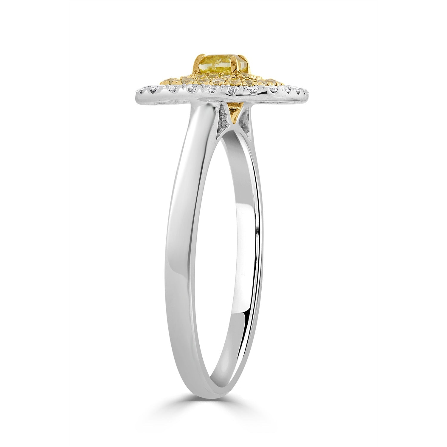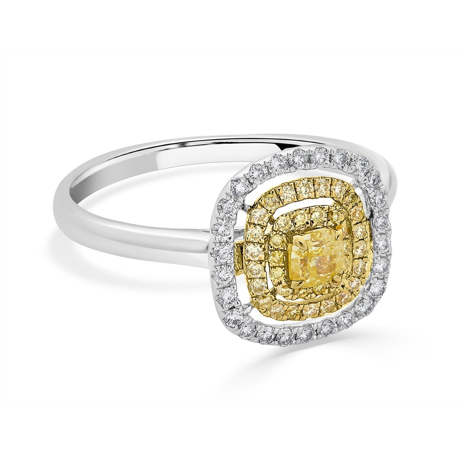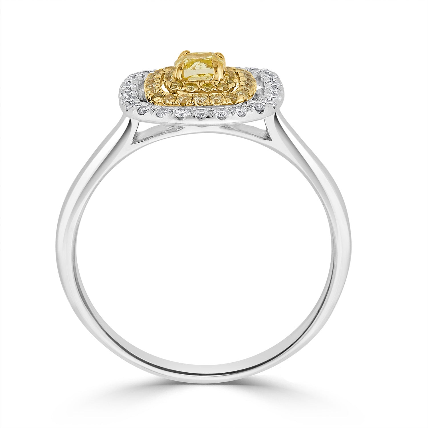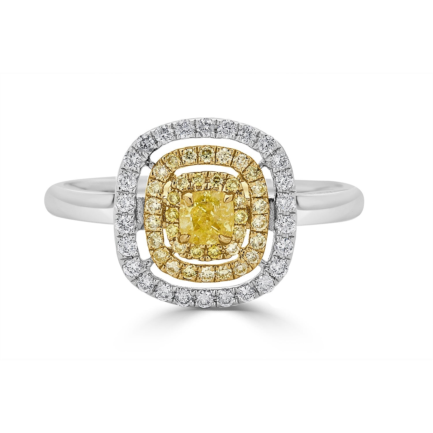 This 18K two-tone ring is a gorgeous addition to any outfit and suits every occasion. The cushion-cut Diamond along with round Diamonds build a fashionable look with its sheer sparkle.