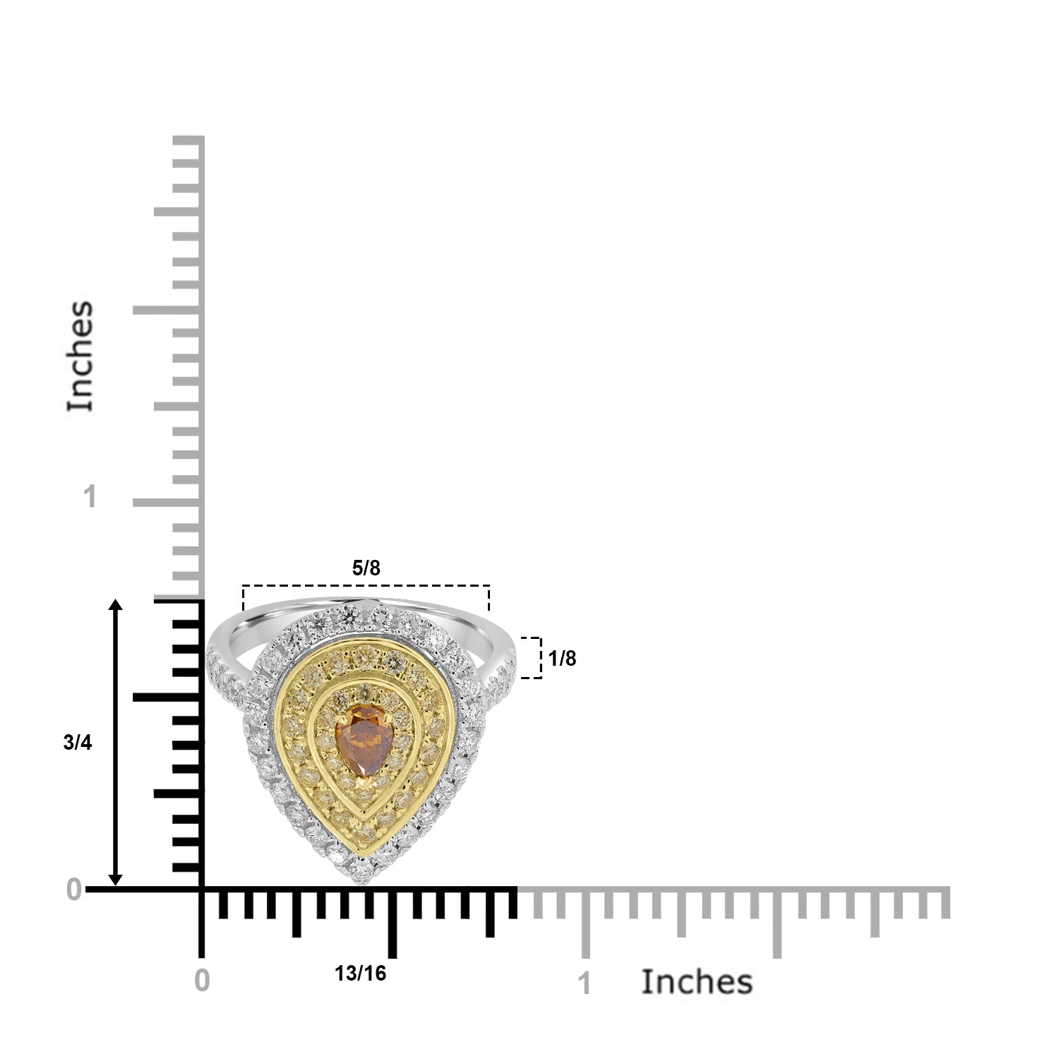Crafted of 18k two-tone gold, the alluring design of this ring makes it a perfect style pick. An iconic accessory that adds a dash of glamour to your look, this fantastic ring has pear-cut orange Diamond and round Diamonds for added shine.