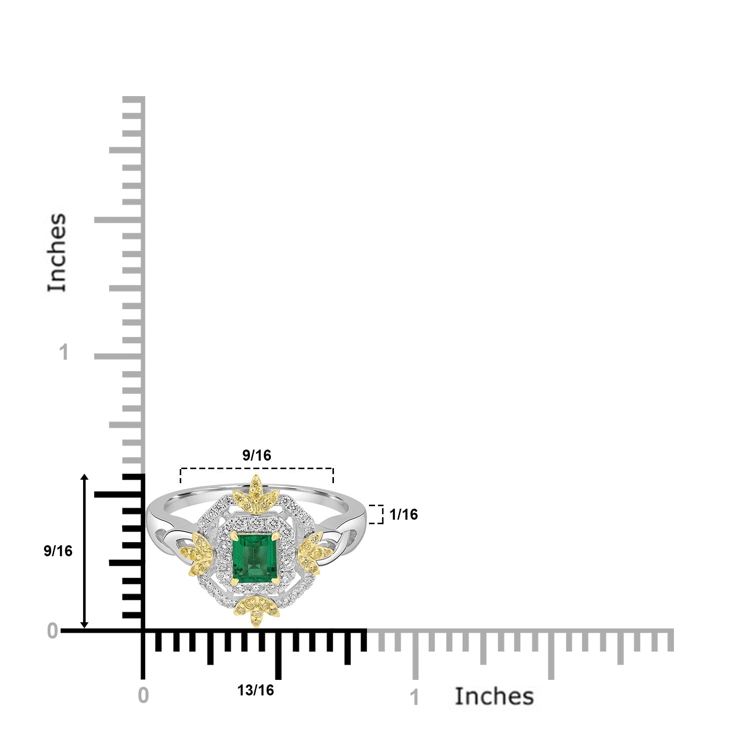 This marvelous ring is exquisitely designed with 18k two-tone gold to make you look stylish and trendy. Crafted with a world-class design, this ring looks fabulous with the shimmering waves of Baguette-cut Emerald and round Diamonds.
