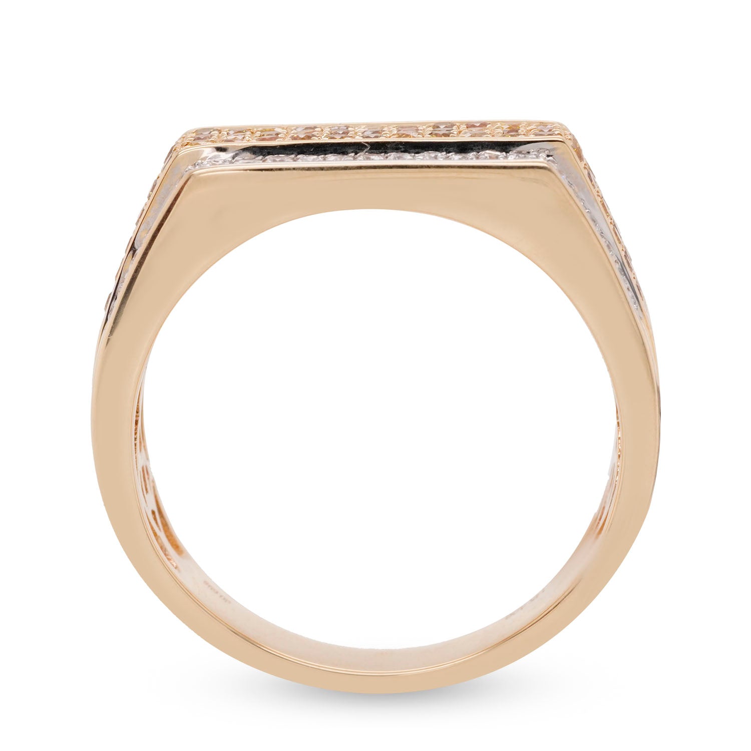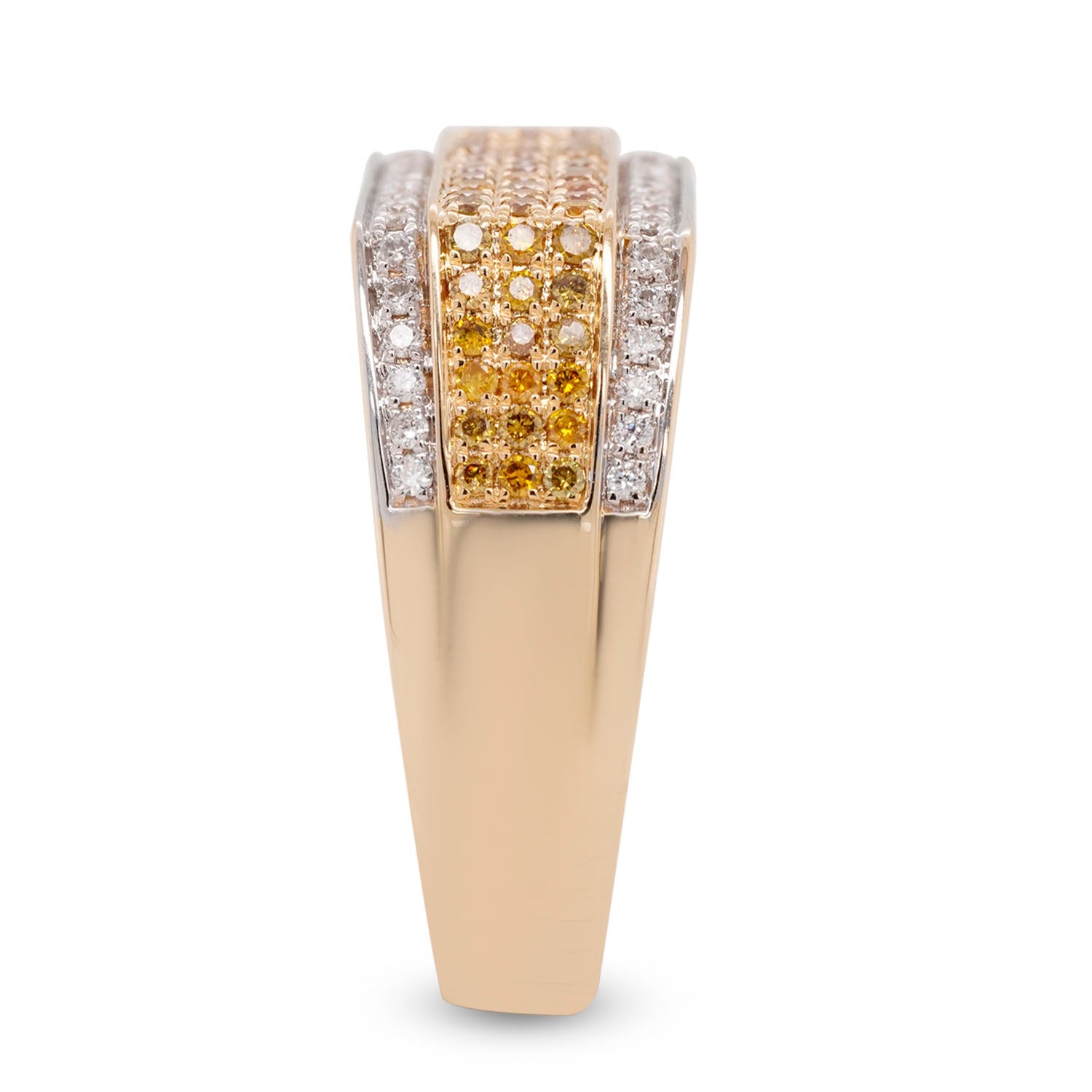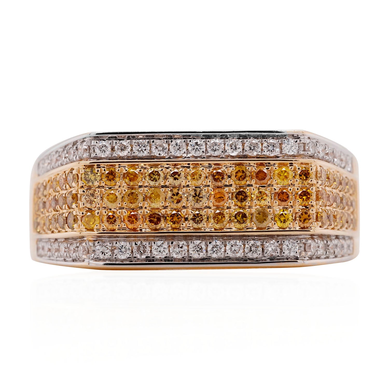 Embellished with a round cut Orange Diamond, the gorgeous hue of this ring adds a hint of drama to your ensemble. Designed in 14K yellow gold, the luminous sheen of this magnificent ring is heightened by the glitter of the round cut Diamonds that flank it. A bit of sparkle and shine, and you are ready to enjoy the attention this radiant ring brings your way!