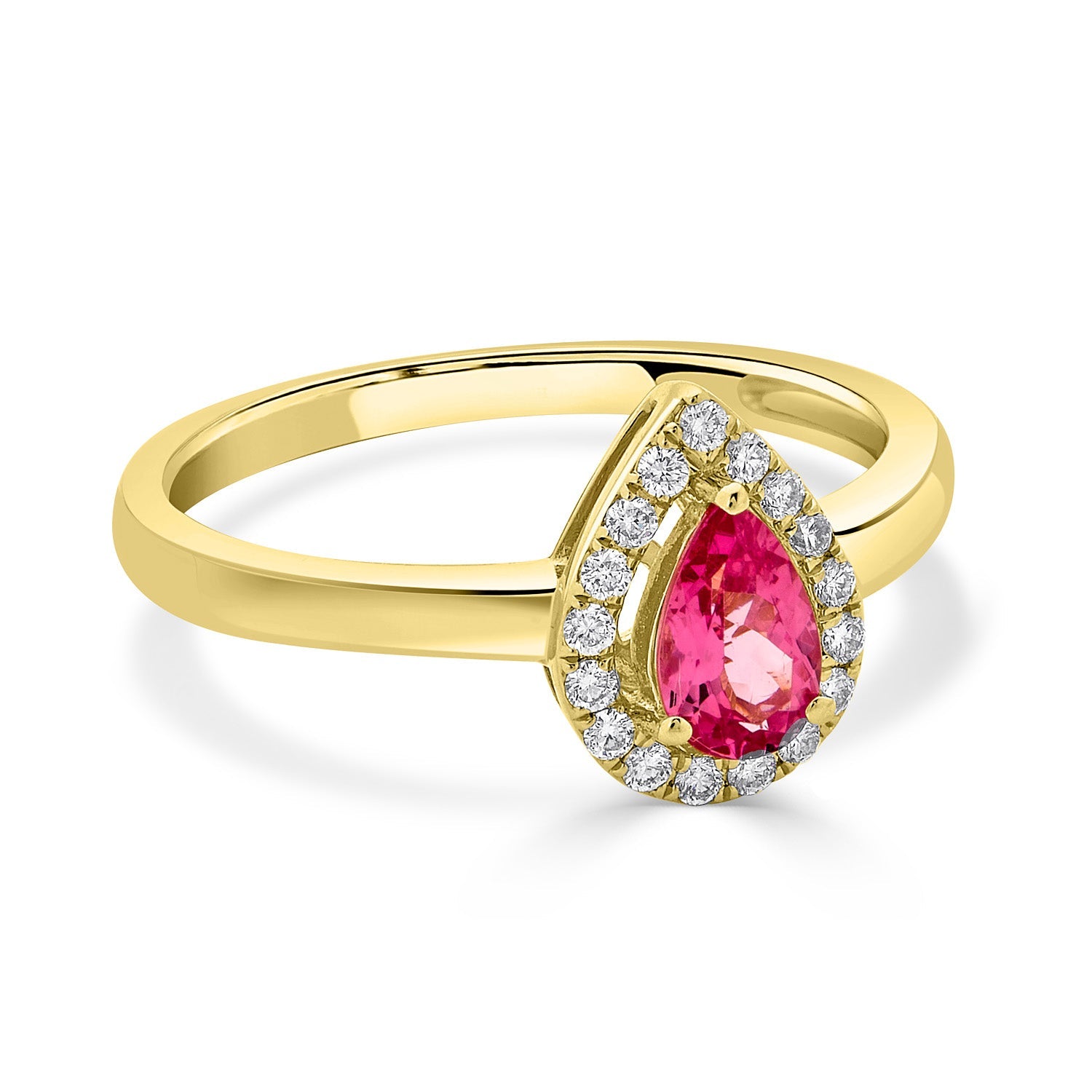 For a truly fashionable and luxurious look wear this 14k yellow gold. The timeless charm of pear-cut Spinel and the richness of round Diamonds comes together in this design.