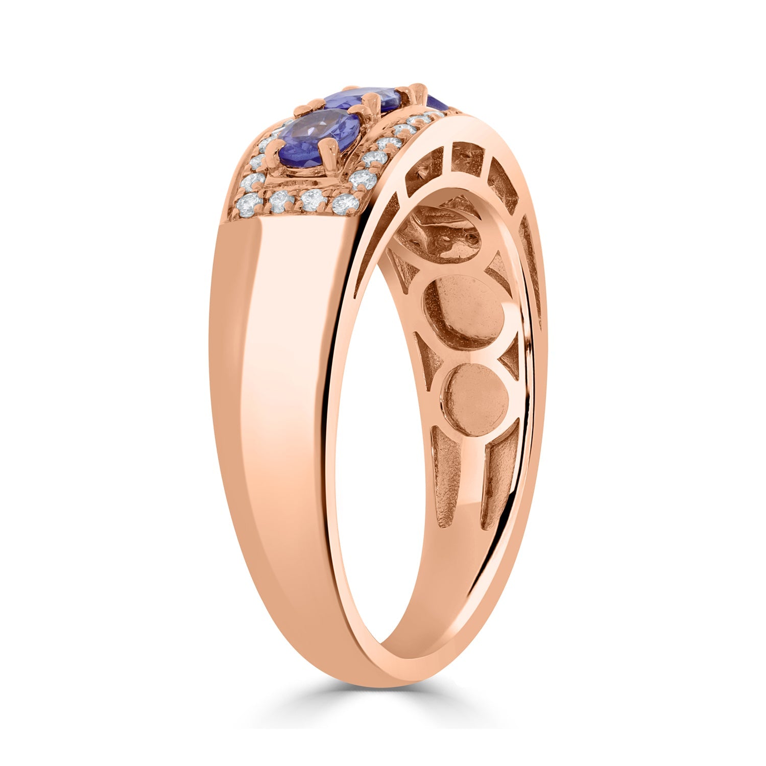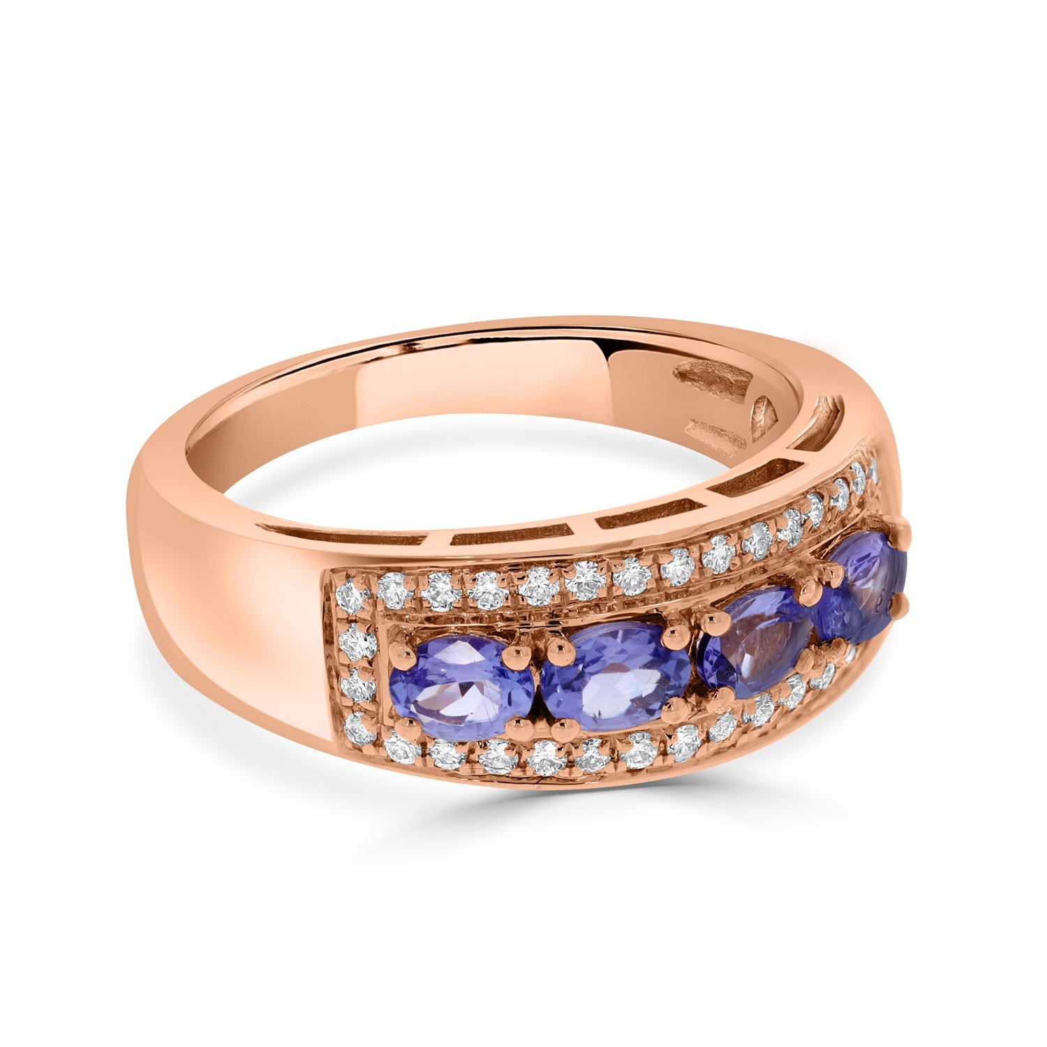 0.75Tct Tanzanite Rings With 0.18Tct Diamonds In 14K Yellow Gold Band