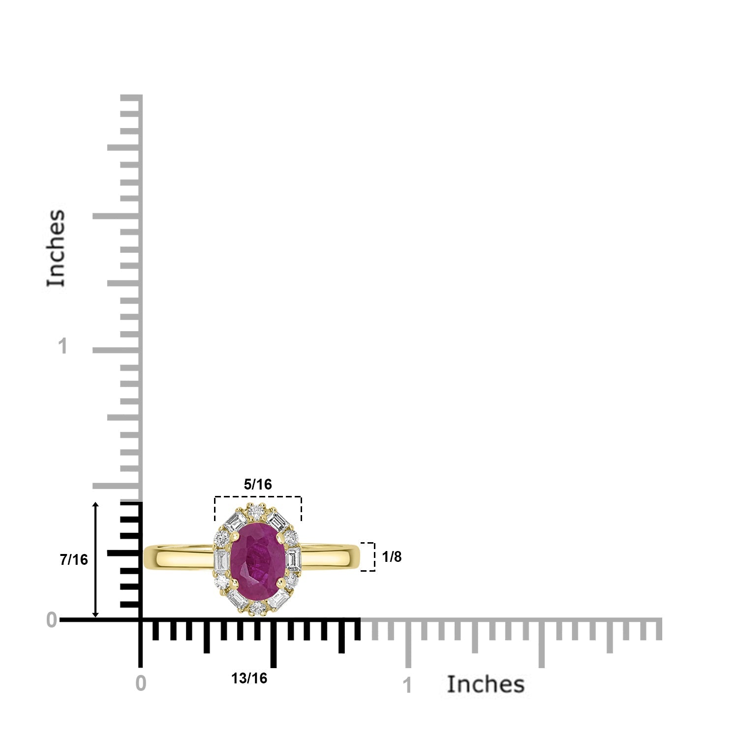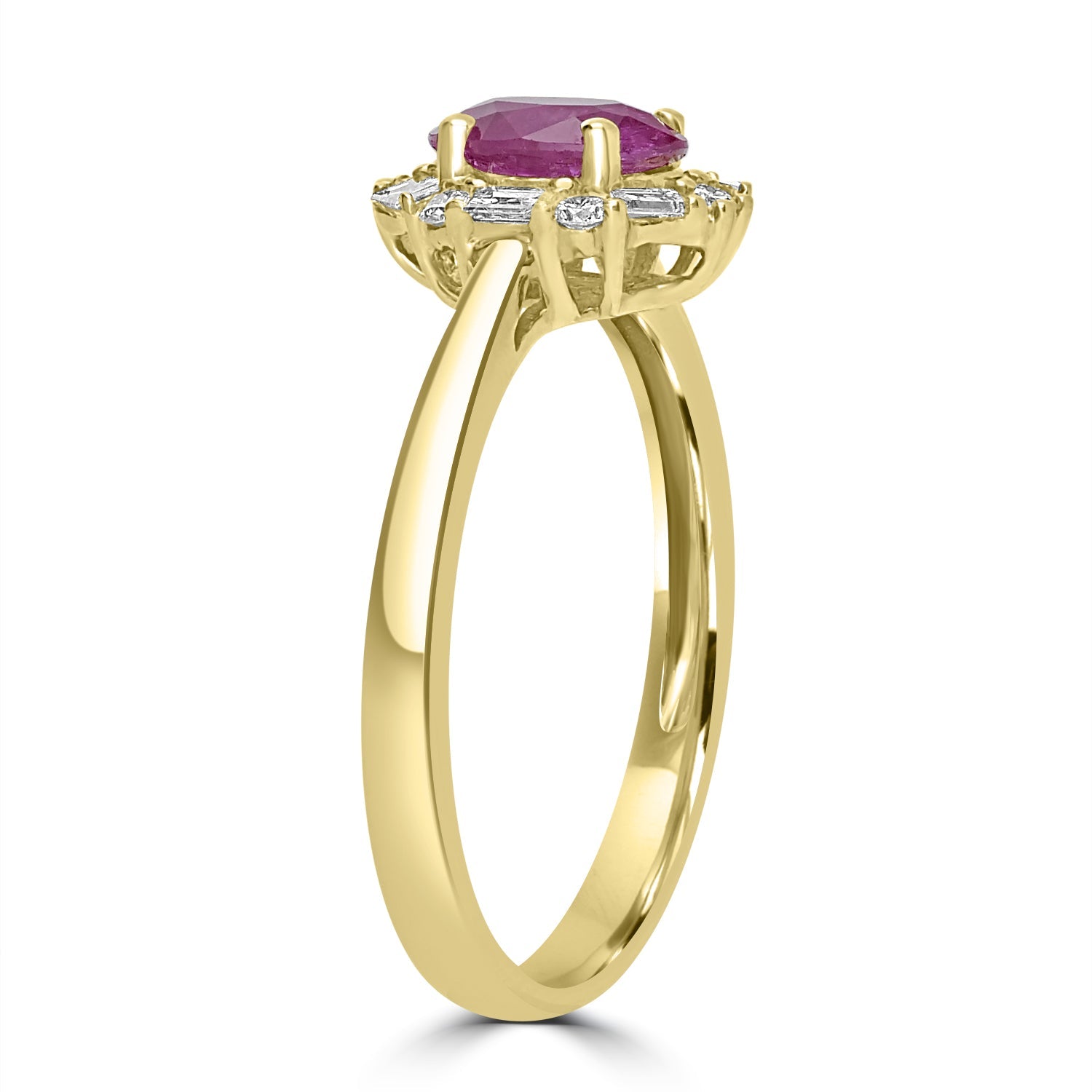 Redefine your look with a touch of luxury with this 14K yellow ring. Set with a spectacular oval-cut Ruby and round Diamonds.