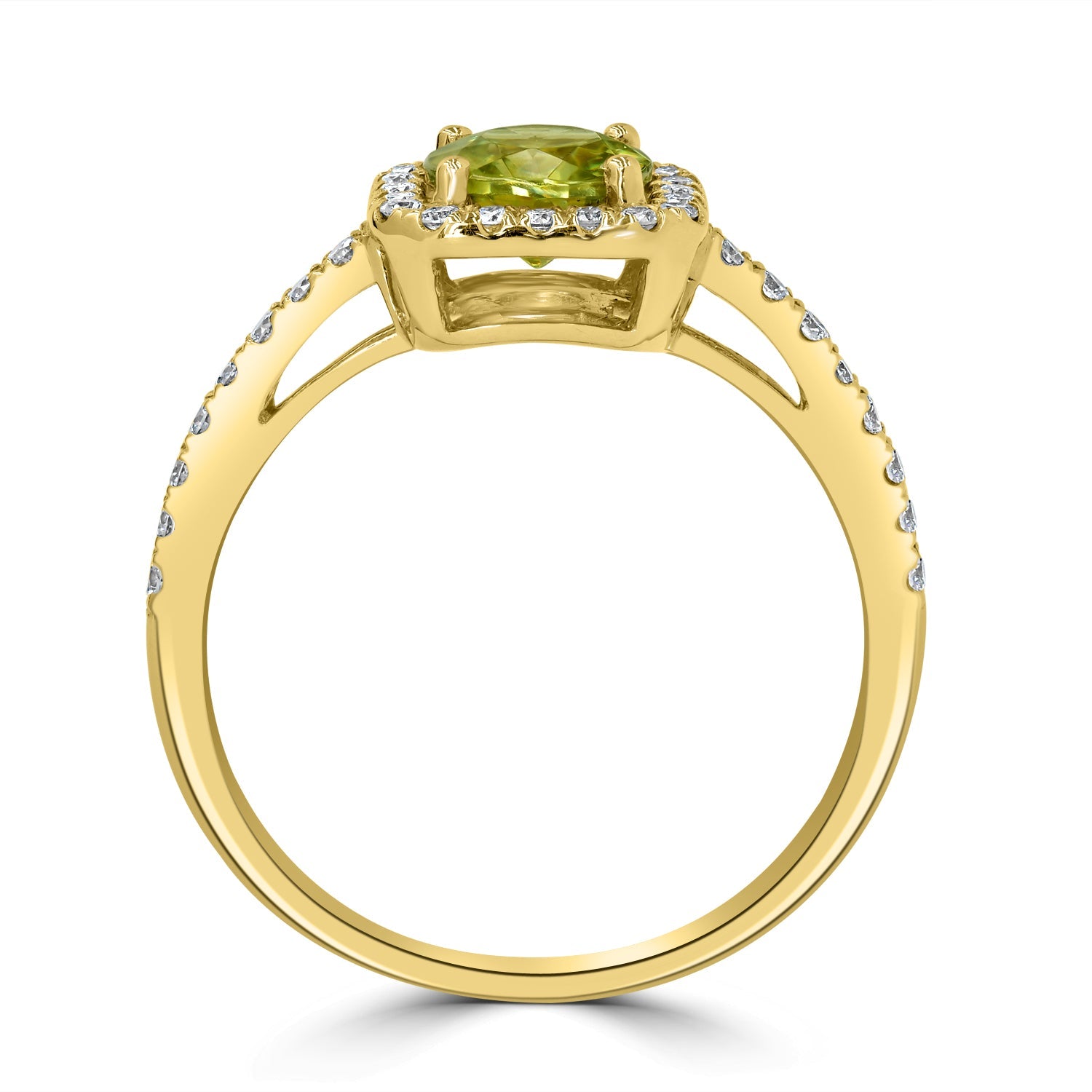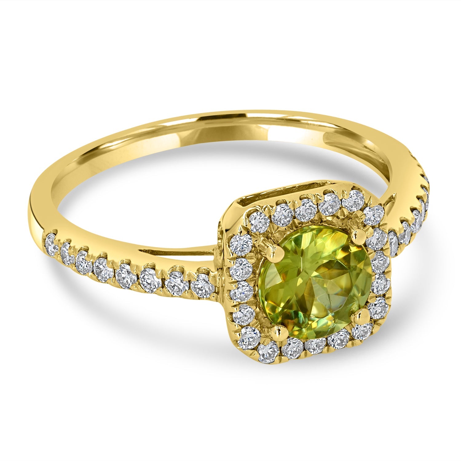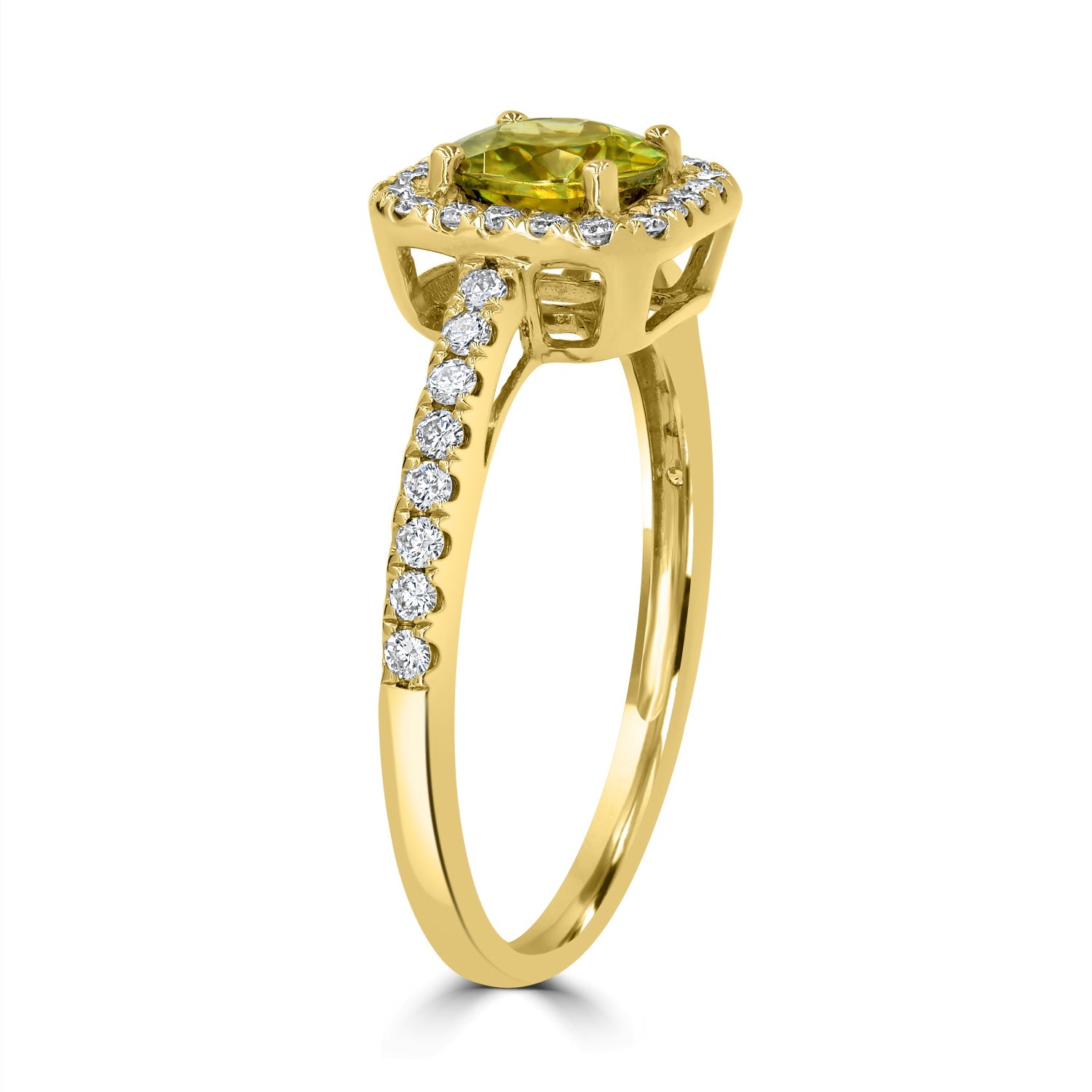 This adorable ring is intricately designed with 14k yellow gold. Set with a round-cut Sphene, this ring spreads is beautiful.