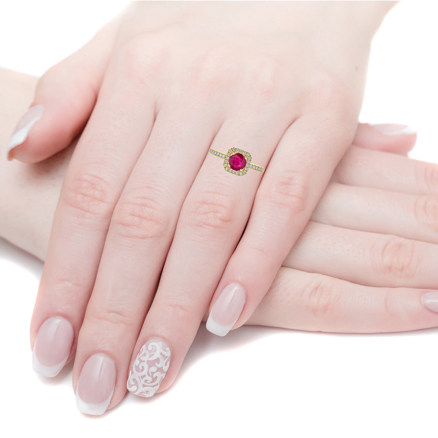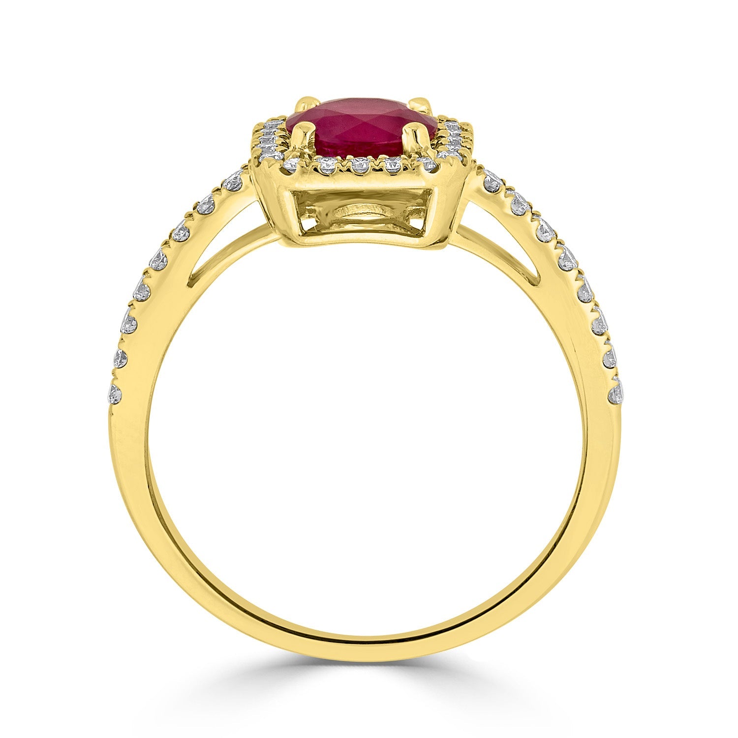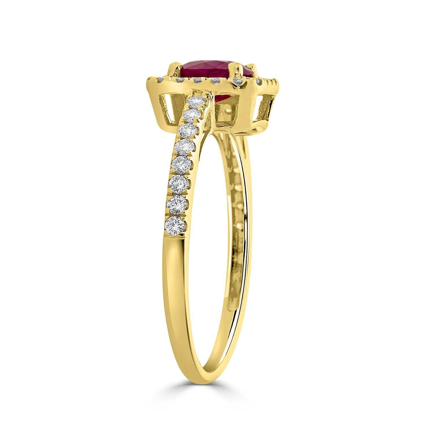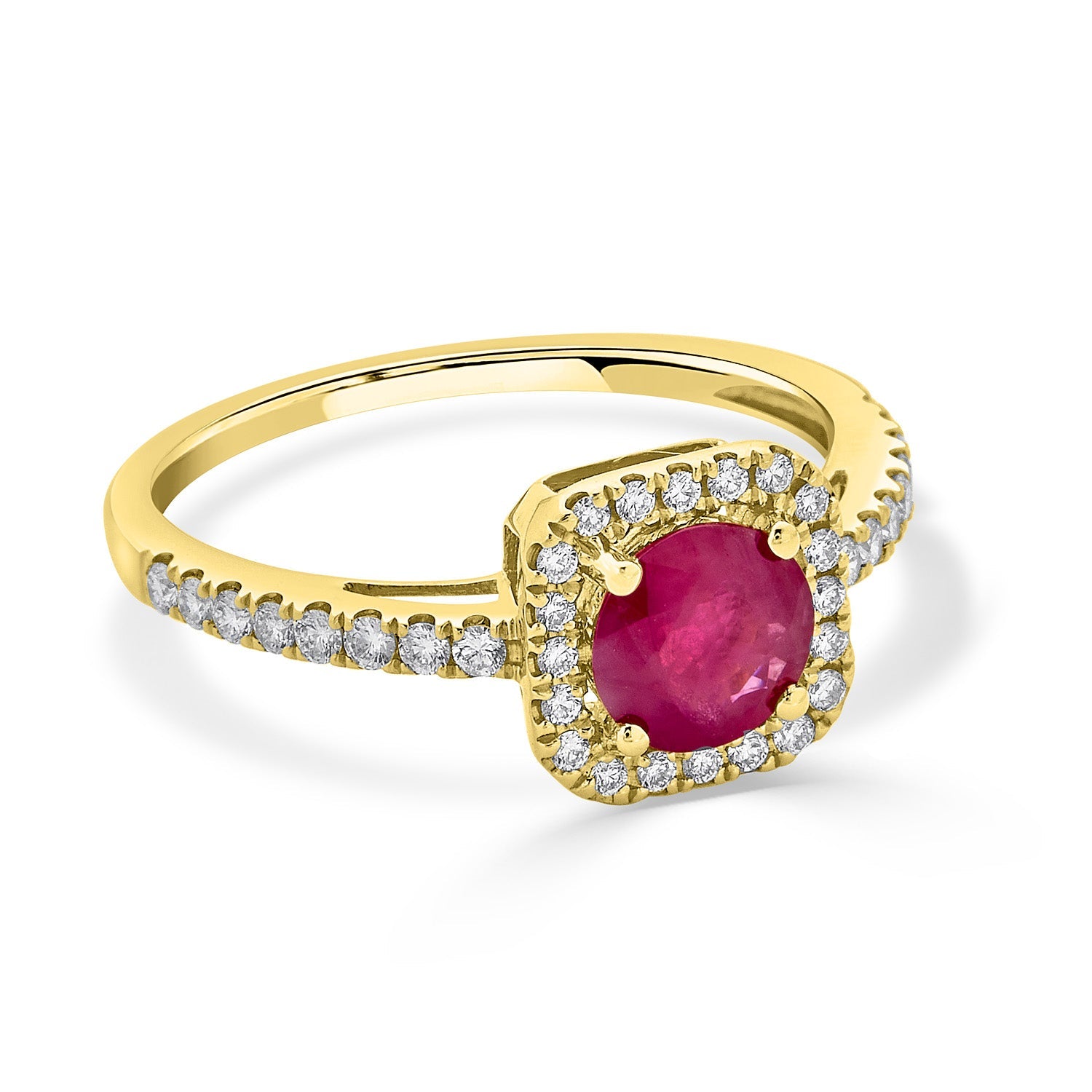Set with a sparkling round cut Ruby, the extraordinary shine of this marvelous ring comes from the gorgeous round cut Diamonds. Crafted of 14K yellow gold for a refined finish, this fine jewelry upgrades your ensemble in a flash.