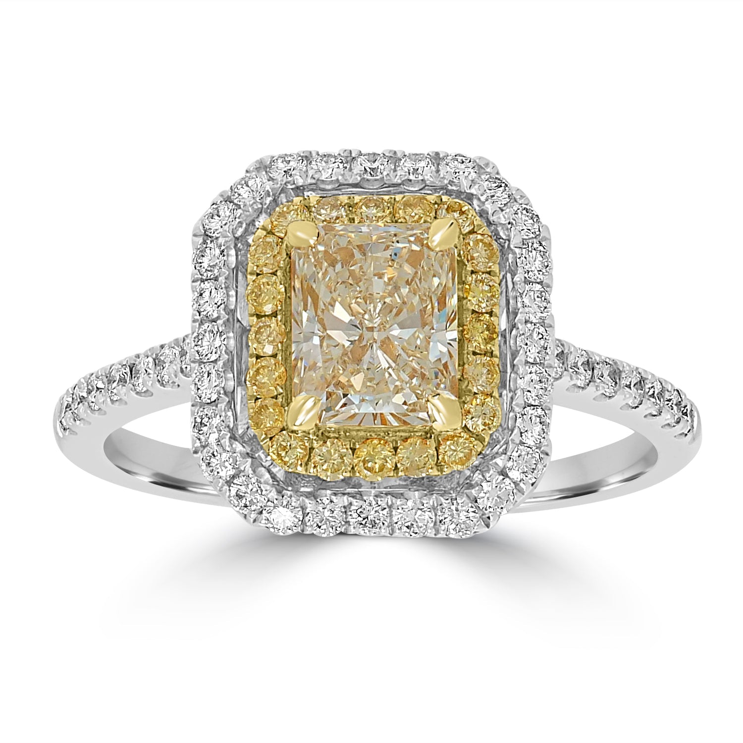 1.02ct Yellow Diamond Rings with 0.51tct Diamond set in 18K Two Tone Gold