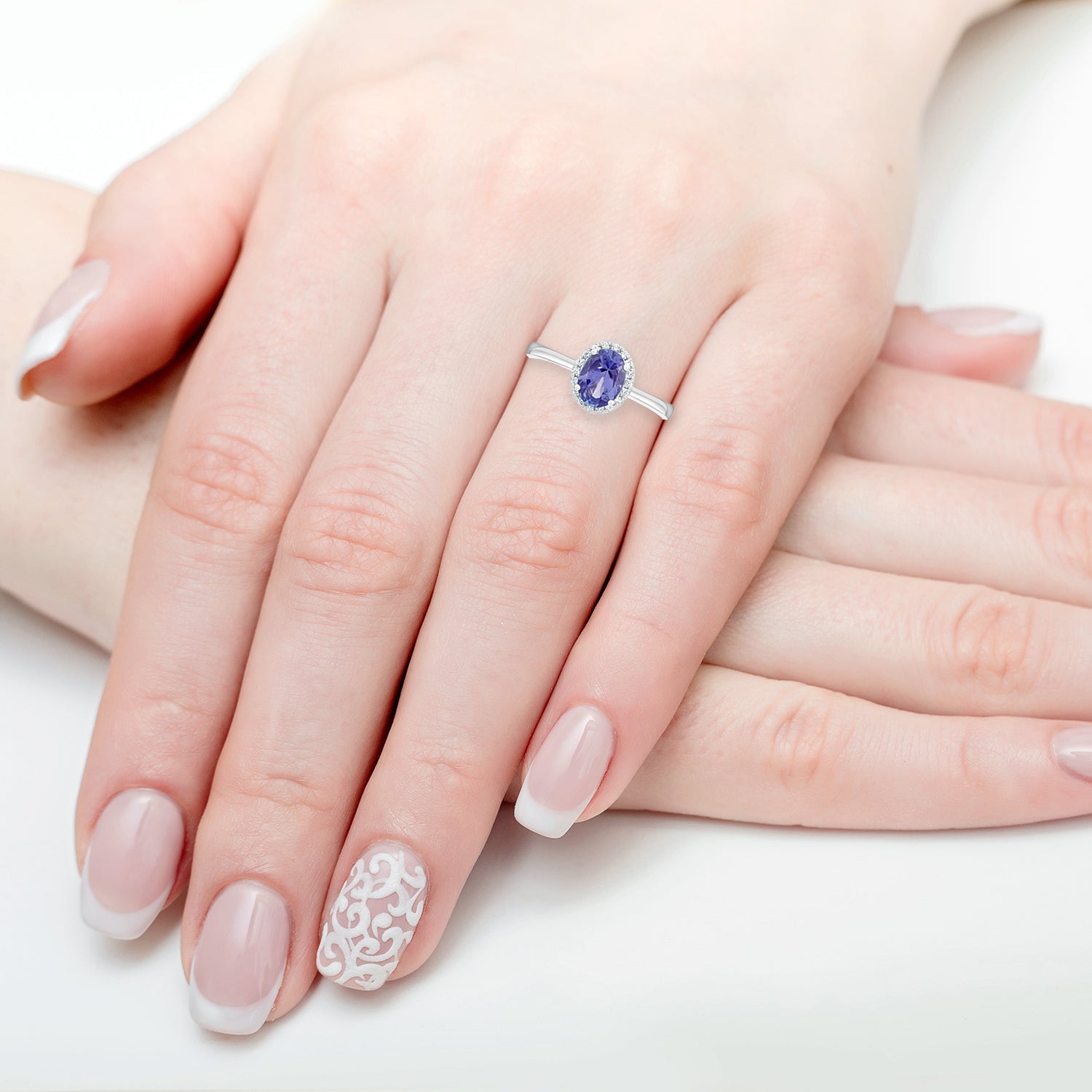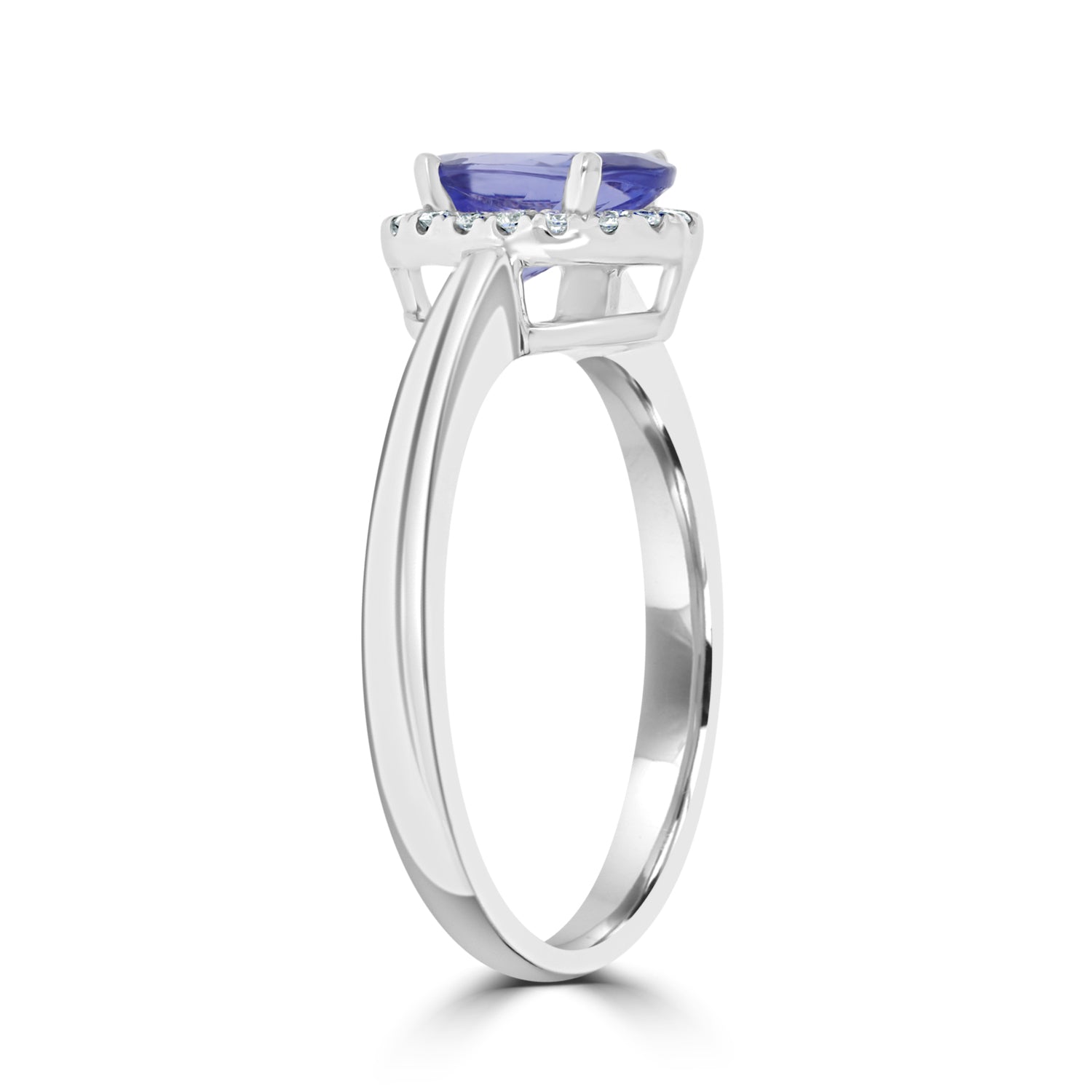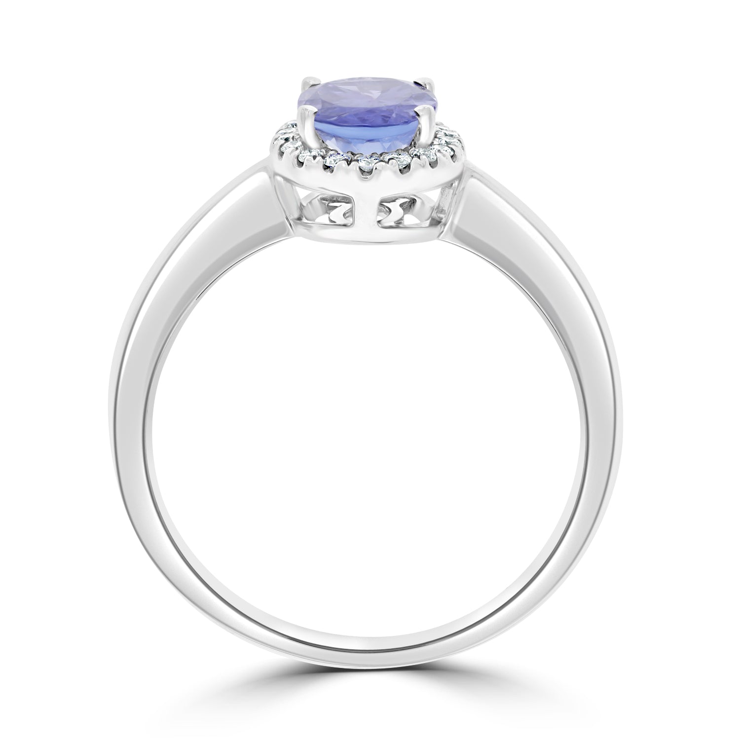Crafted Of 14k White Gold That Highlights Its Glow Perfectly, This Radiant Ring Is Set With A Marvelous Oval Cut Tanzanite. Surrounded By The Shimmer And Shine Of Stunning Round Cut Diamonds, This Sensational Ring Is Sure To Make Heads Turn Wherever You Go.