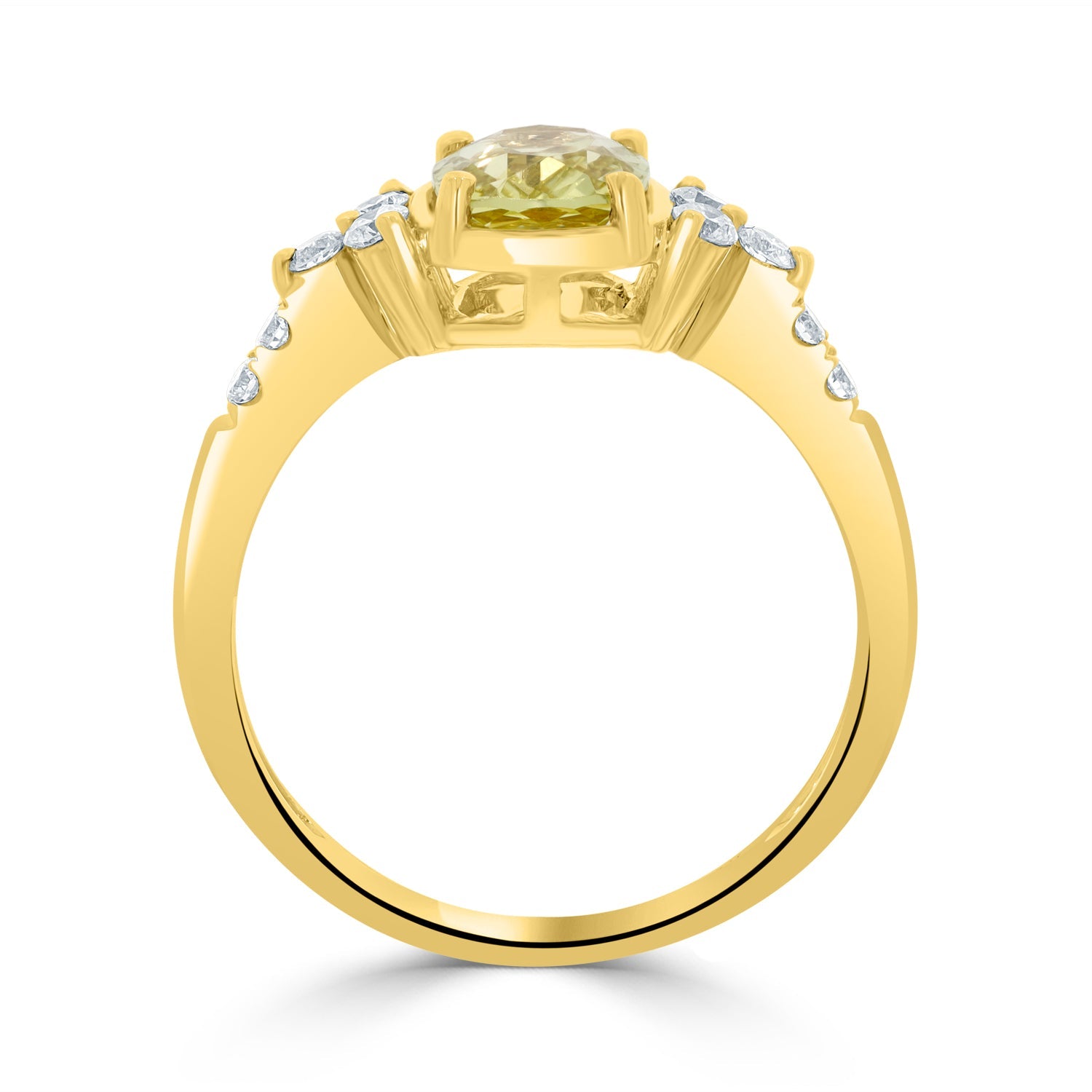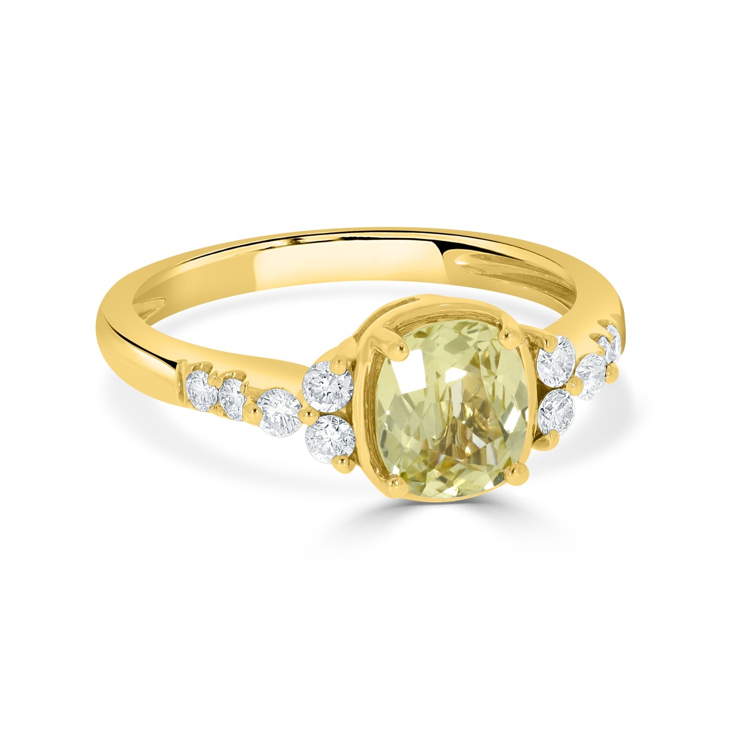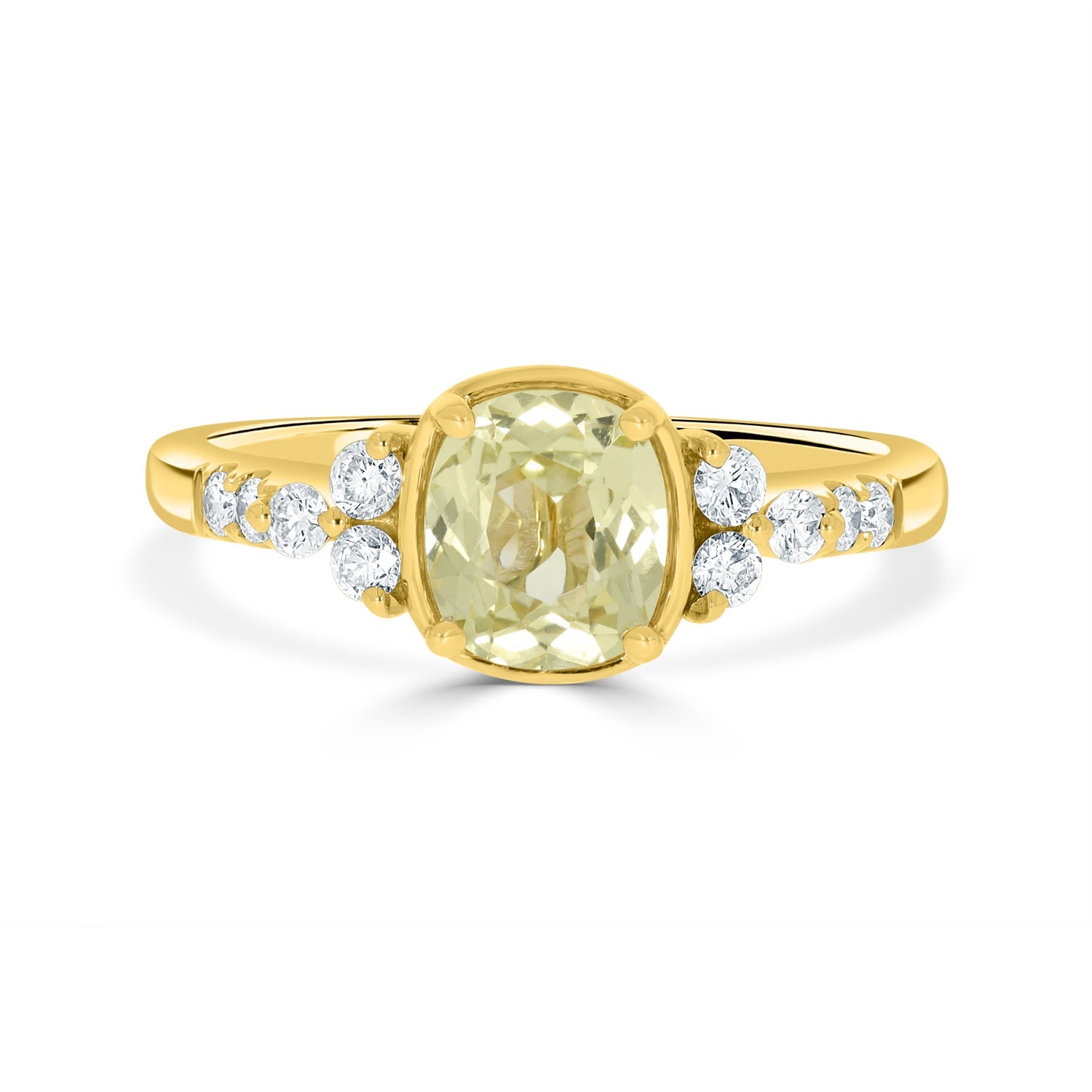 It Is Unimaginable To Consider A Jewelry Wardrobe Without Rings. This Classy Ring Is Beautifully Designed In 14k Yellow Gold And Set With An Oval-cut No Heat Certified Sapphire In The Center And Round Diamonds Surrounding It For A Luxurious Finish.
