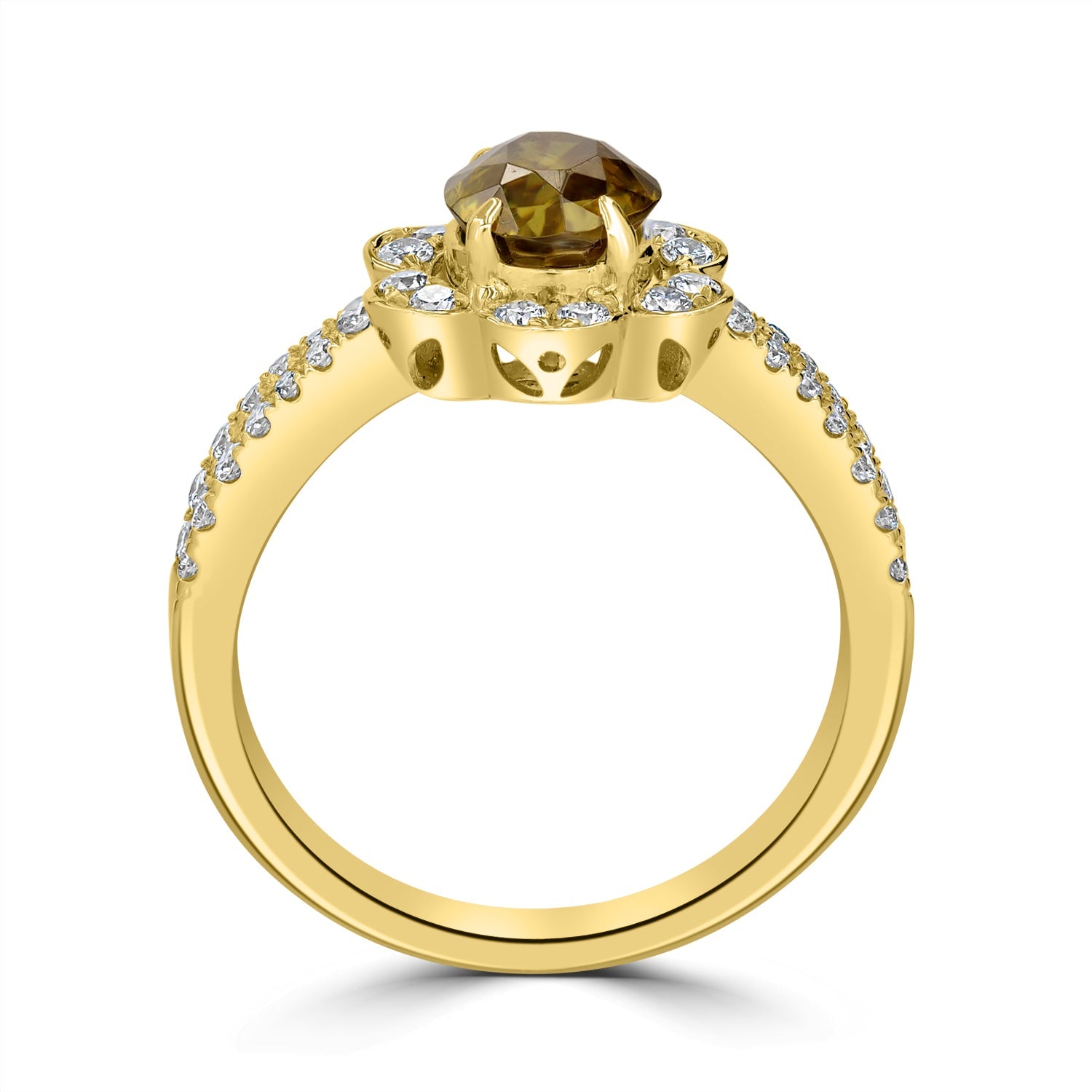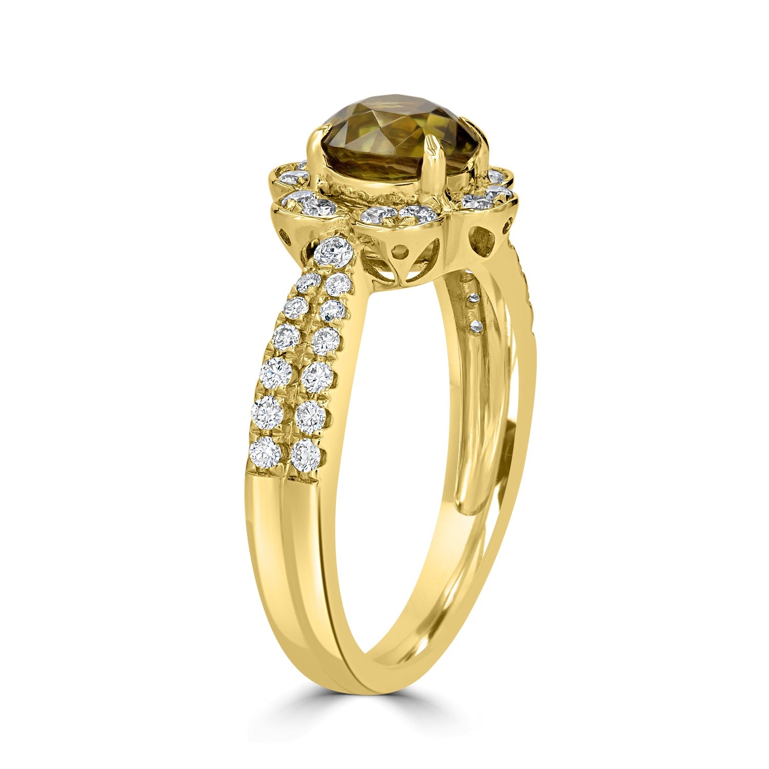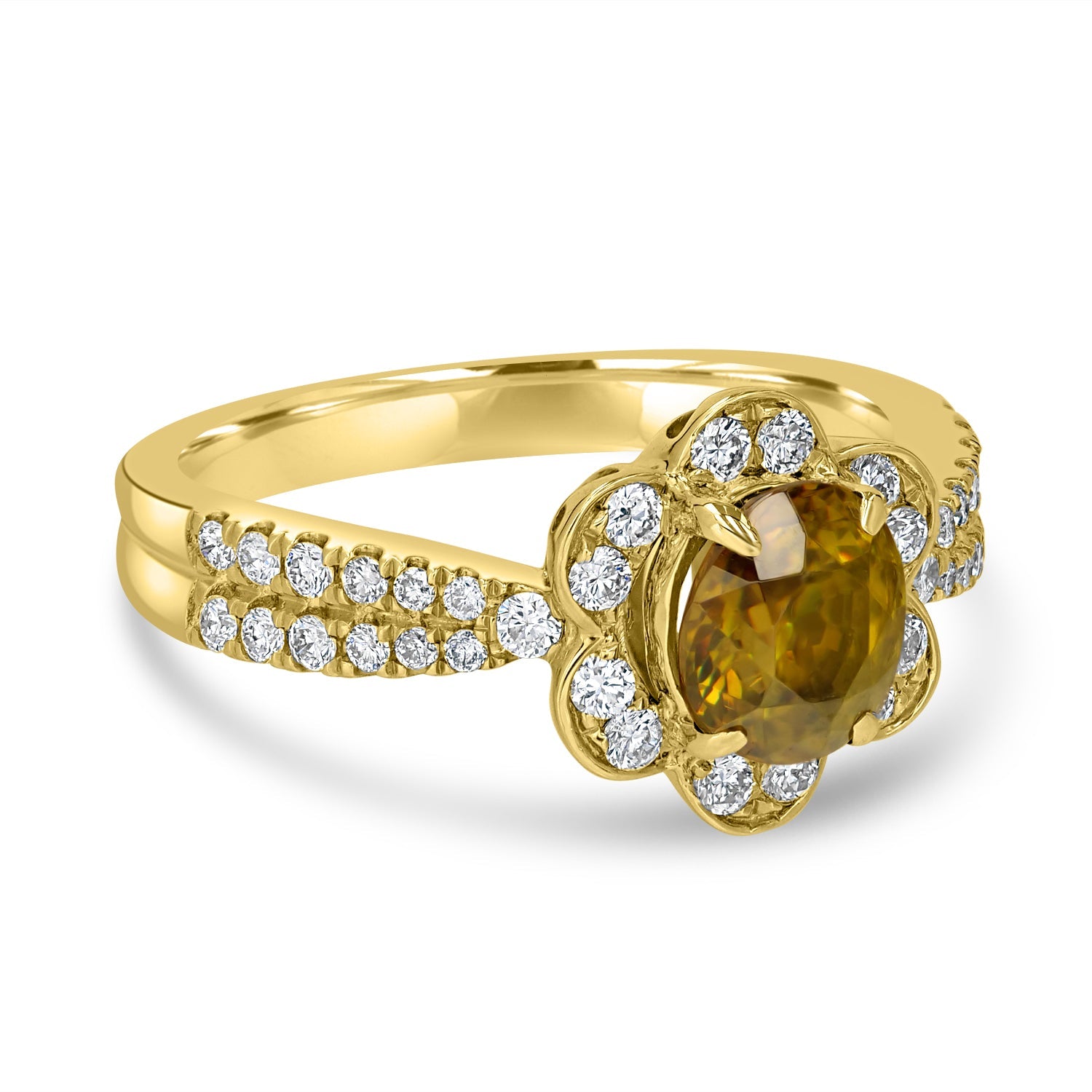 This unique ring is crafted from 14K yellow gold and set with a spellbinding oval-cut Sphene and round Diamond for a sophisticated look.