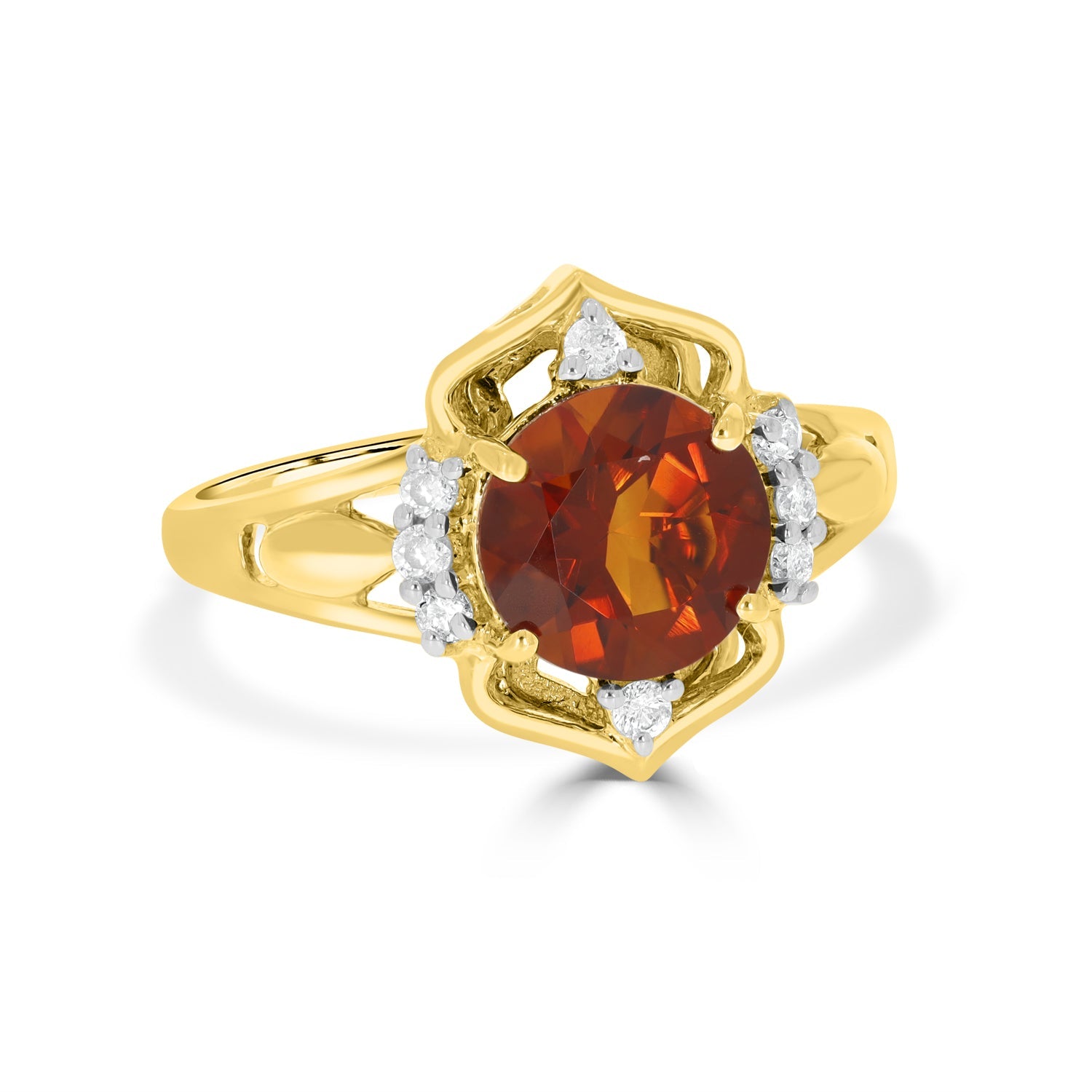 Designed with 14K yellow gold this captivating ring is set with a striking round cut Citrine and encircled by beautiful round cut Diamonds that give it a mesmerizing finish.