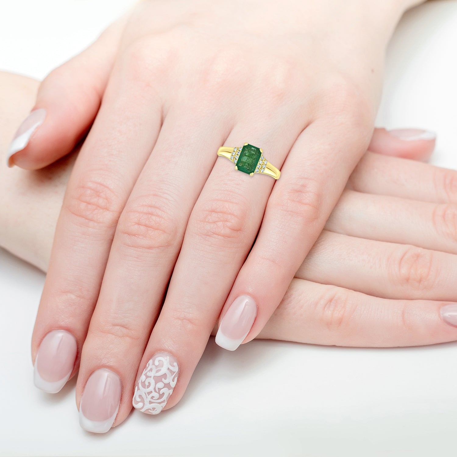 The stunning square cut of this Tourmaline ring is crafted with care to give it fabulous luster. Enhanced further by perfectly rounded diamonds, this phenomenal combination creates glowing jewelry that you will never want to take off. Set in 14K yellow gold, wear this exquisite ring to any event and be the star, shining brightest.