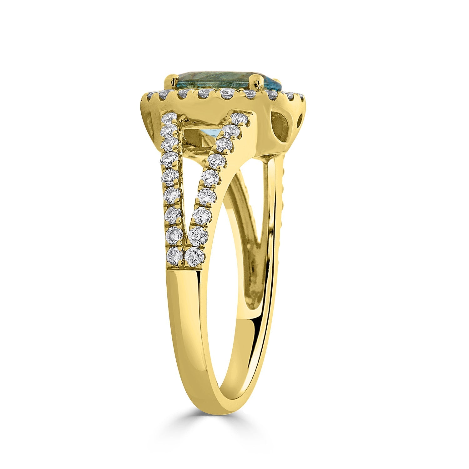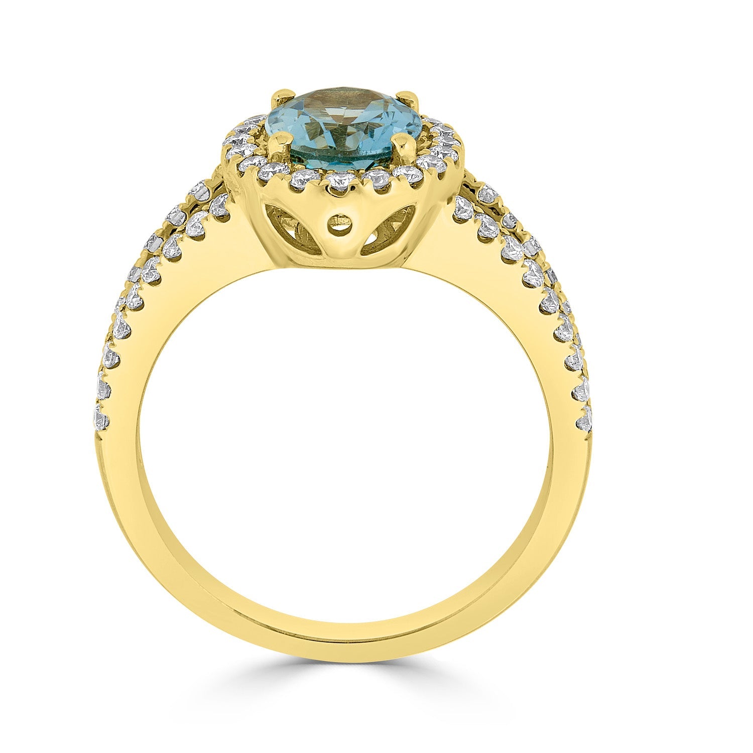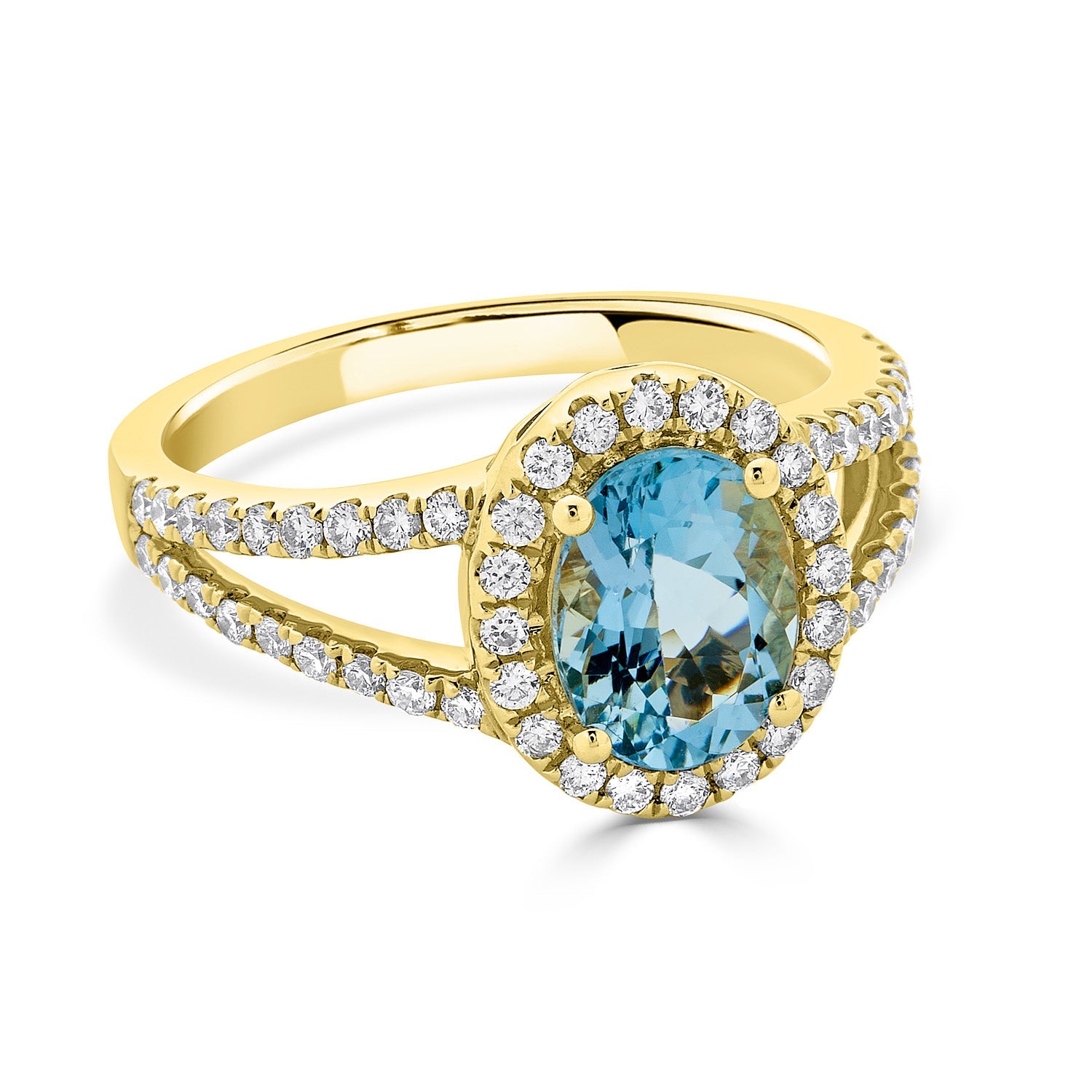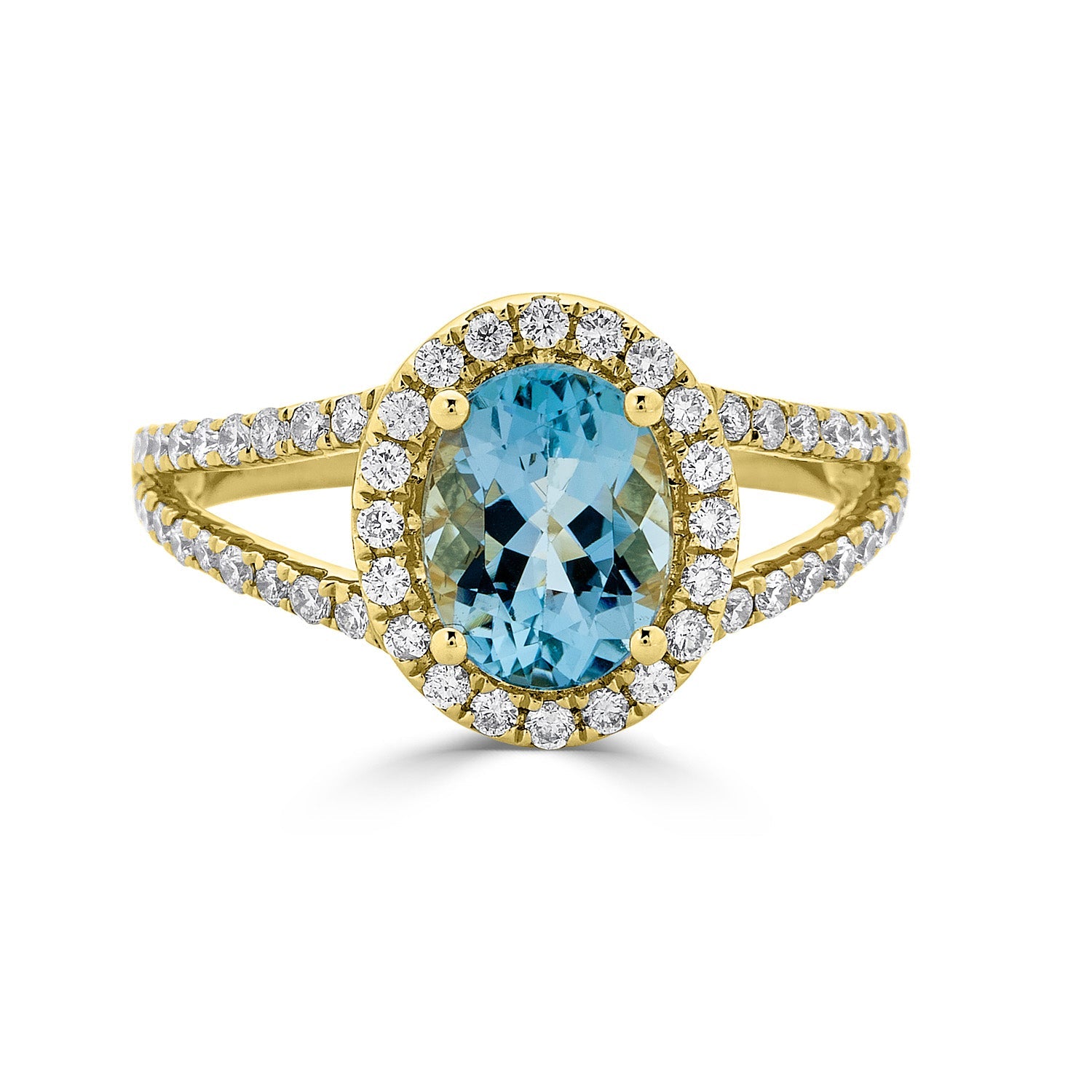 Exhibiting an excellent craftsmanship, this breath-taking ring is Designed with a splendid oval cut Aquamarine and designed with lustrous 14K yellow gold. Adding to its brilliance are the sparkling round cut Diamonds that give this fine jewelry a mesmerizing finish.