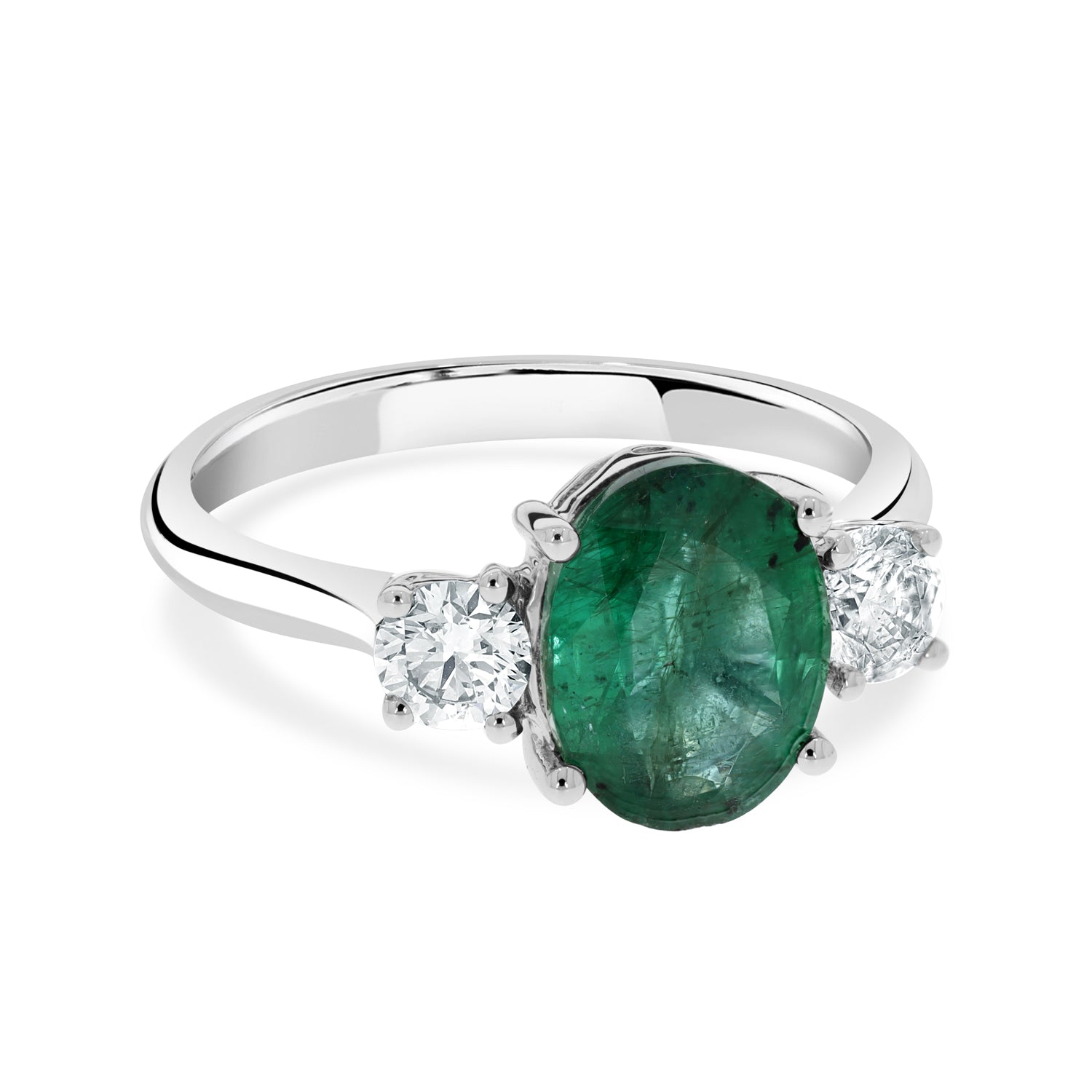 With a lovely pattern and world-class craftsmanship, this 14Kt white gold ring is a great accessory to add radiance to your look while heading for parties, family functions and on those special days. The key to its stunning beauty lies in its oval-cut Emerald that shines amidst round diamonds.