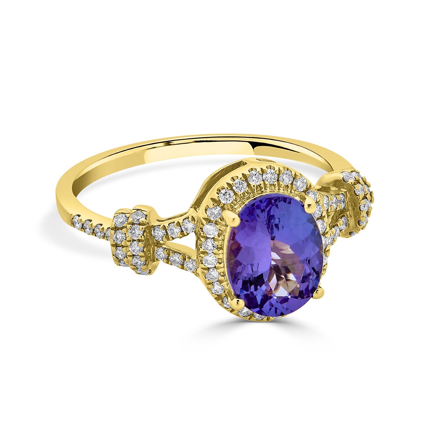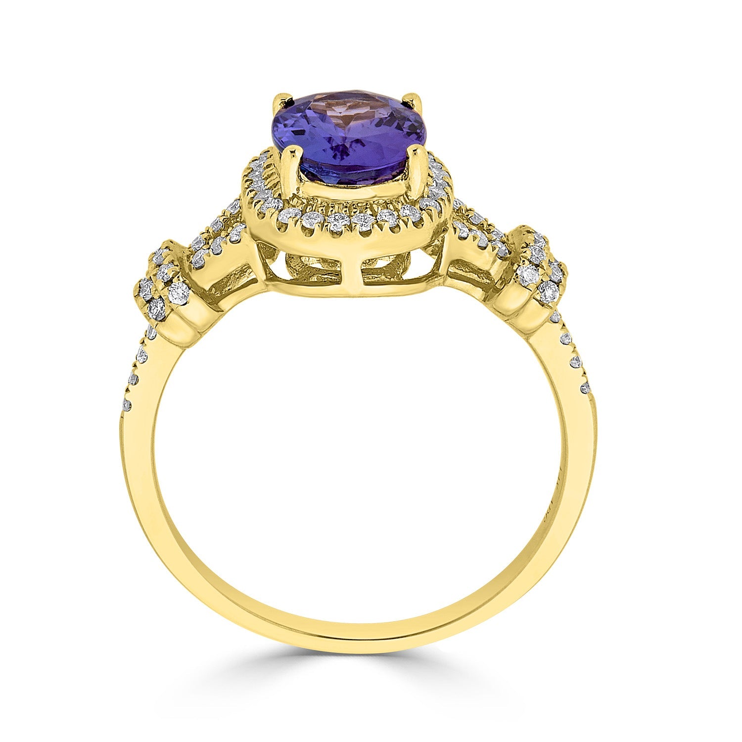 This 14K yellow gold ring is specially designed for jewelry lovers. The oval cut Tanzanite will brighten your style like magic while the round Diamonds add extra sparkle.