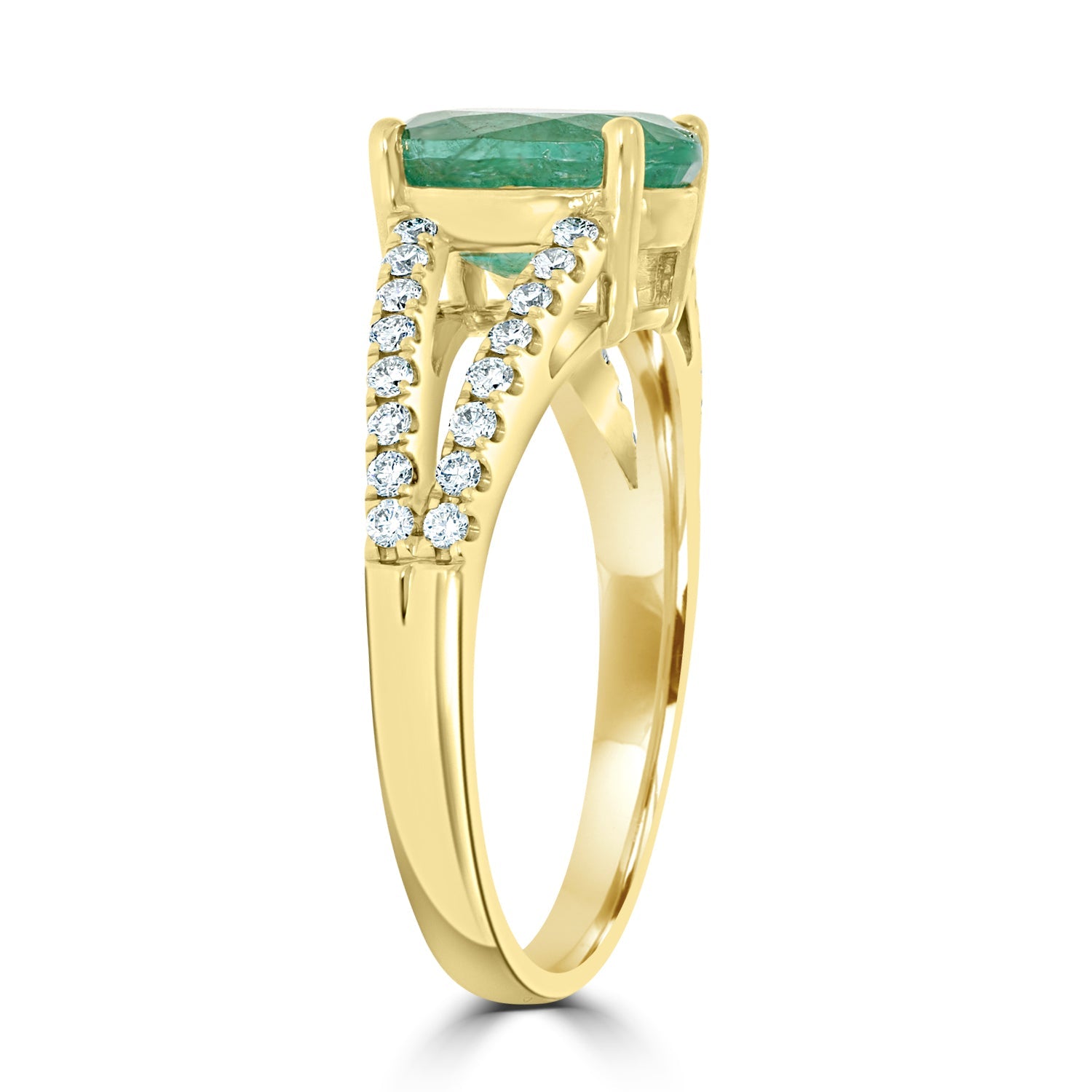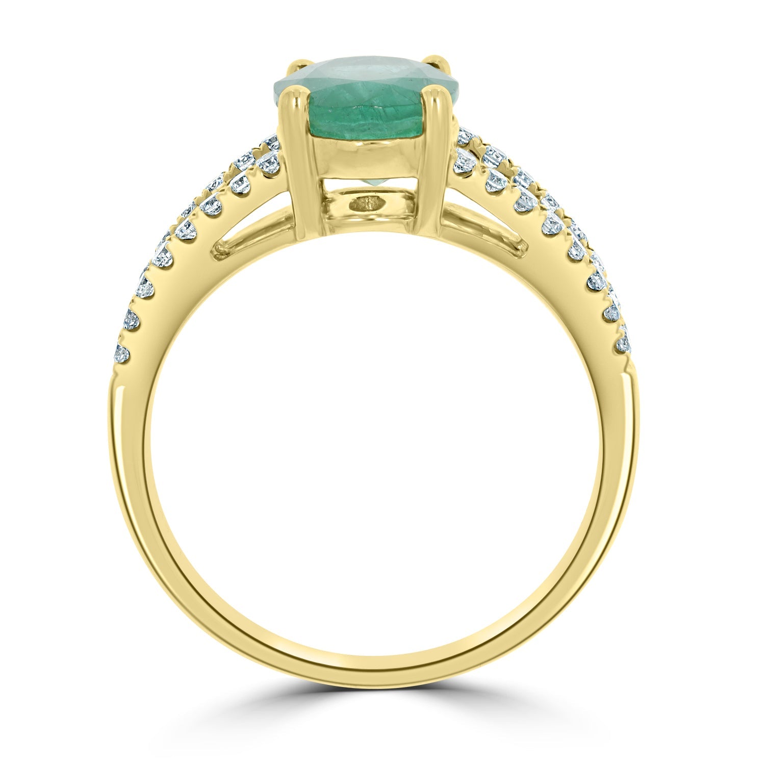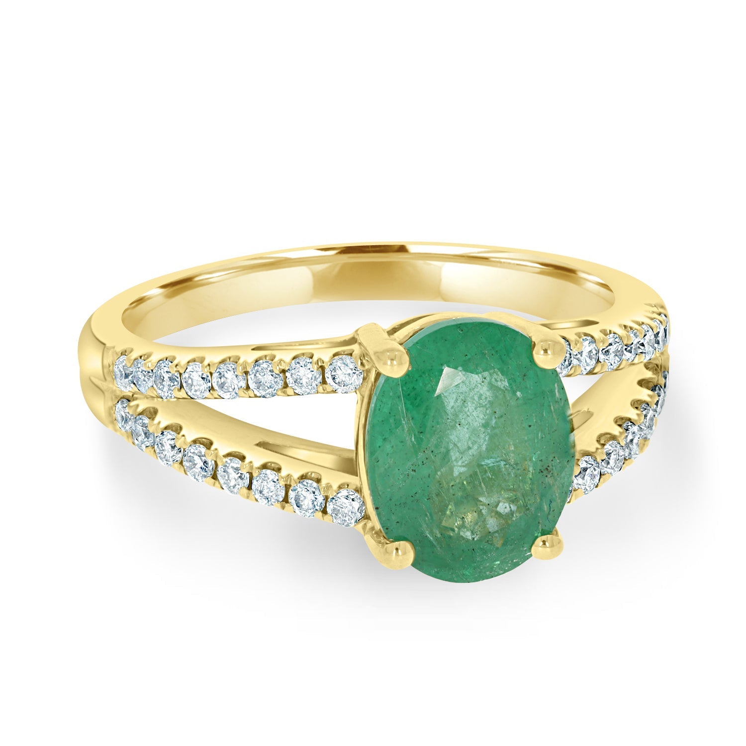 Designed With 14k Yellow Gold For An Unmatched Luster, This Marvelous Ring Is Set With An Eye-catching Oval Cut Emerald. Highlighting The Deep Shade Of The Gemstone Are The Glittering Round Cut Diamonds Around It, Which Give This Stunning Ring A Breathtaking Look.