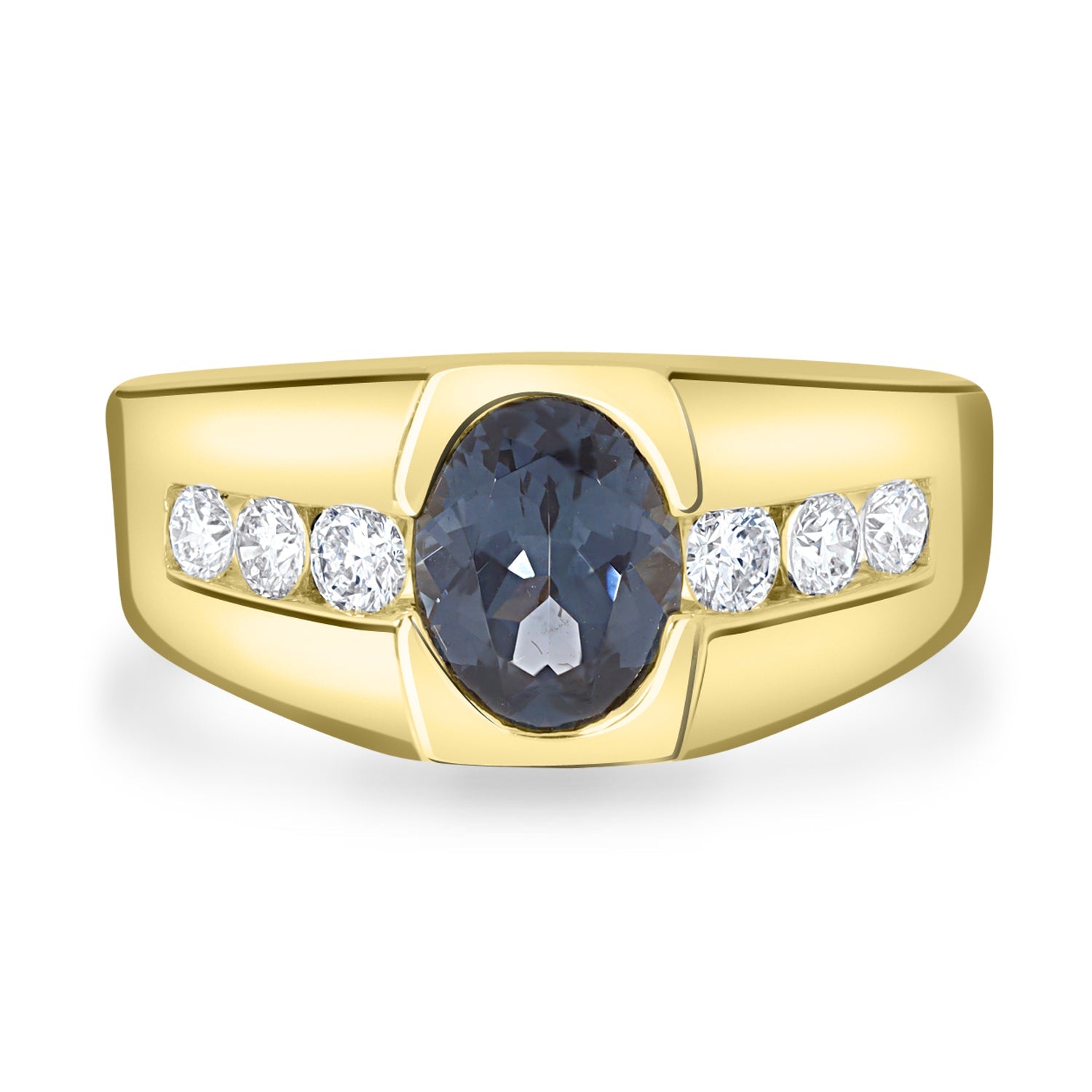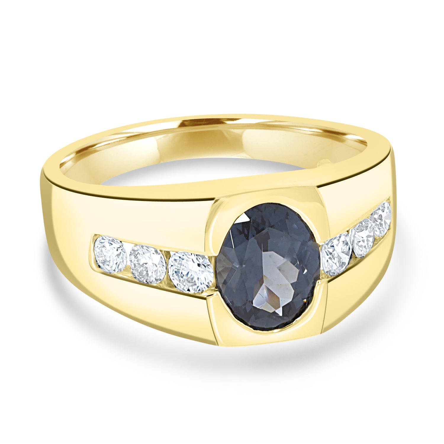 This astonishing ring is set with oval-cut Spinel and round Diamonds. Crafted from 14k yellow gold, this luxurious ring is a perfect.