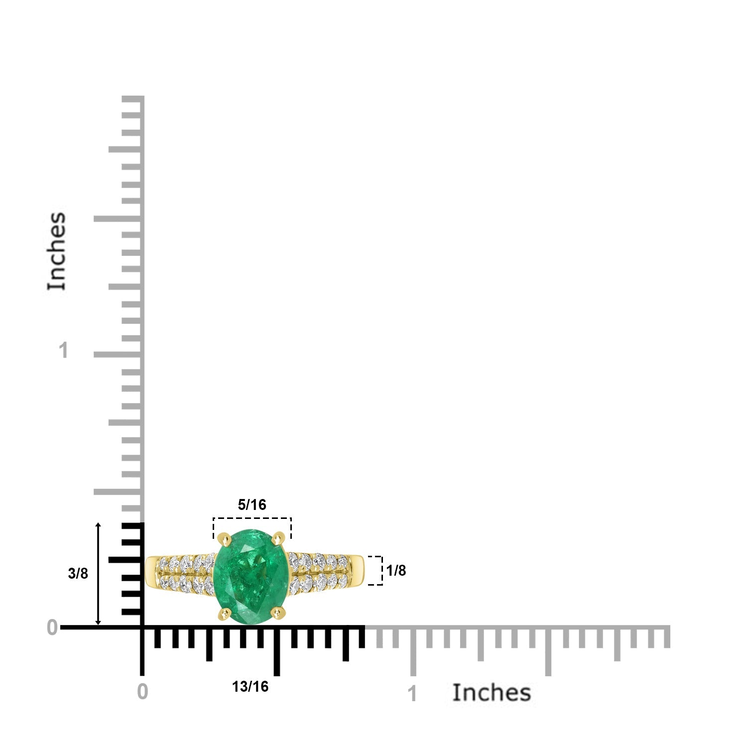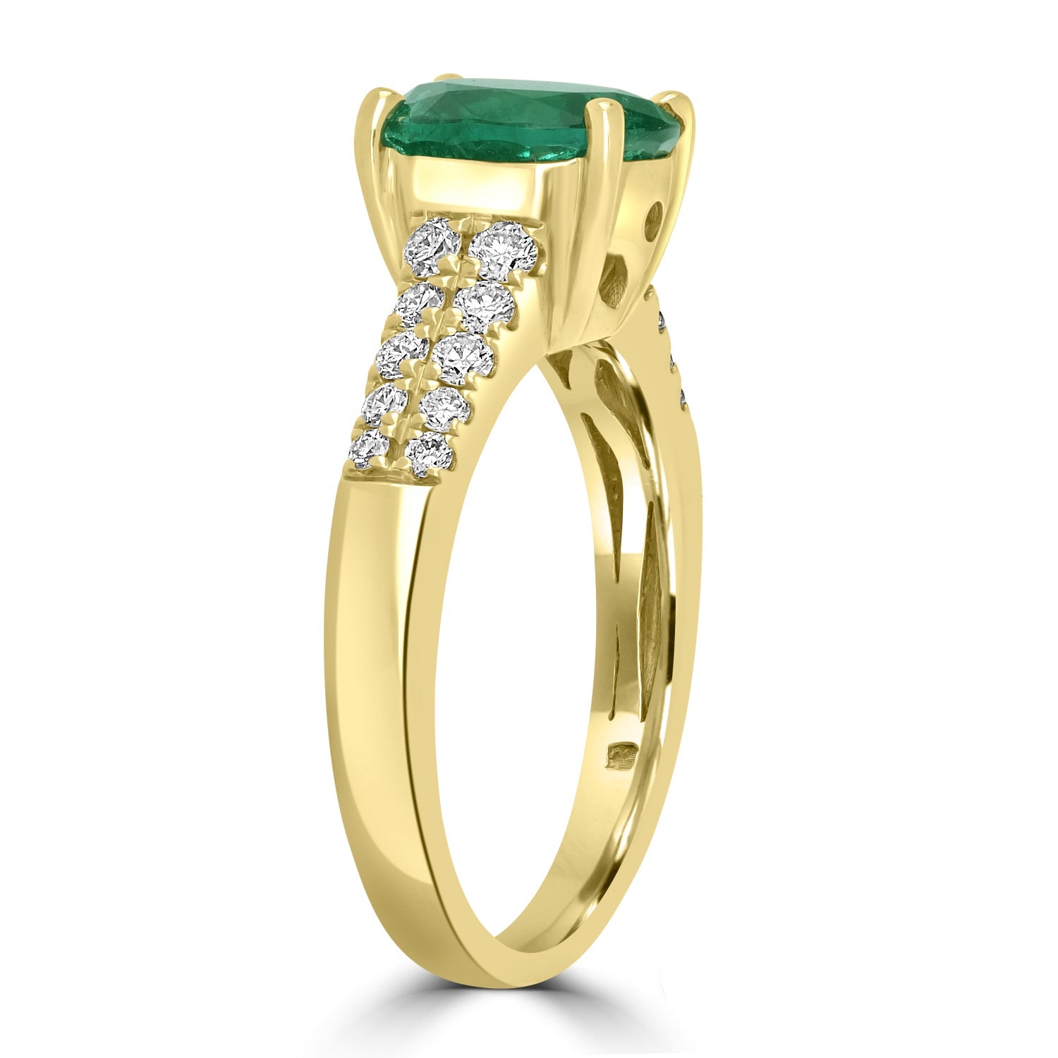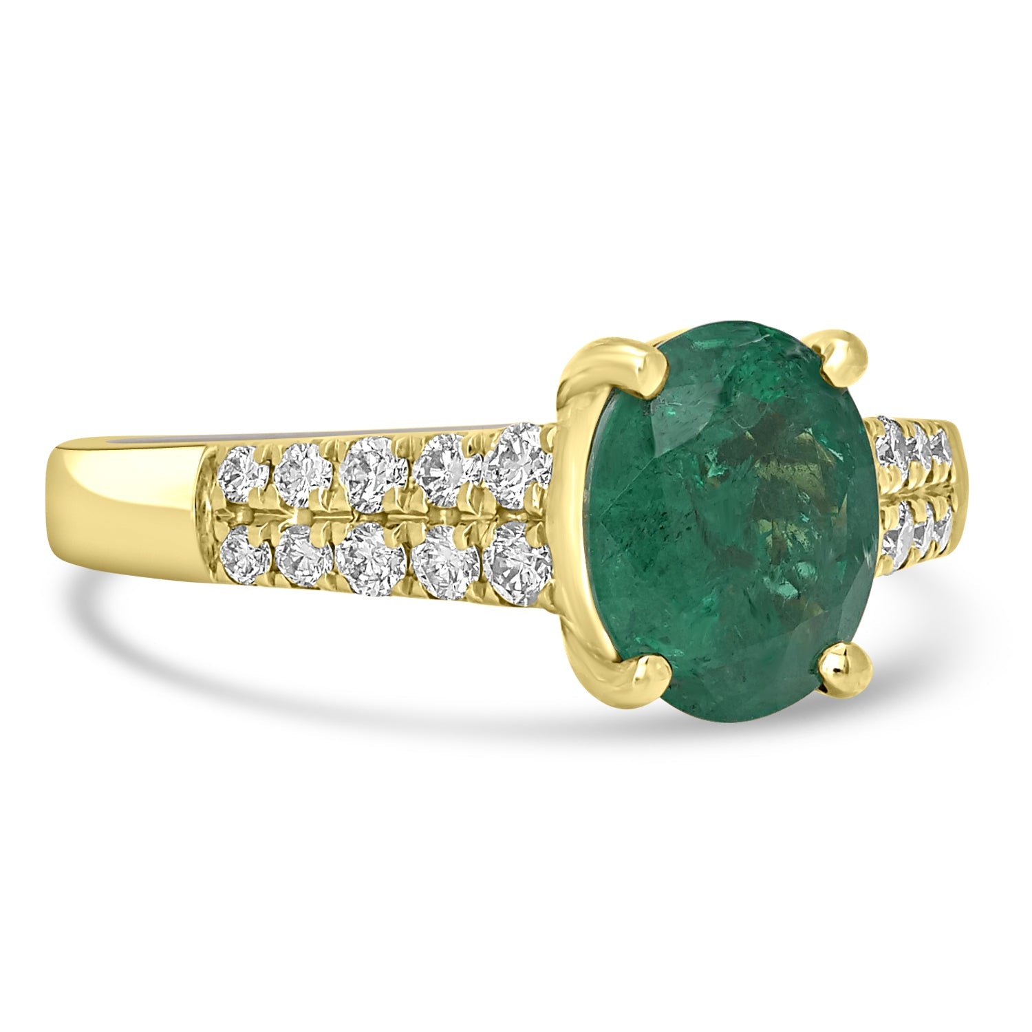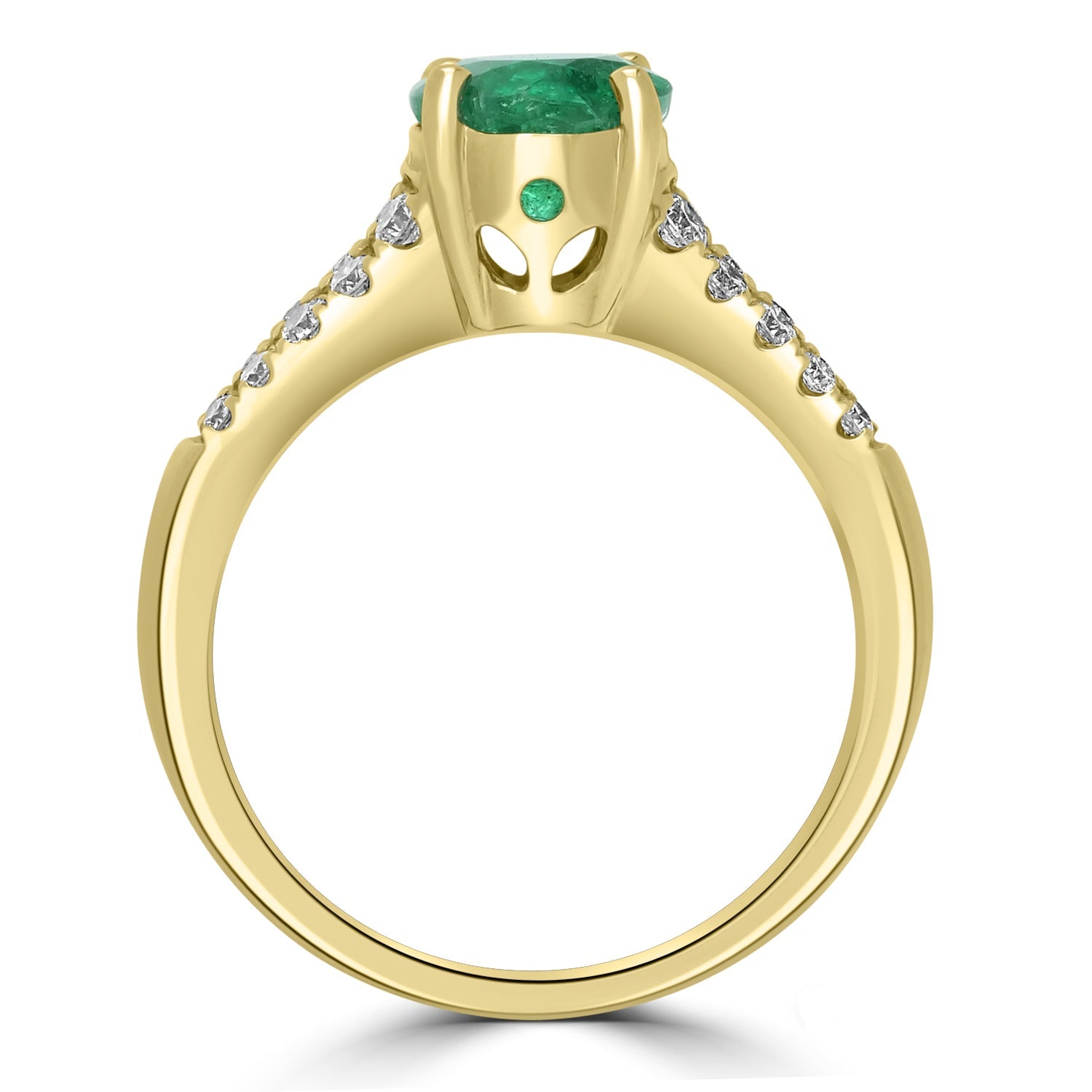 This exotic 14K yellow gold ring showcases an oval-cut Emerald and round Diamonds.