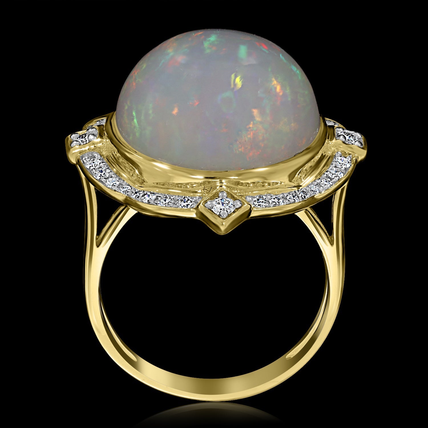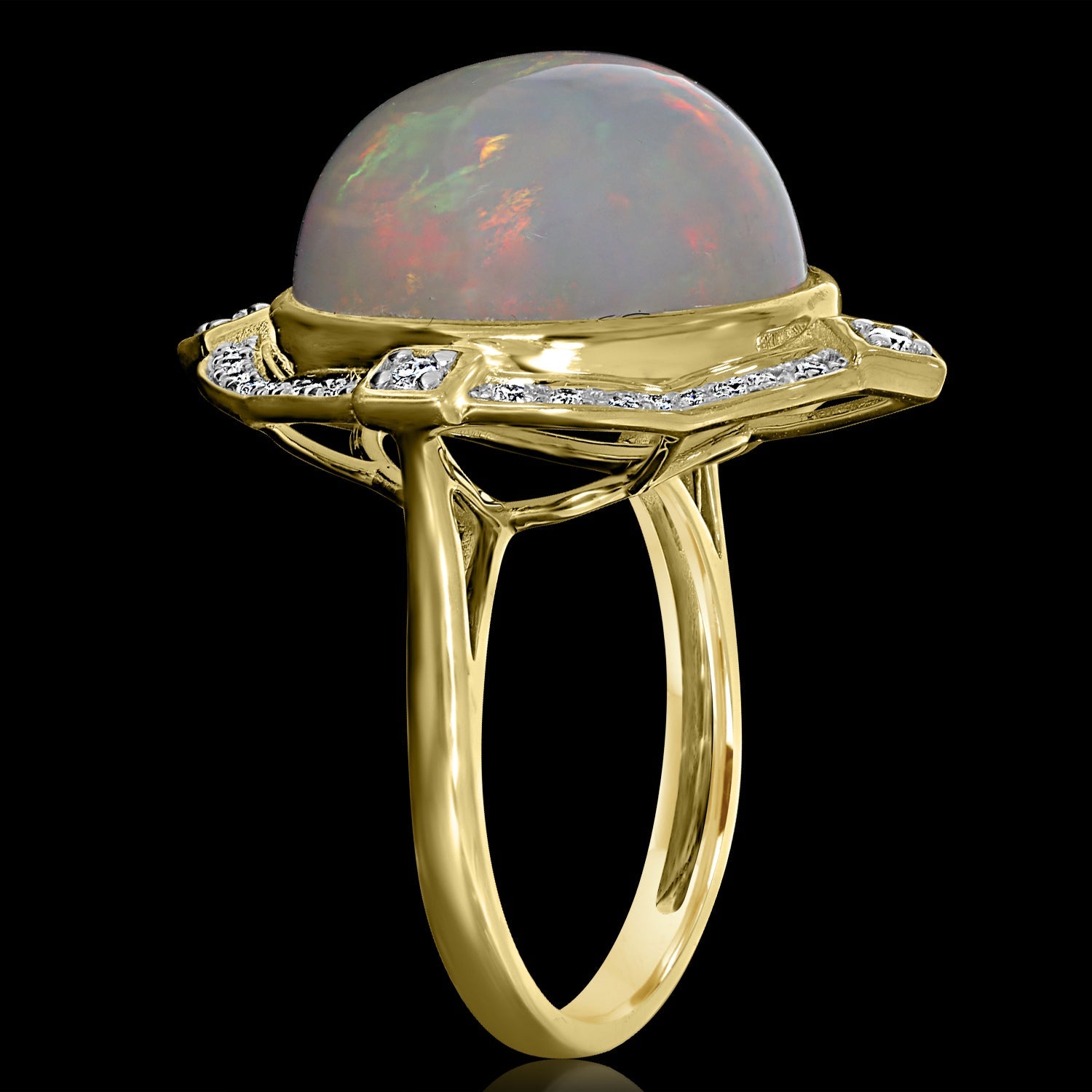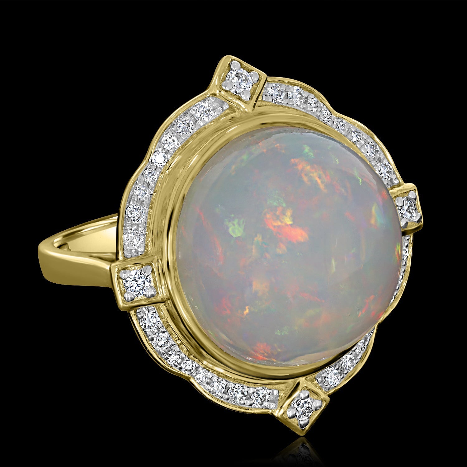 This ring is designed with 14k yellow gold and creatively set with round cut Opal and round Diamonds.