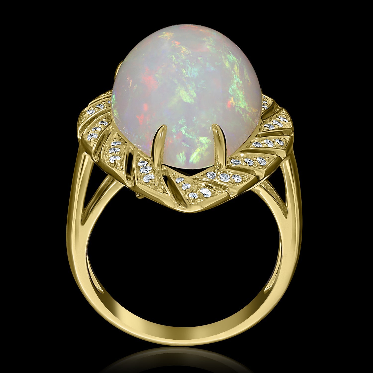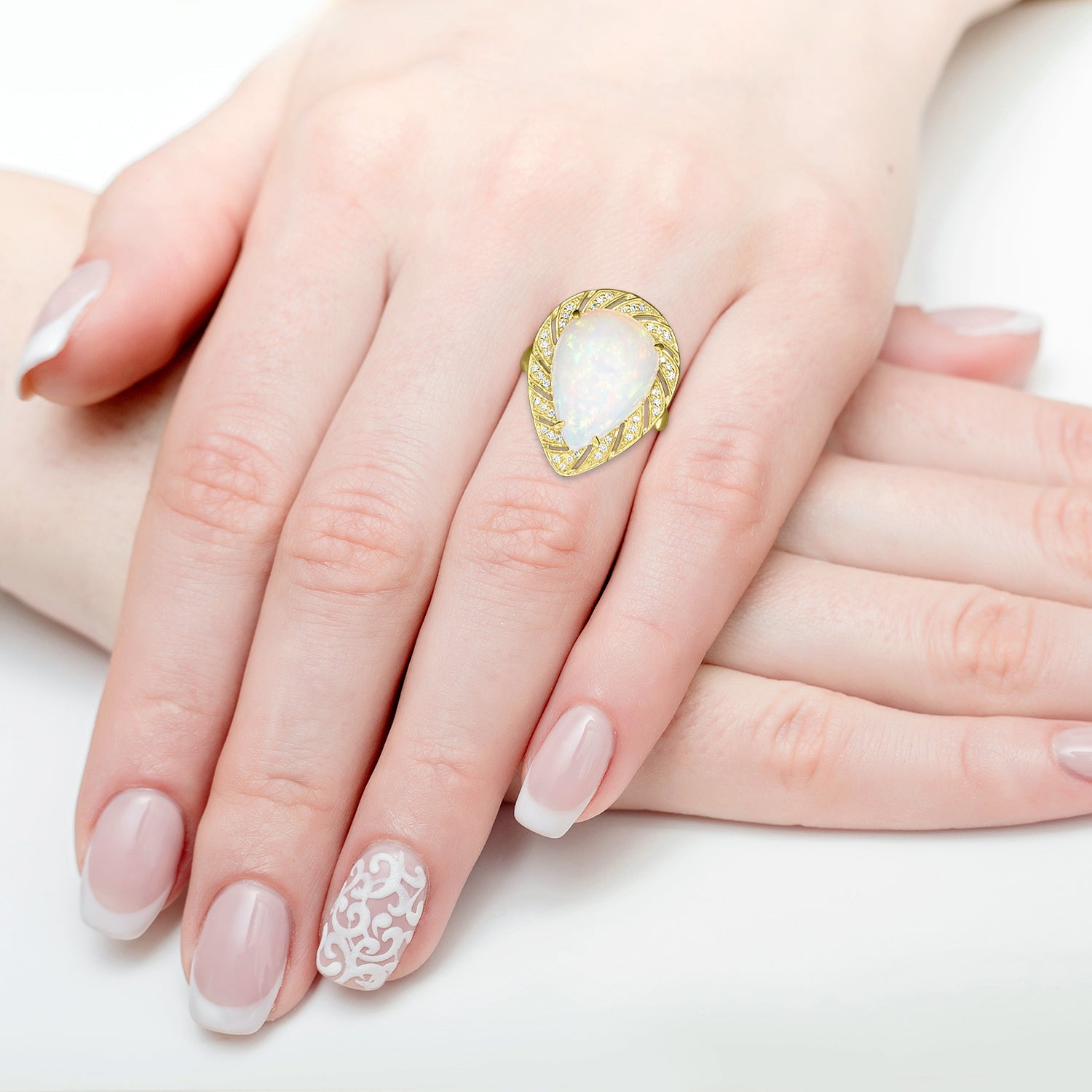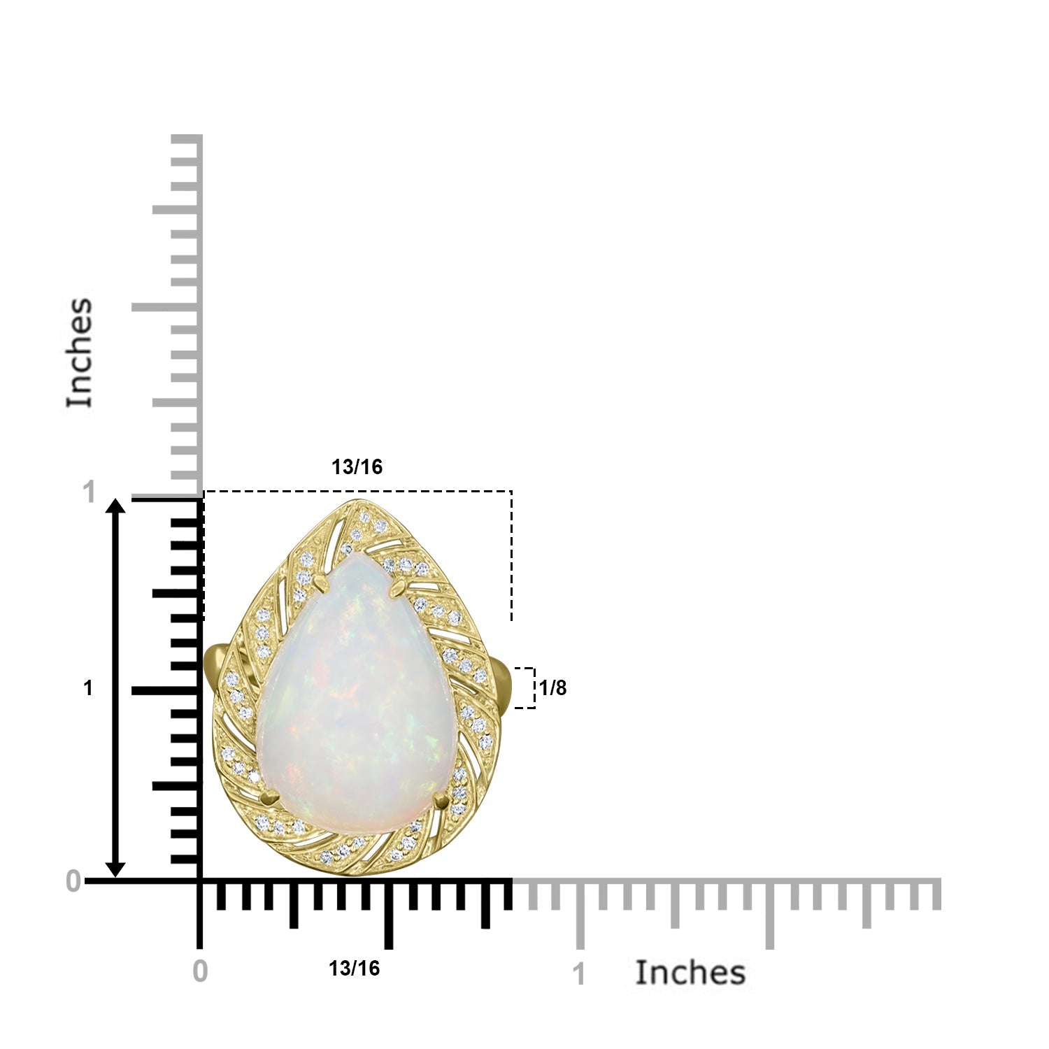 This beautiful ring is crafted from 14k yellow gold and set with a pear-cut Opal and round Diamonds.