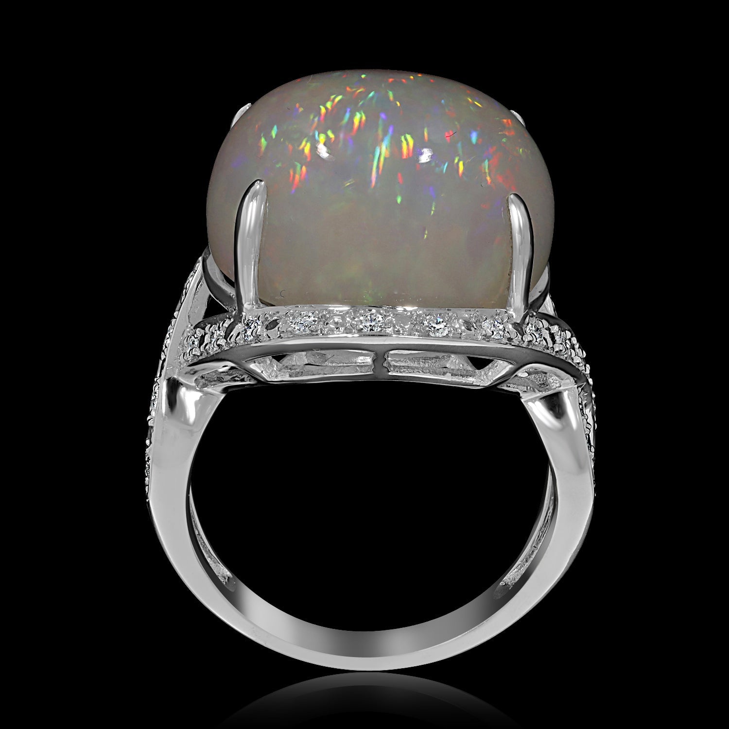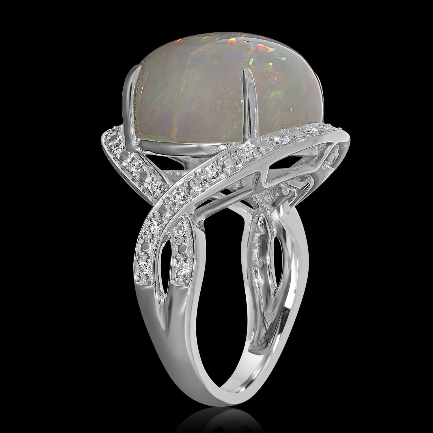 14.25ct Opal Ring with 0.26tct Diamonds set in 14K White Gold