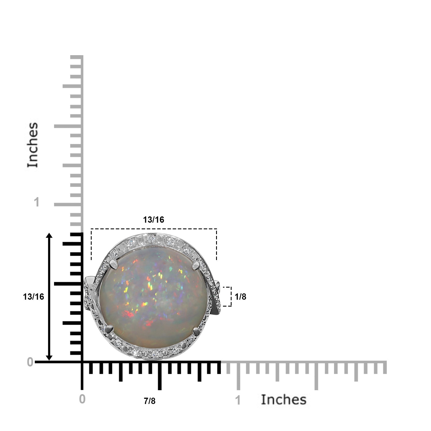 This stylish ring is designed with 14k white gold. The ring is studded with round-cut Opal and round Diamonds that can't be missed.