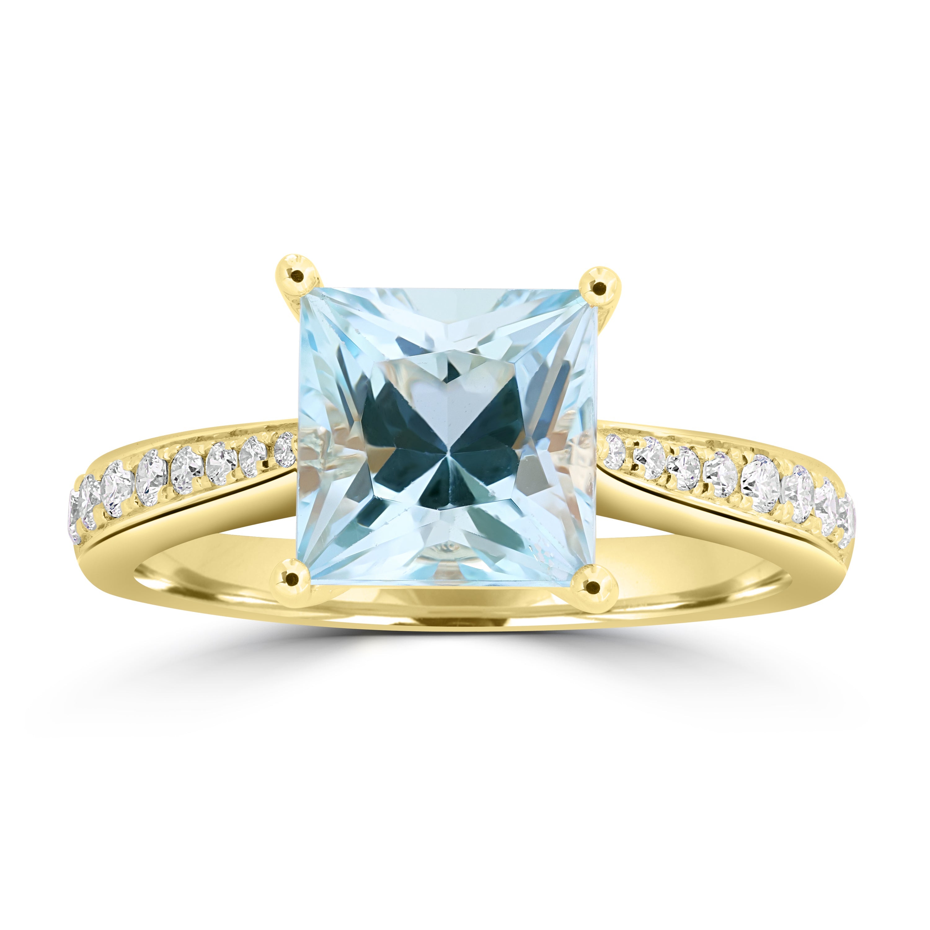 "2.187ct Aquamarine Rings with 0.193tct Diamond set in 18K Yellow Gold"