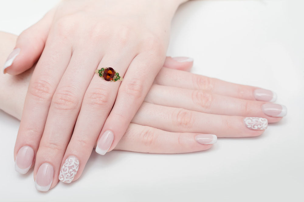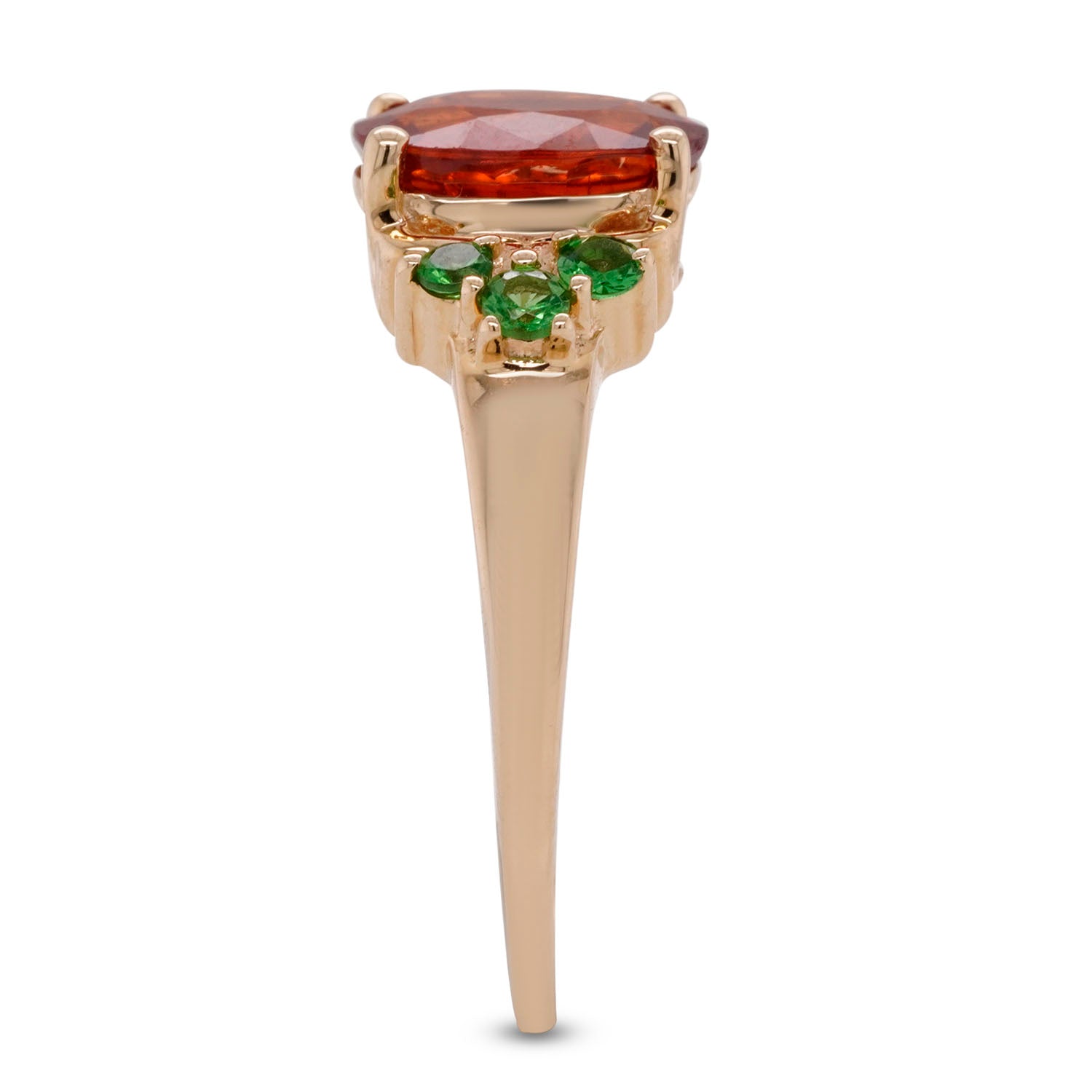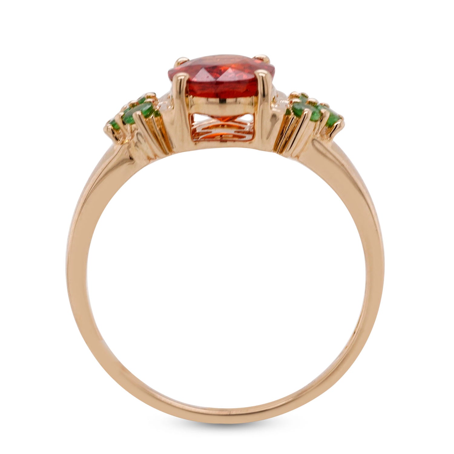 The bright orange of the Mandarin Garnet sparkles through its oval cut emanating a fascinating glow that pulls attention. Accentuated by the glimmer of round cut Diamonds, this ravishing ring is truly a masterpiece that is sure to leave you spellbound. Crafted in 14K yellow gold, its mesmerizing finish coupled with its magnificent shine dresses you up gracefully for any occasion with flair!