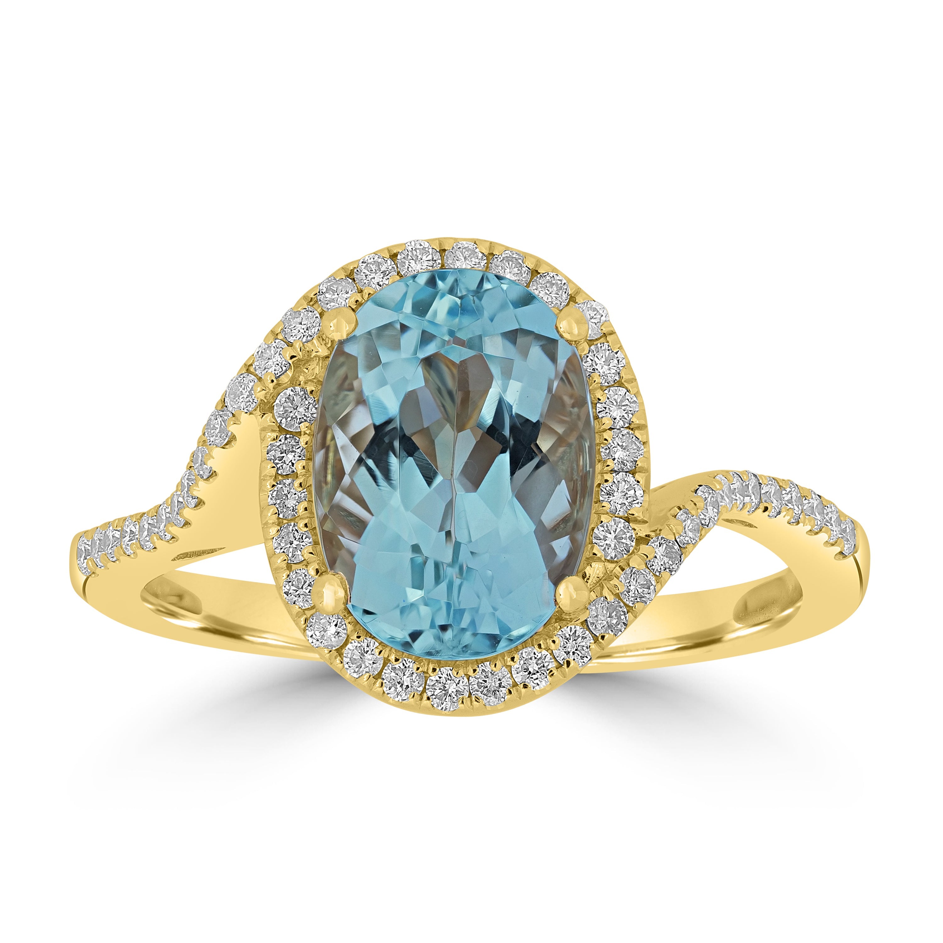 Embrace the allure of this meticulously crafted 18K ring. The oval-cut Aquamarine and round Diamonds set in 18K gold add a touch of luxury. This captivating accessory enhances your style with timeless charm.
