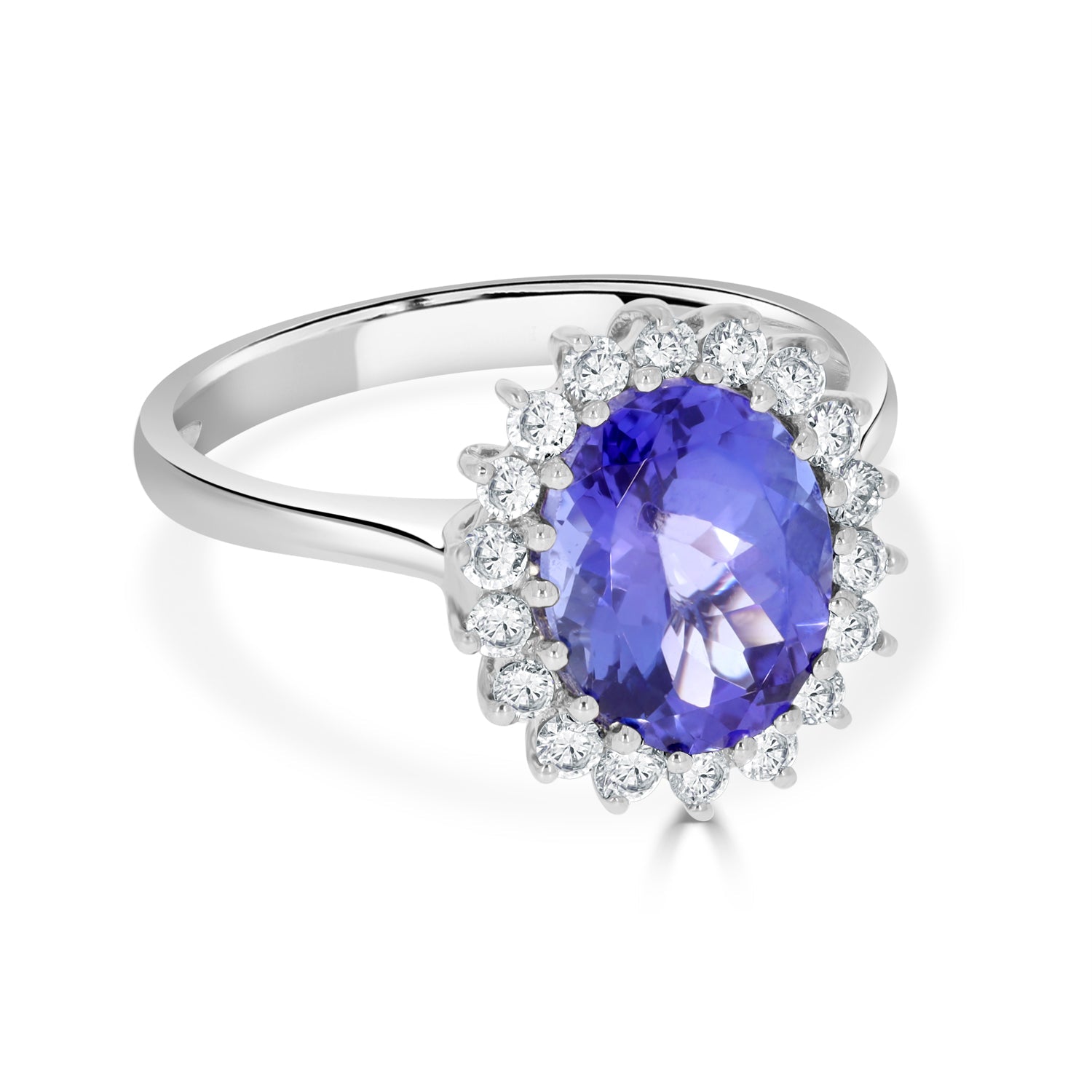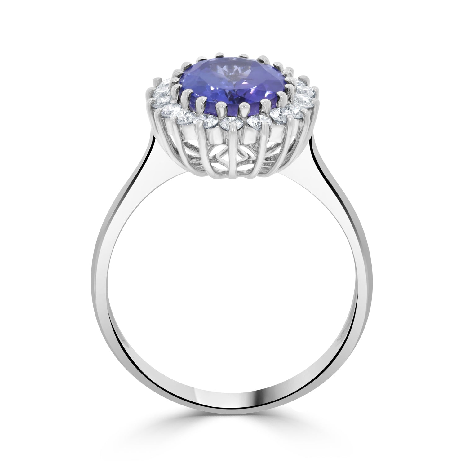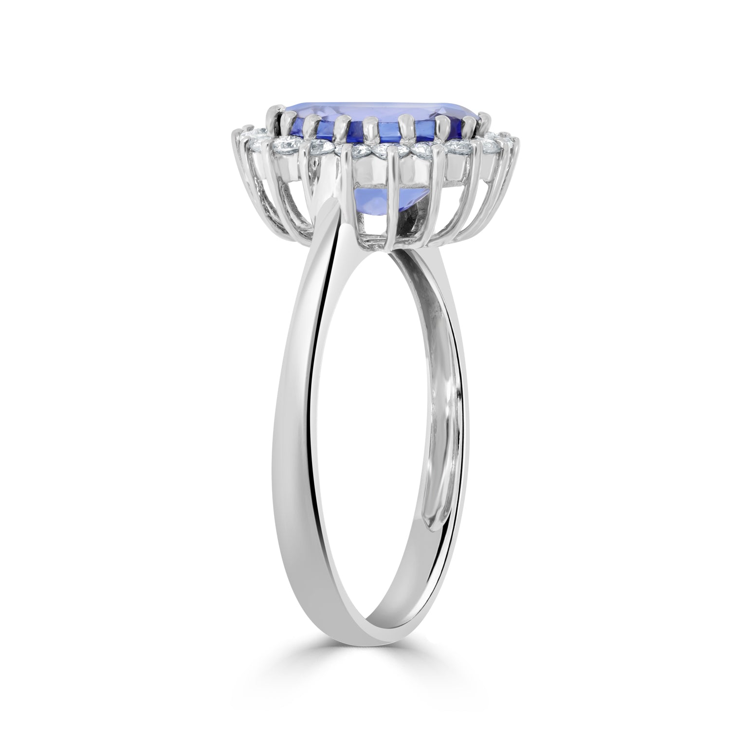 Designed With 18K White Gold, The Lustrous Finish Of This Gorgeous Ring Is Elevated By The Brilliance Of The Oval Cut Tanzanite. Surrounded By The Sparkle Of Round Cut Diamonds, This Fine Jewelry Is Sure To Leave You Spellbound.
