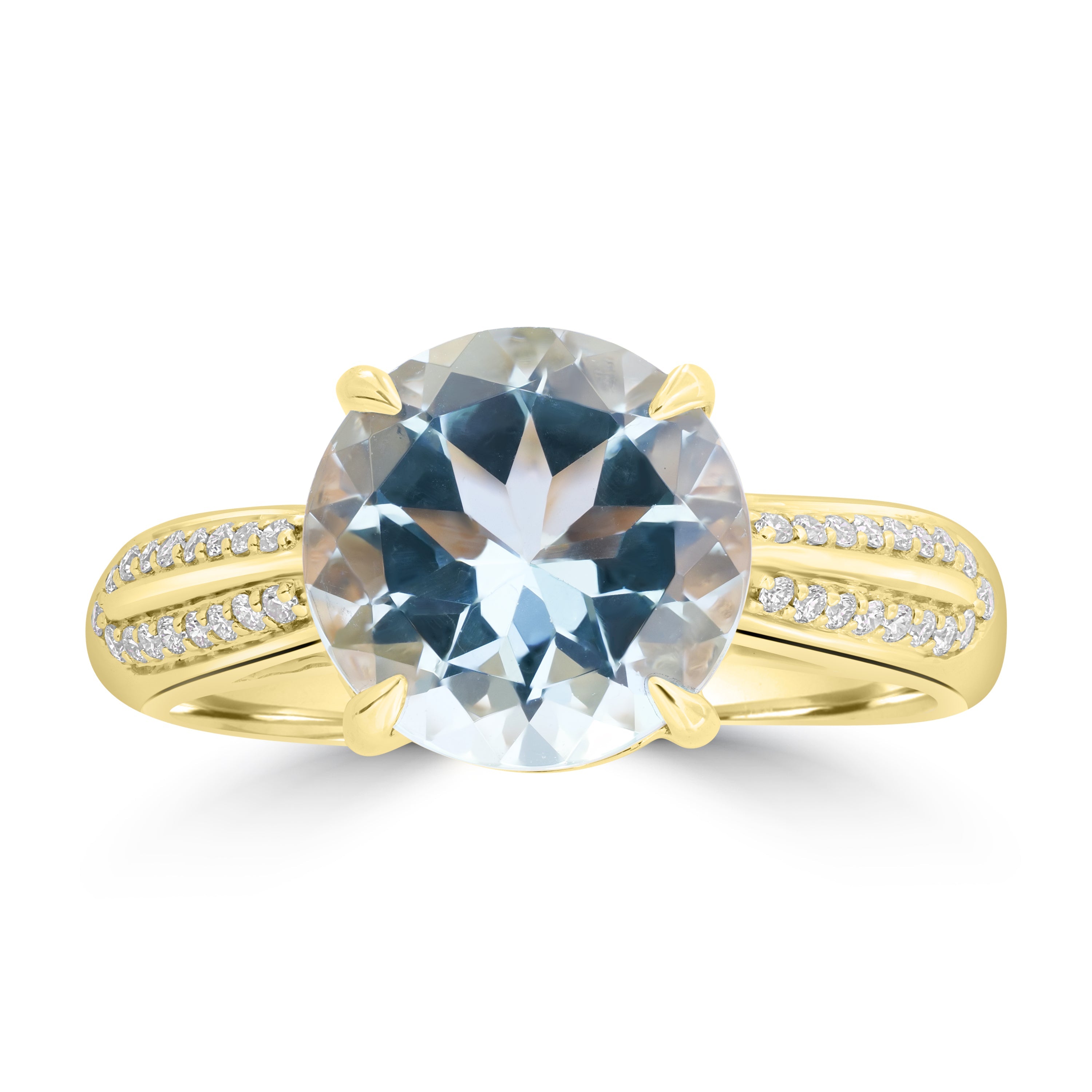 "2.97ct Aquamarine Rings with 0.13tct Diamond set in 18K Yellow Gold"