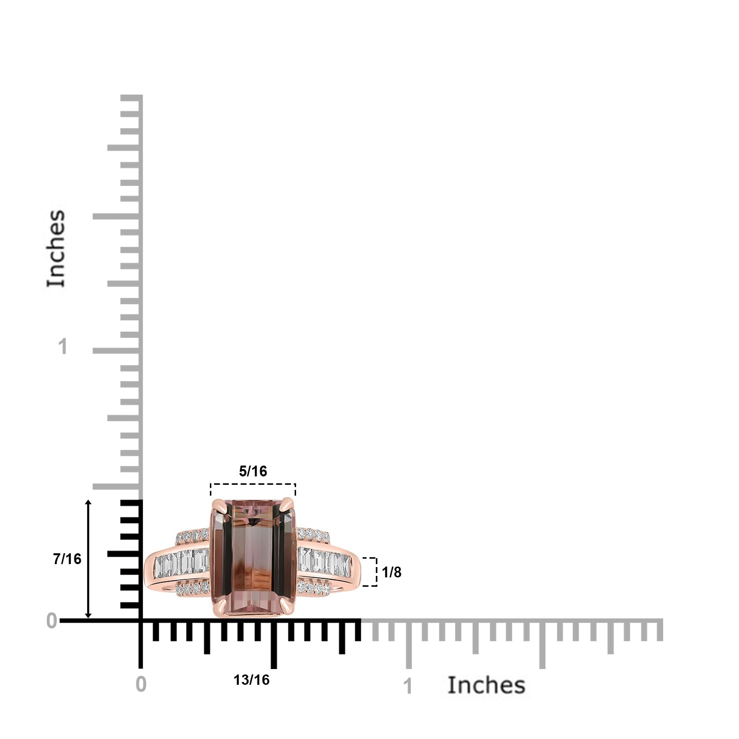 Fashionable and unique, this 18K rose gold ring with emerald-cut Tourmaline and round Diamonds is perfect for making a stylish statement. Its exquisite design adds class and sparkle, making it suitable for any occasion. Embrace elegance and enjoy wearing this stunning ring!