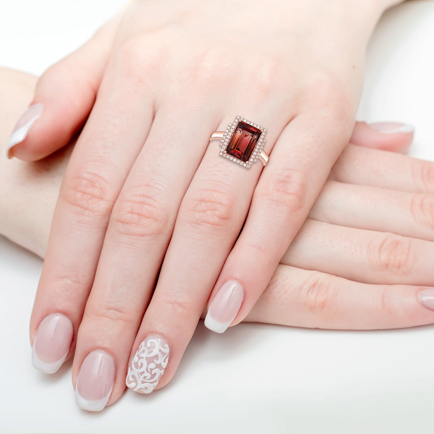 A fabulous fusion of color and style, this alluring ring is crafted of 18k rose gold. Be enchanted by the world-class workmanship and beauty of this striking ring adorned with emerald-cut Tourmaline and round Diamonds. This exquisite ring makes a memorable gifting choice for your loved ones.