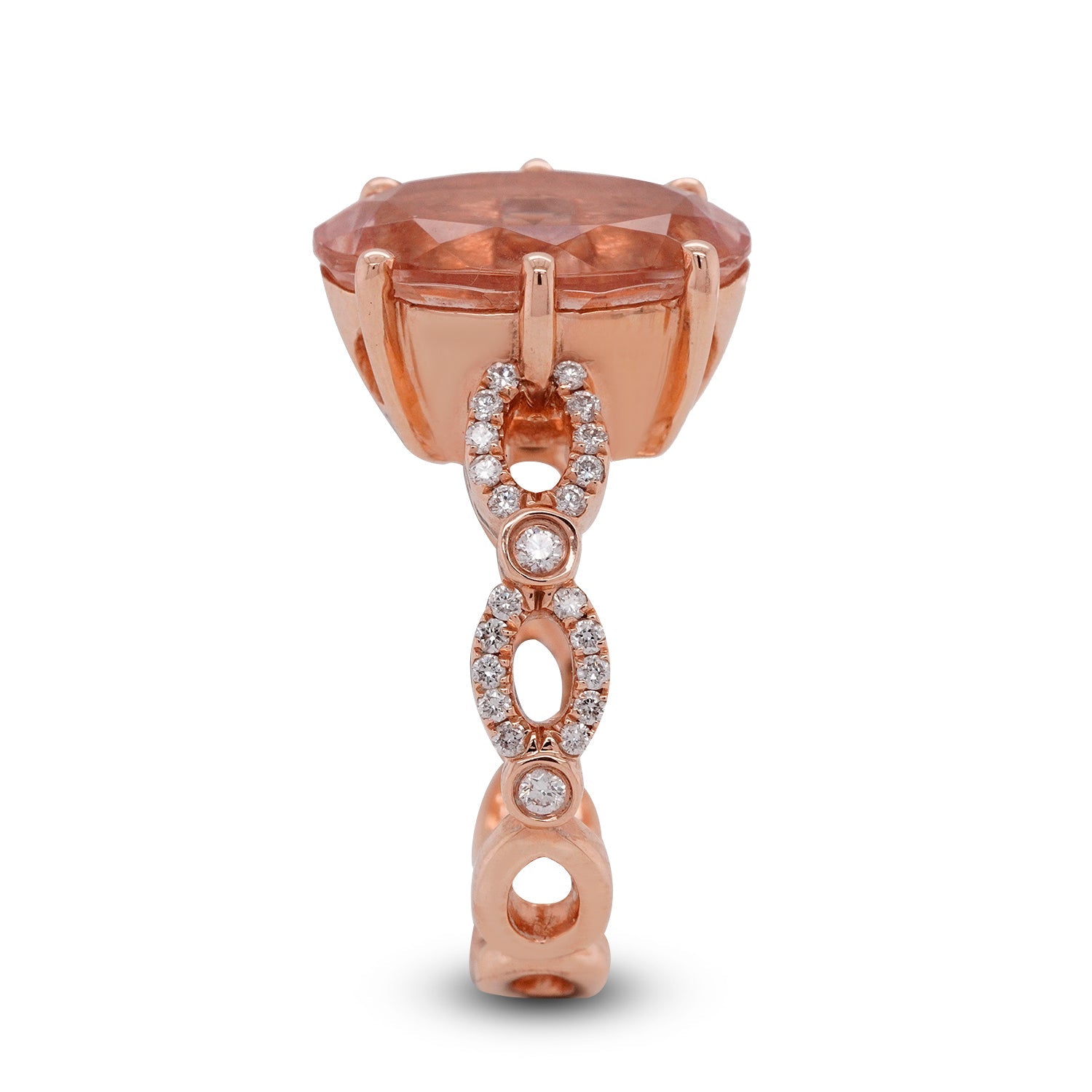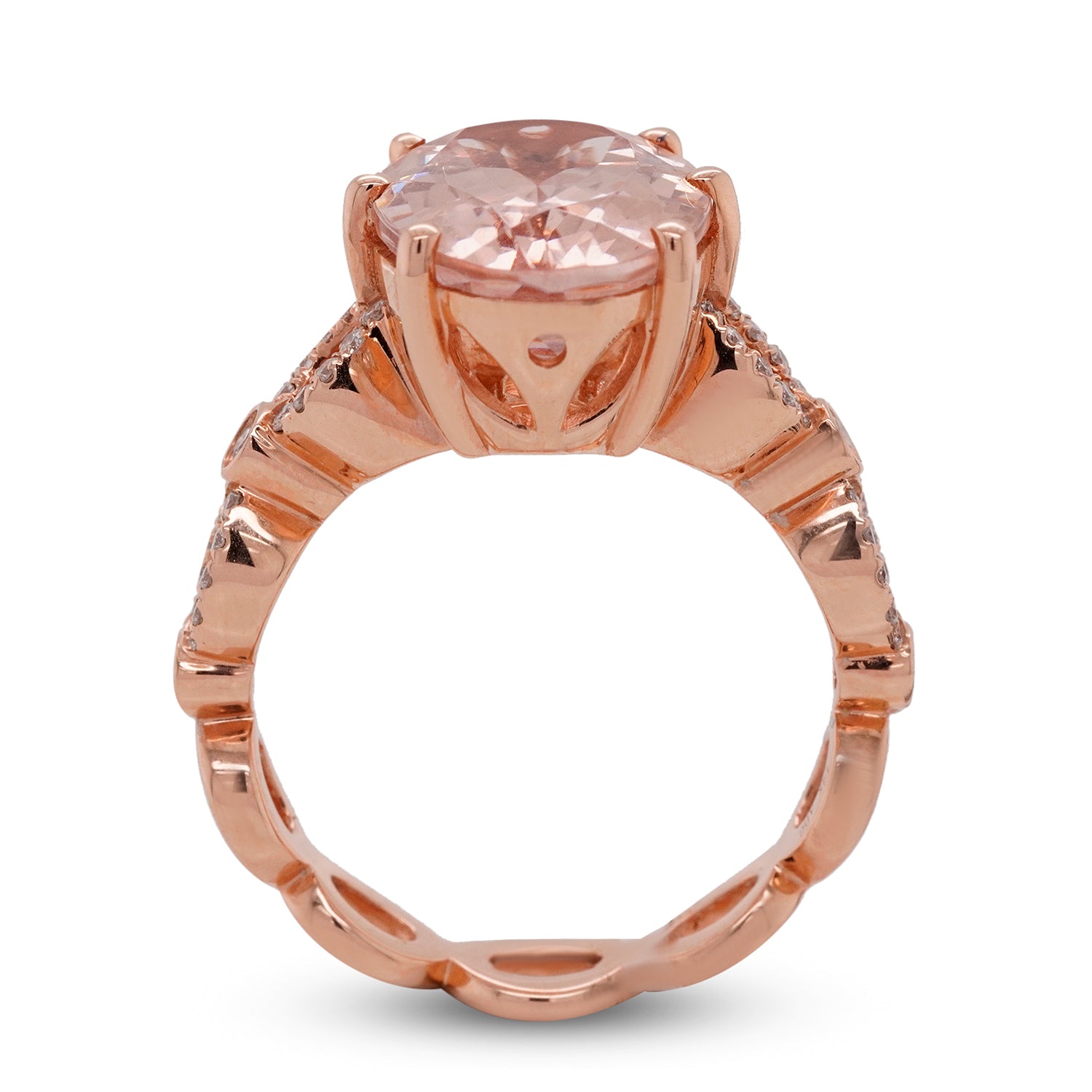 5.4ct Morganite ring wtih 0.27tct Diamond accents set in 14K rose gold