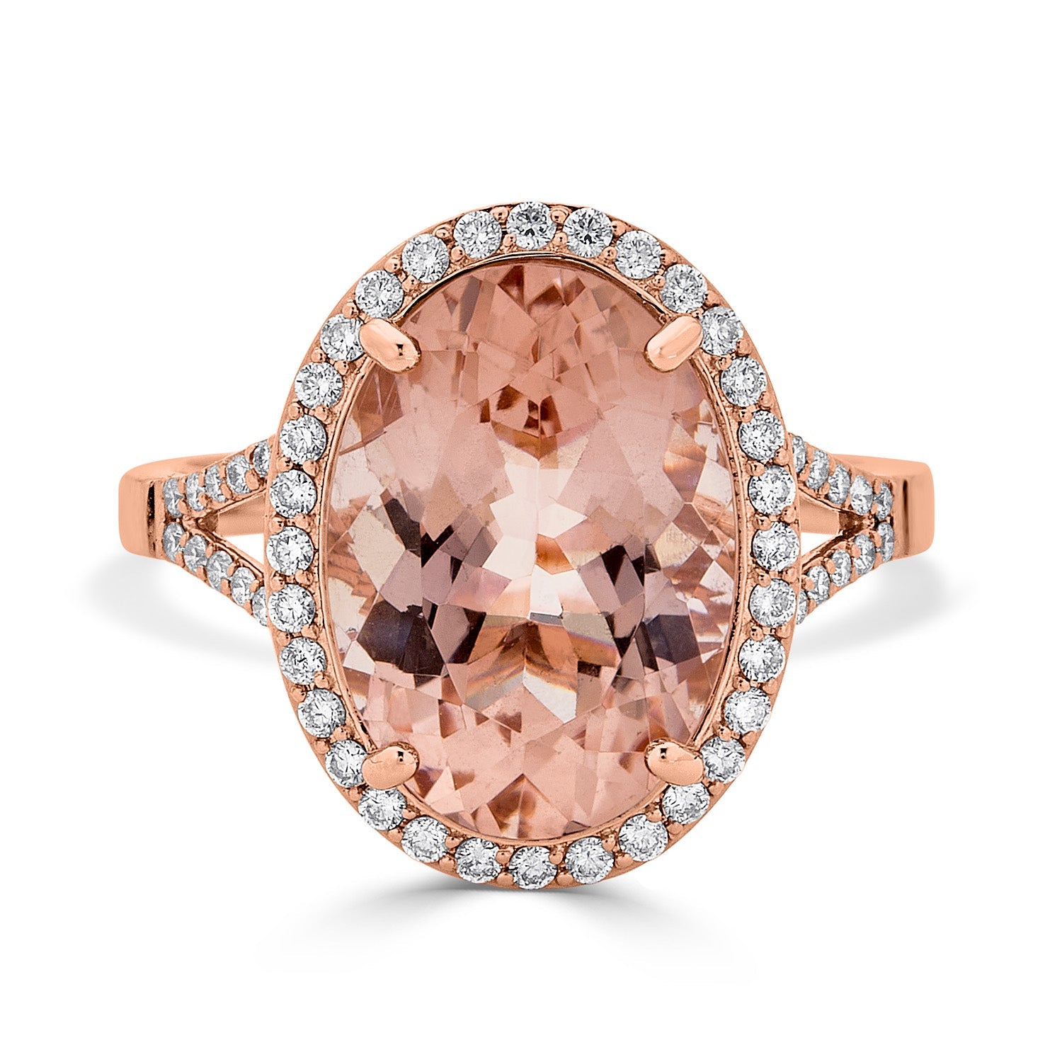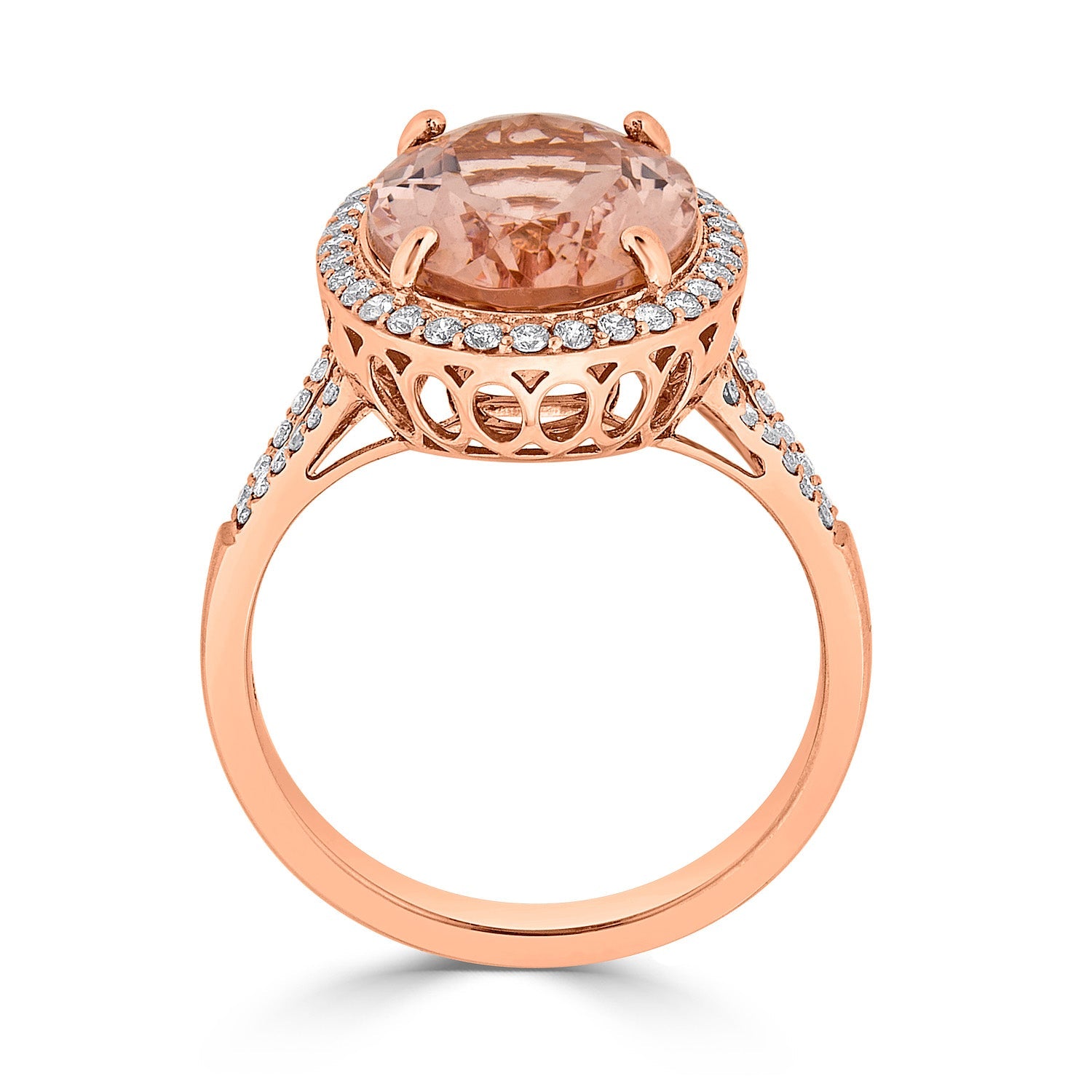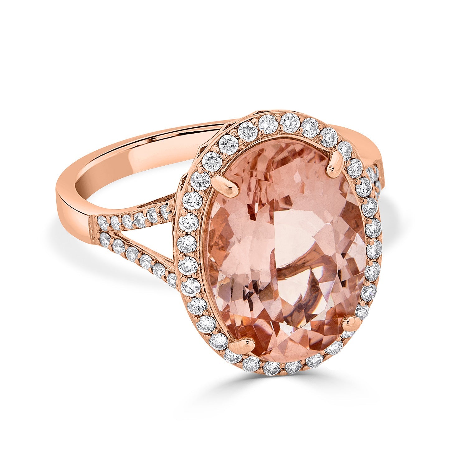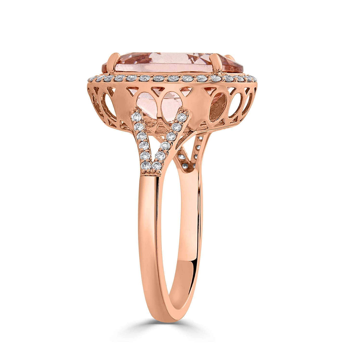 5.50ct Morganite ring with 0.31tct diamonds set in 14K rose gold