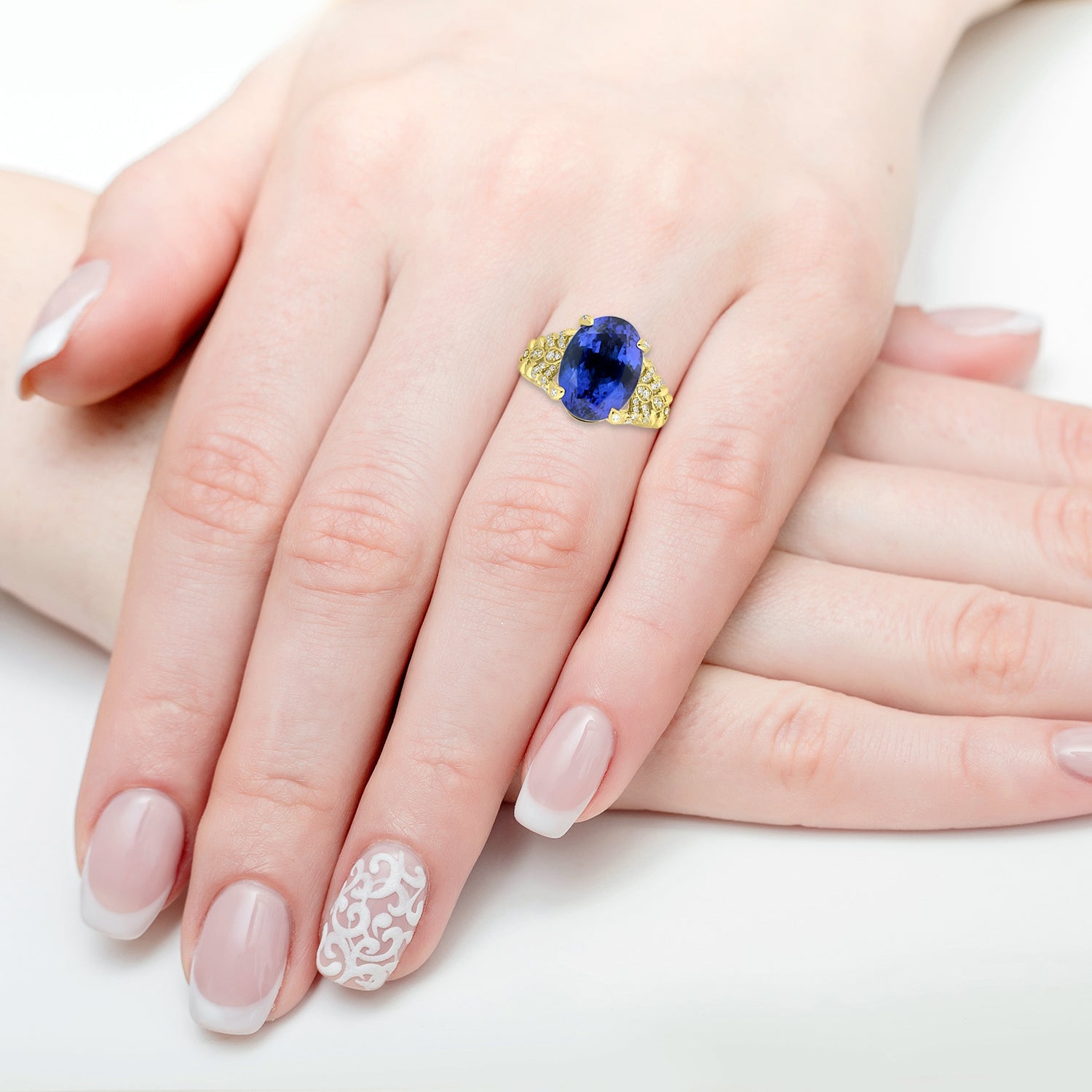 8.59ct Tanzanite Rings with 0.24tct Diamond set in 18K Yellow Gold