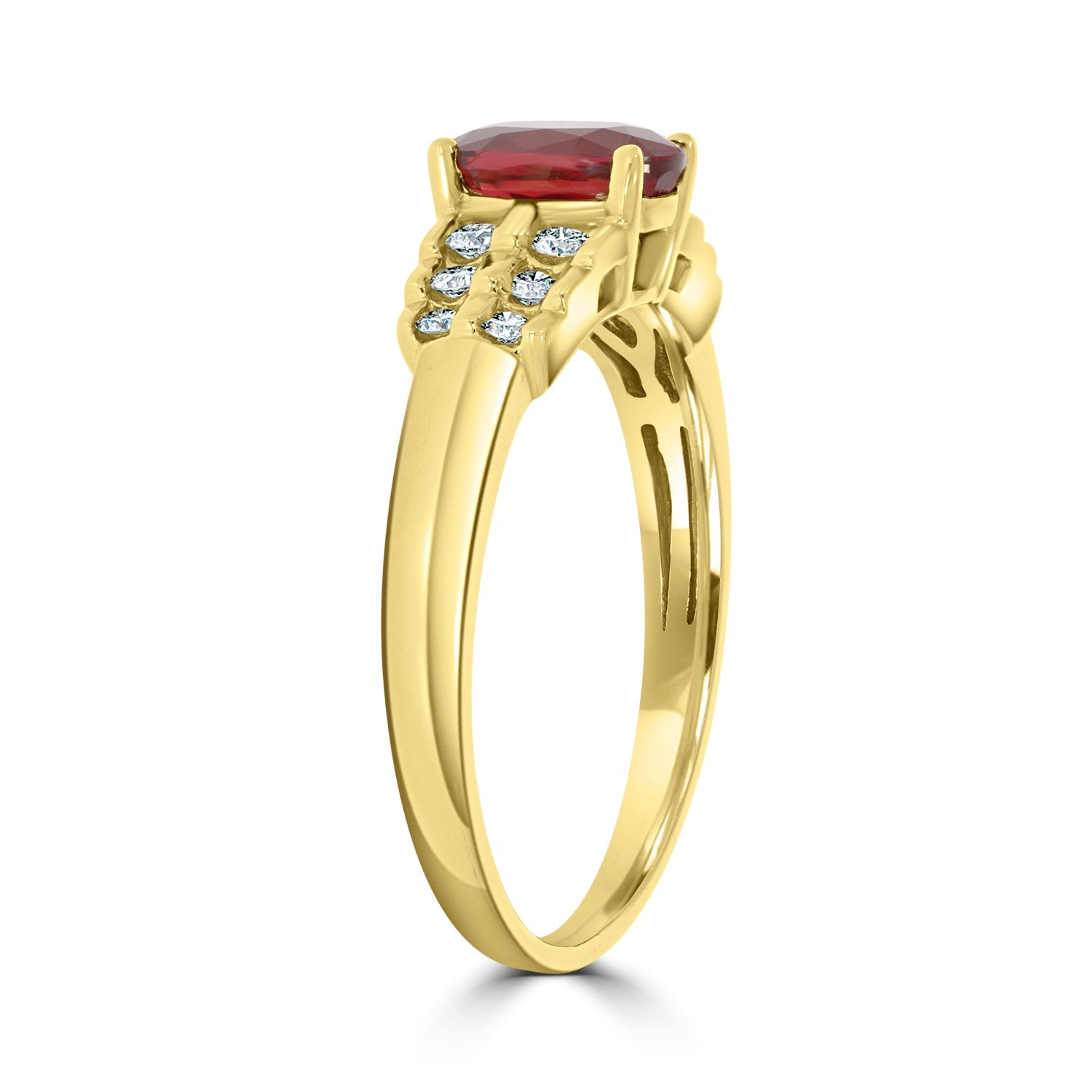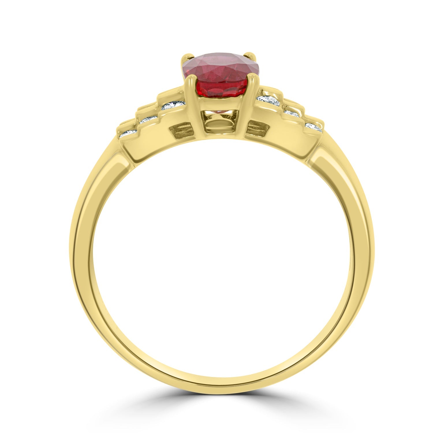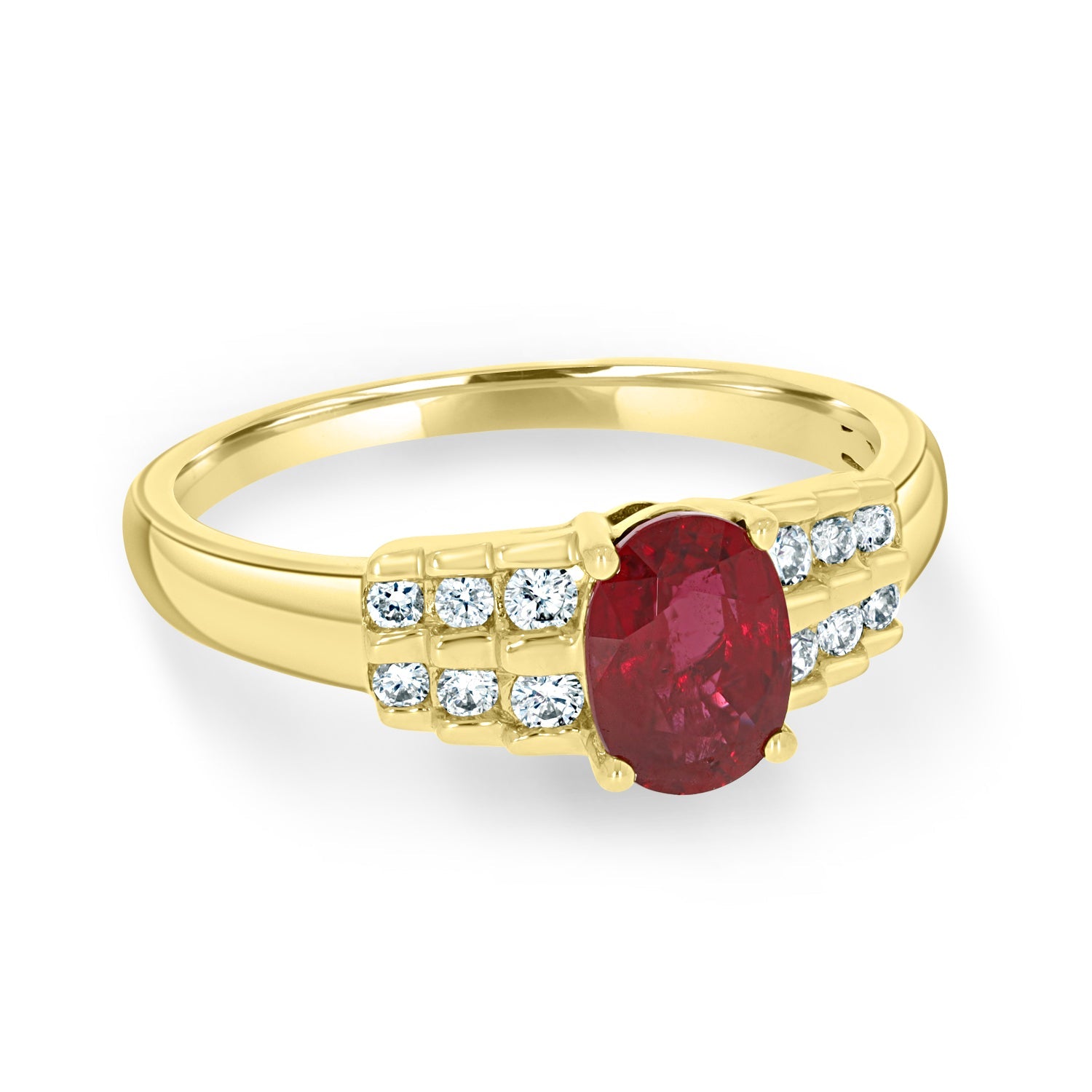 0.70ct Ruby Ring With 0.21tct Diamonds Set In 14K Yellow Gold