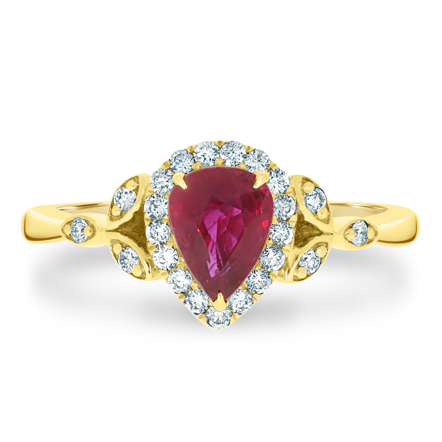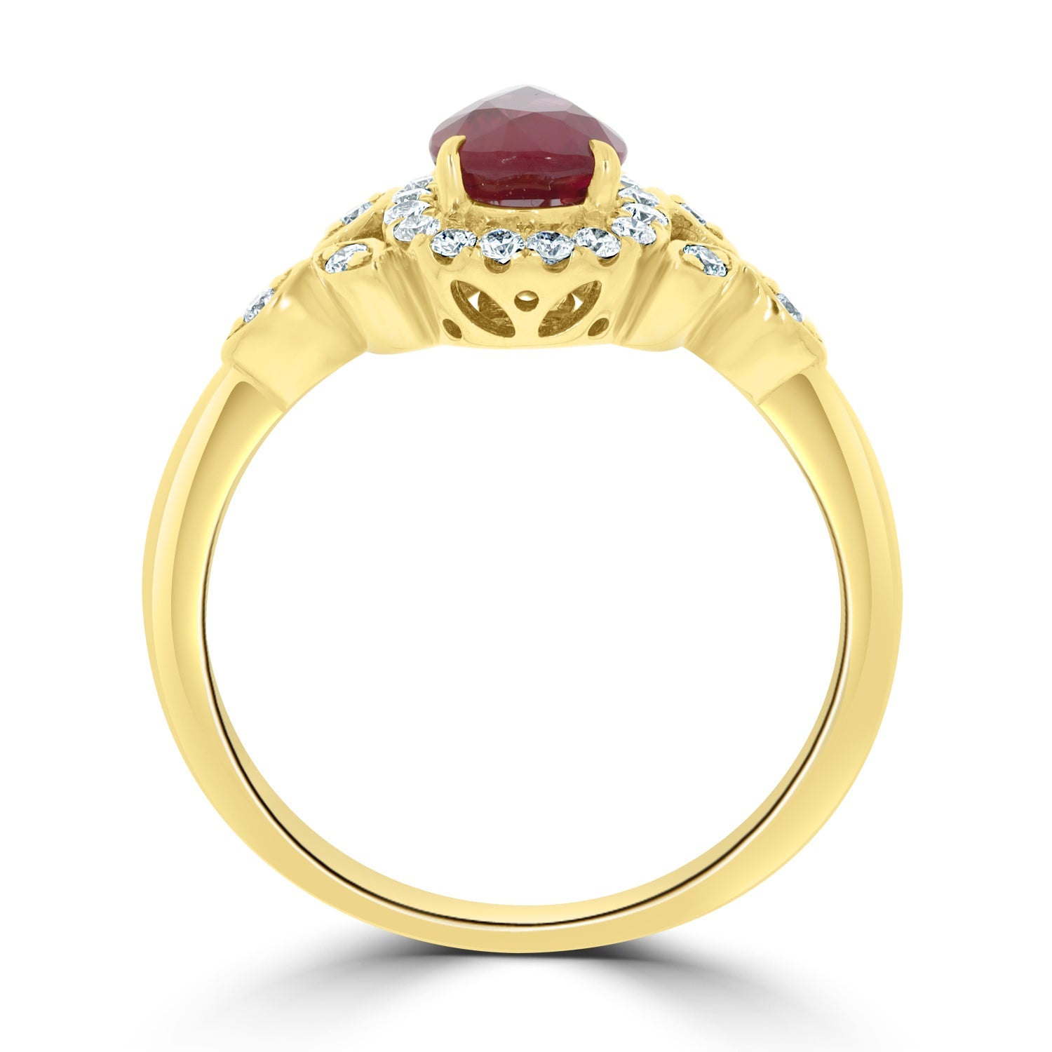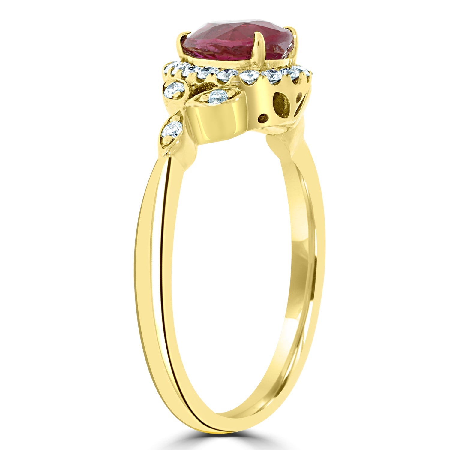 Designed With 14K White Gold, This Magnificent Ring Is Designed With A Striking Oval Cut Ruby At The Center And Is Surrounded By Shimmering Round Cut Diamonds That Spread An Endless Radiance Wherever You Go.