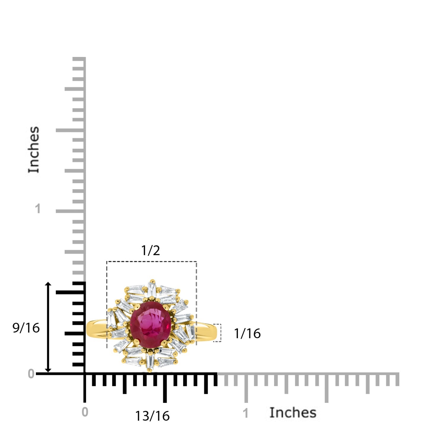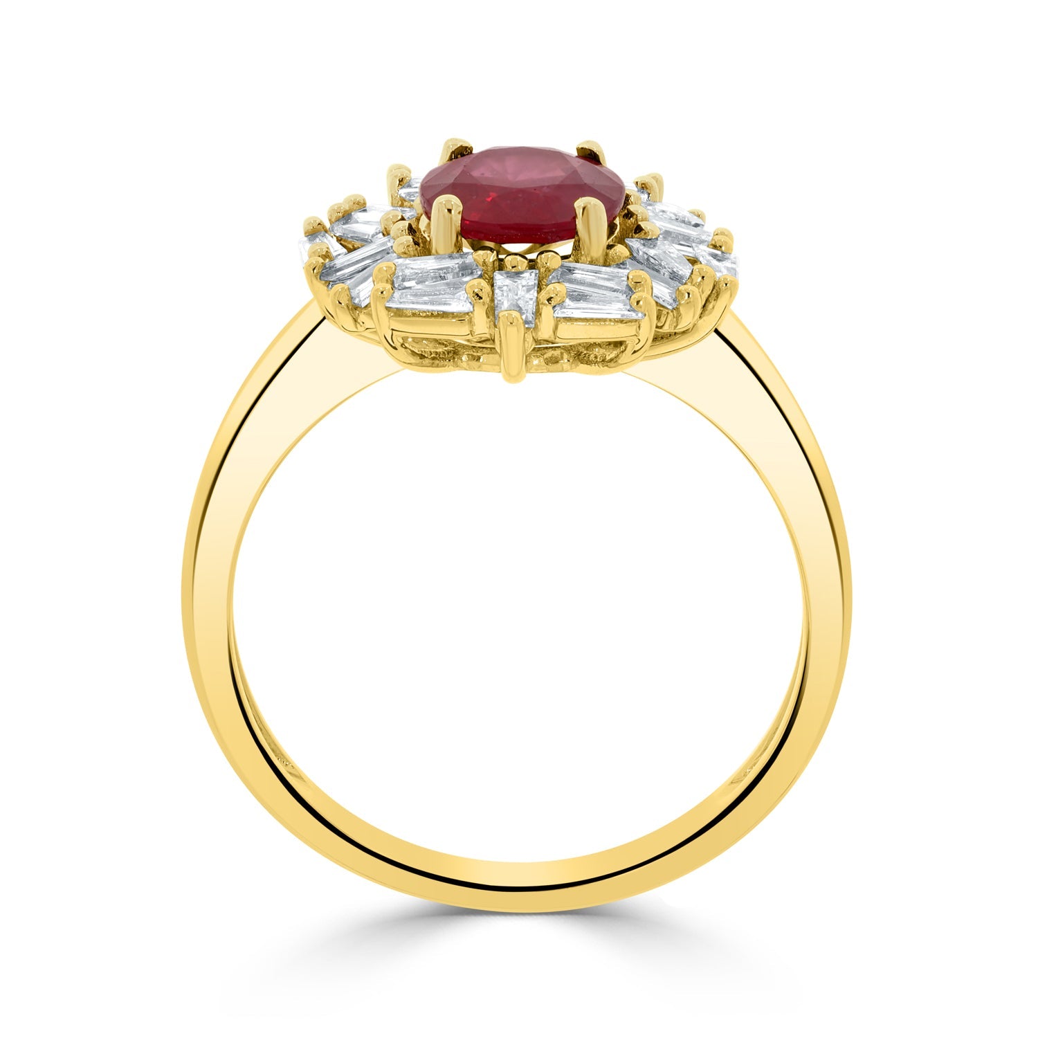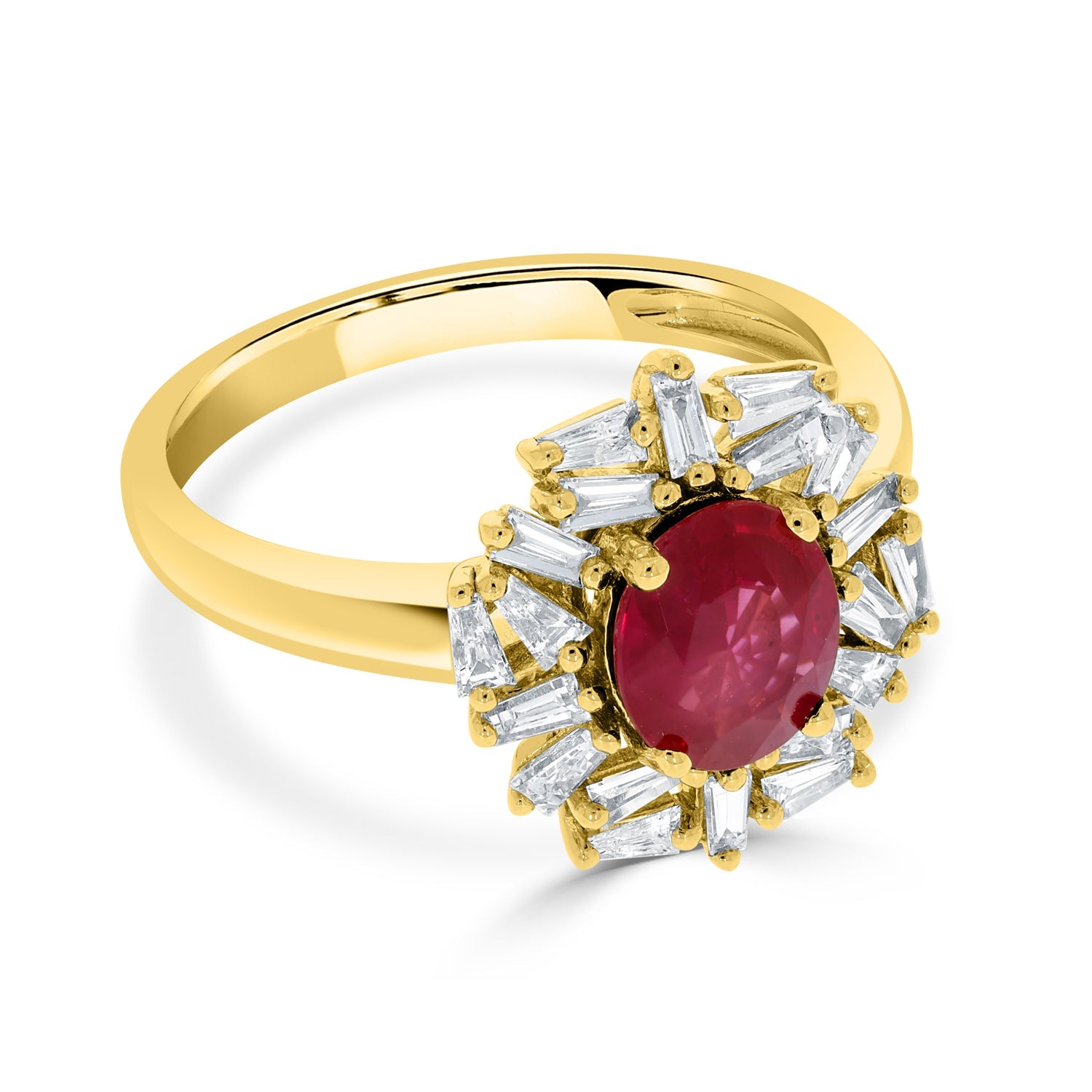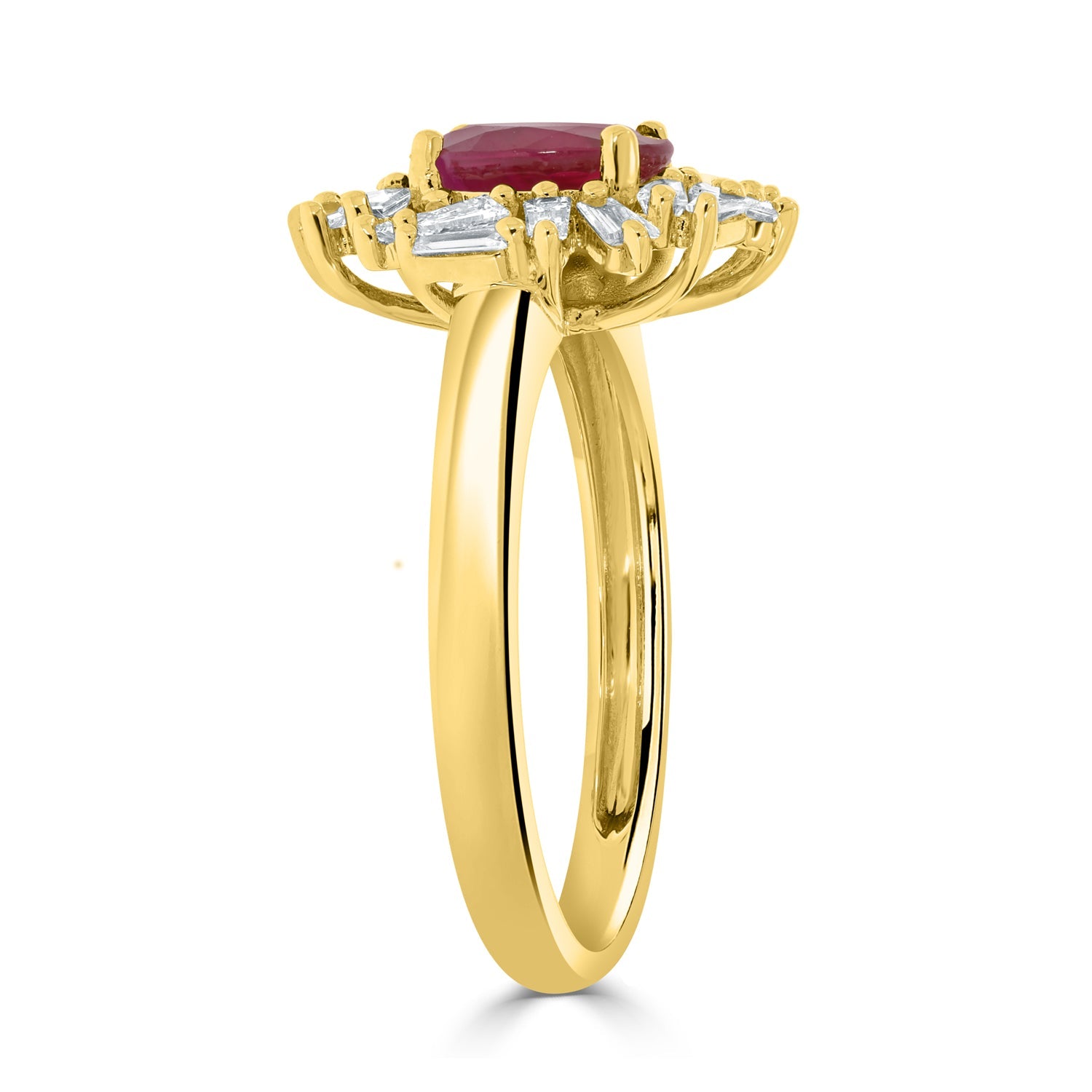 Wearing this ring along with your favorite outfit is that extra push to emanate class and luxury. This 14kt yellow gold ring displays an interesting design featuring Ruby and round Diamonds that adds a special luxury finish to your outlook.
