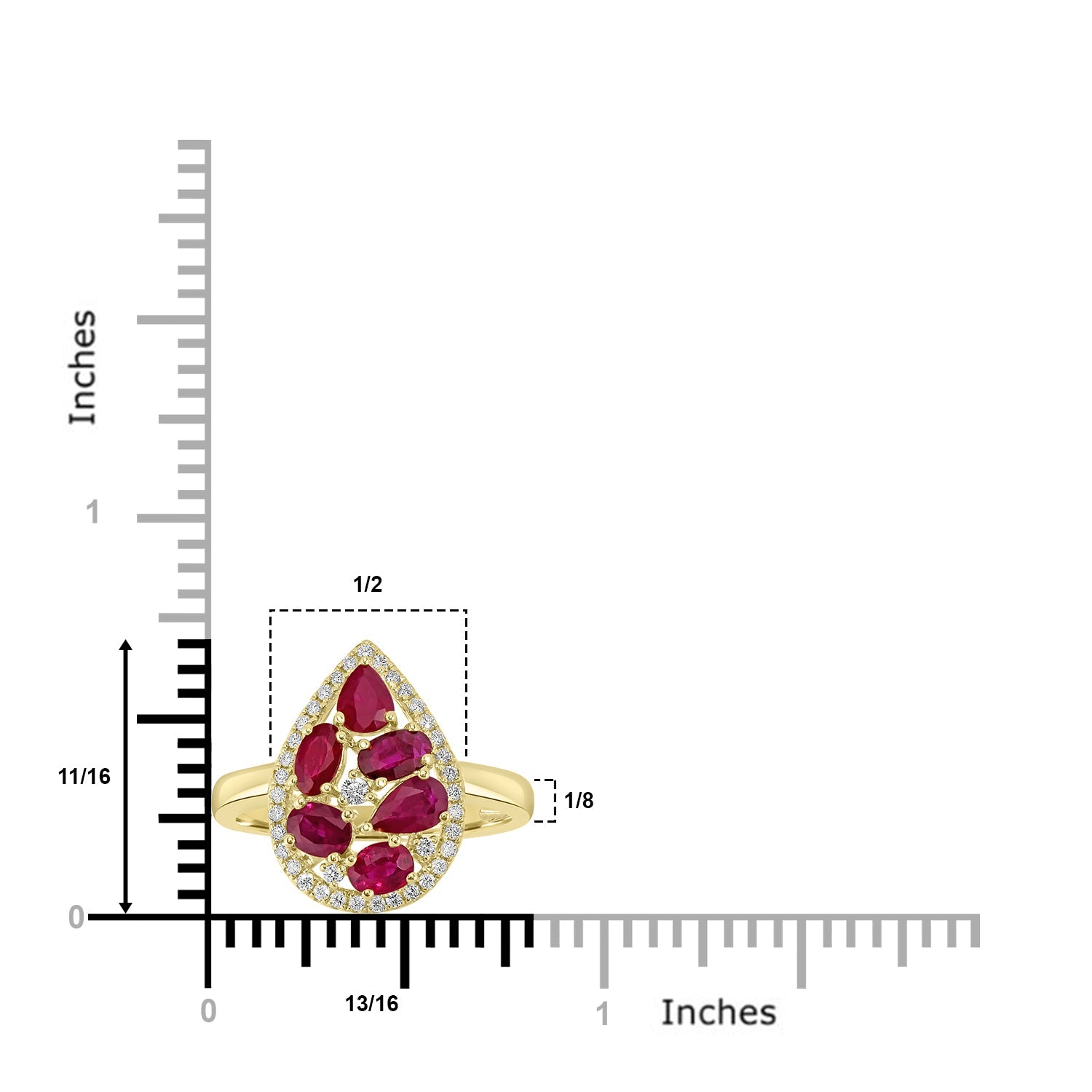 Crafted with 18k yellow gold, this ring is sure to add a dash of glamour to your look. Showcasing timeless elegance, this pleasing ring features pear-cut Ruby and Diamonds Diamonds that sparkle making it look stunning and beautiful.