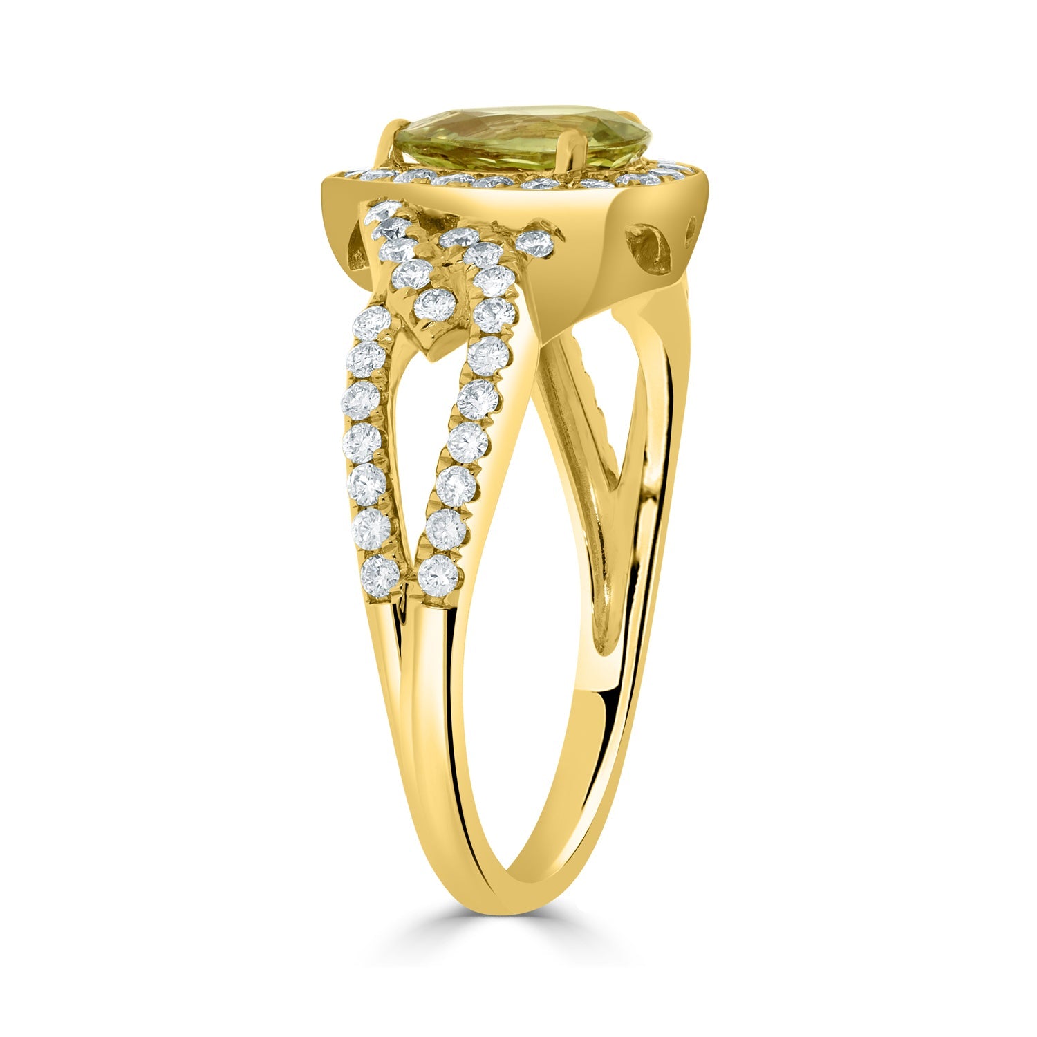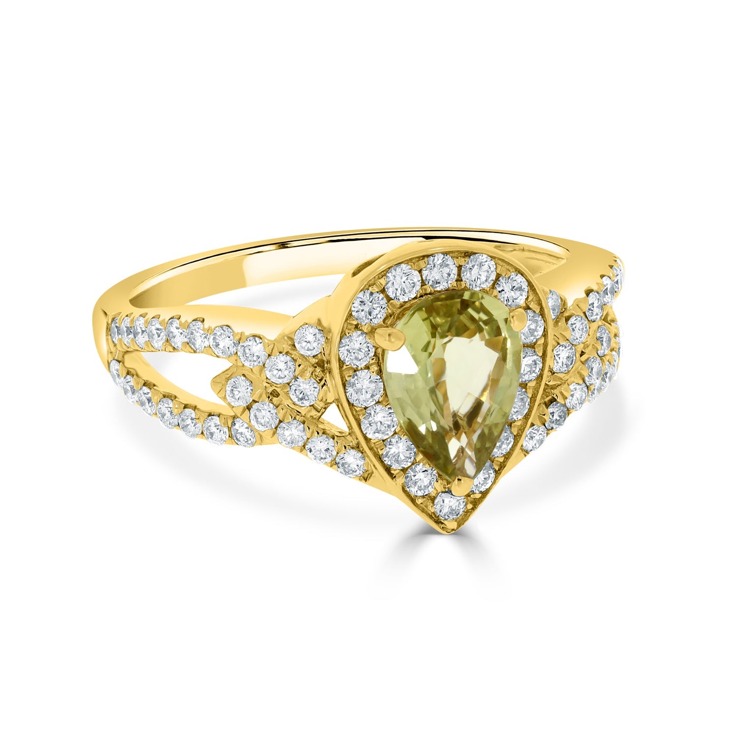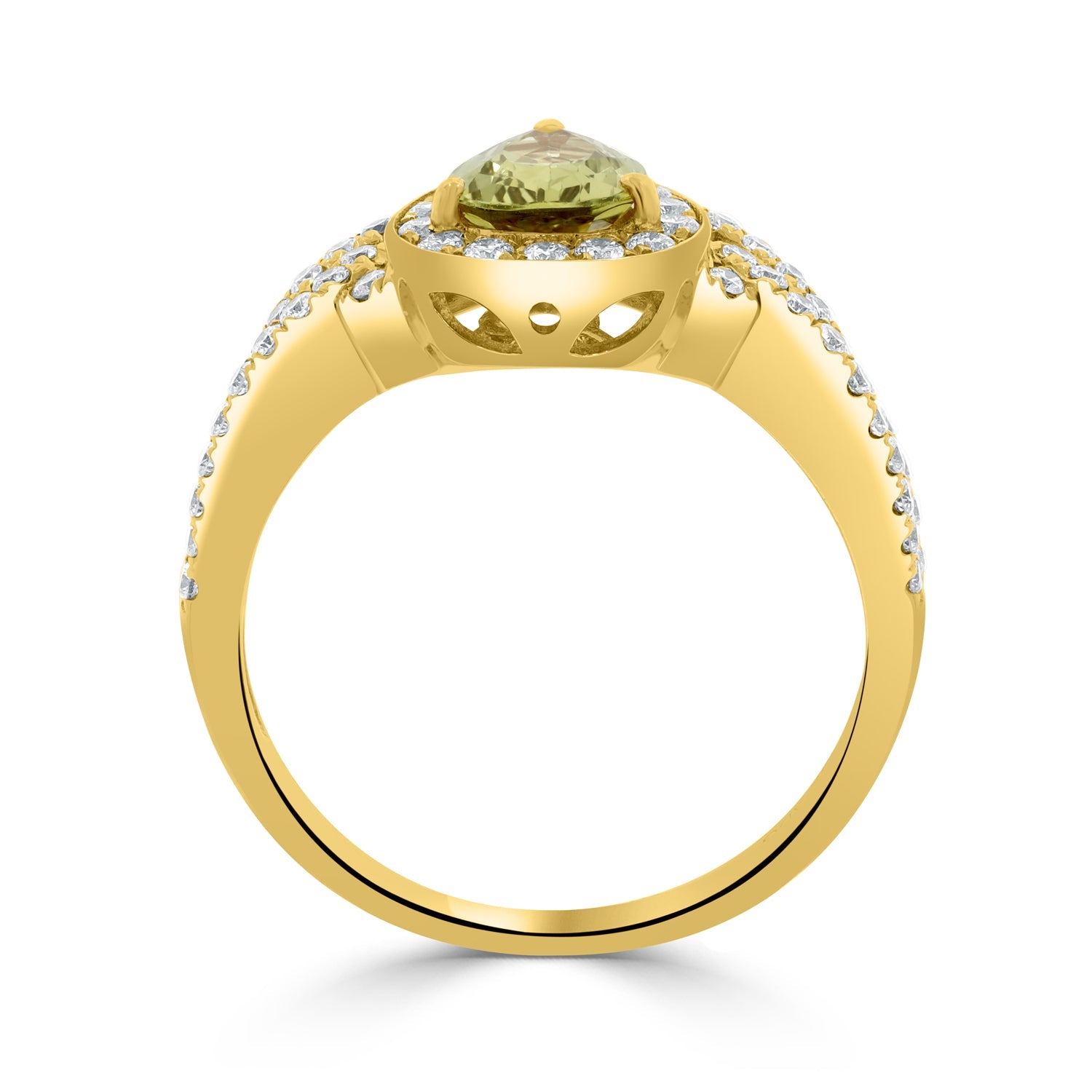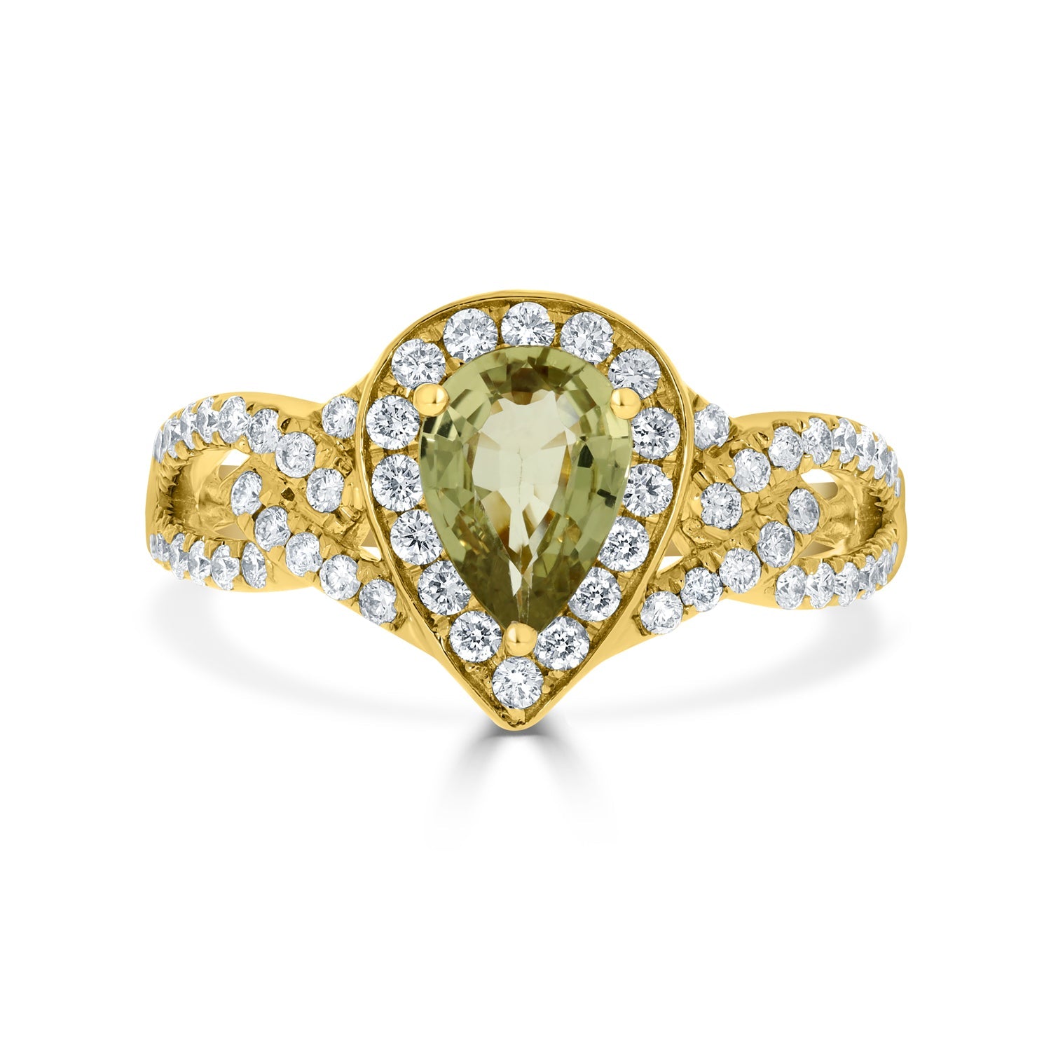 This Ring Is An Easy Option To Give Your Outfit A Sparkling Finish. Elevate Your Style With This Fabulous 14k Yellow Gold Ring That Is Set With A Pear-cut No Heat Certified Sapphire In The Center. To Add A Little More Sparkle Round Cut Diamonds Are Set Surrounding The Gemstone.