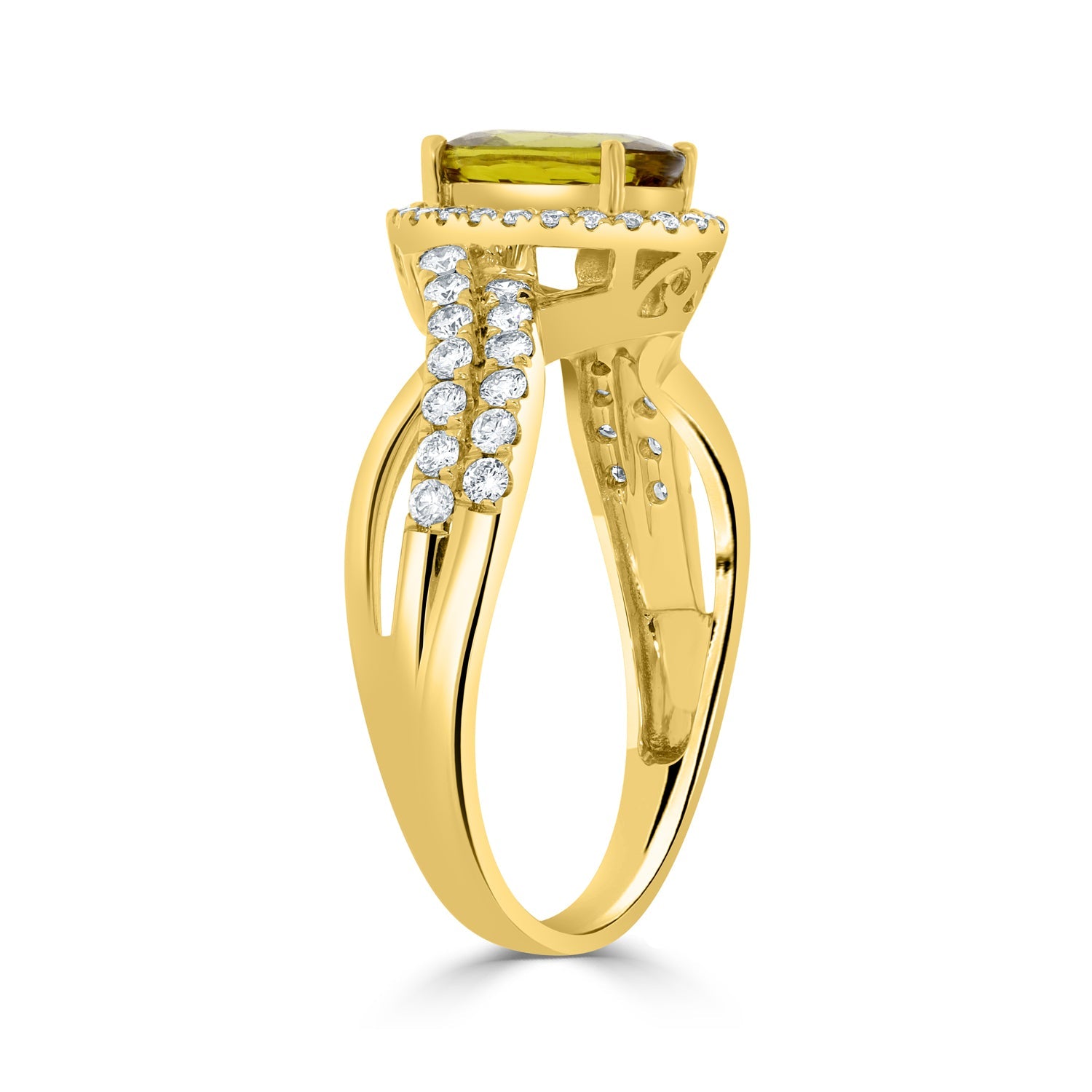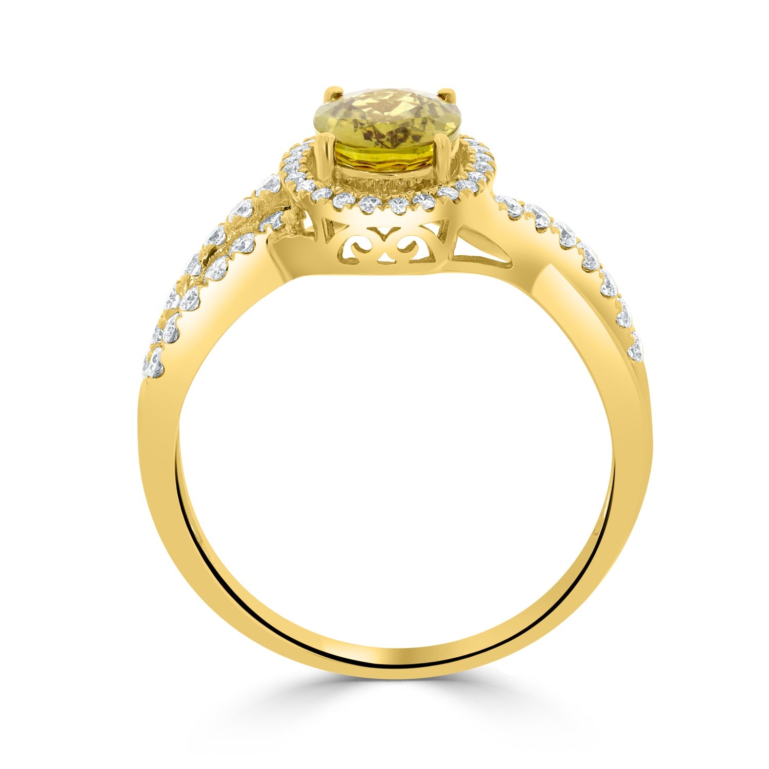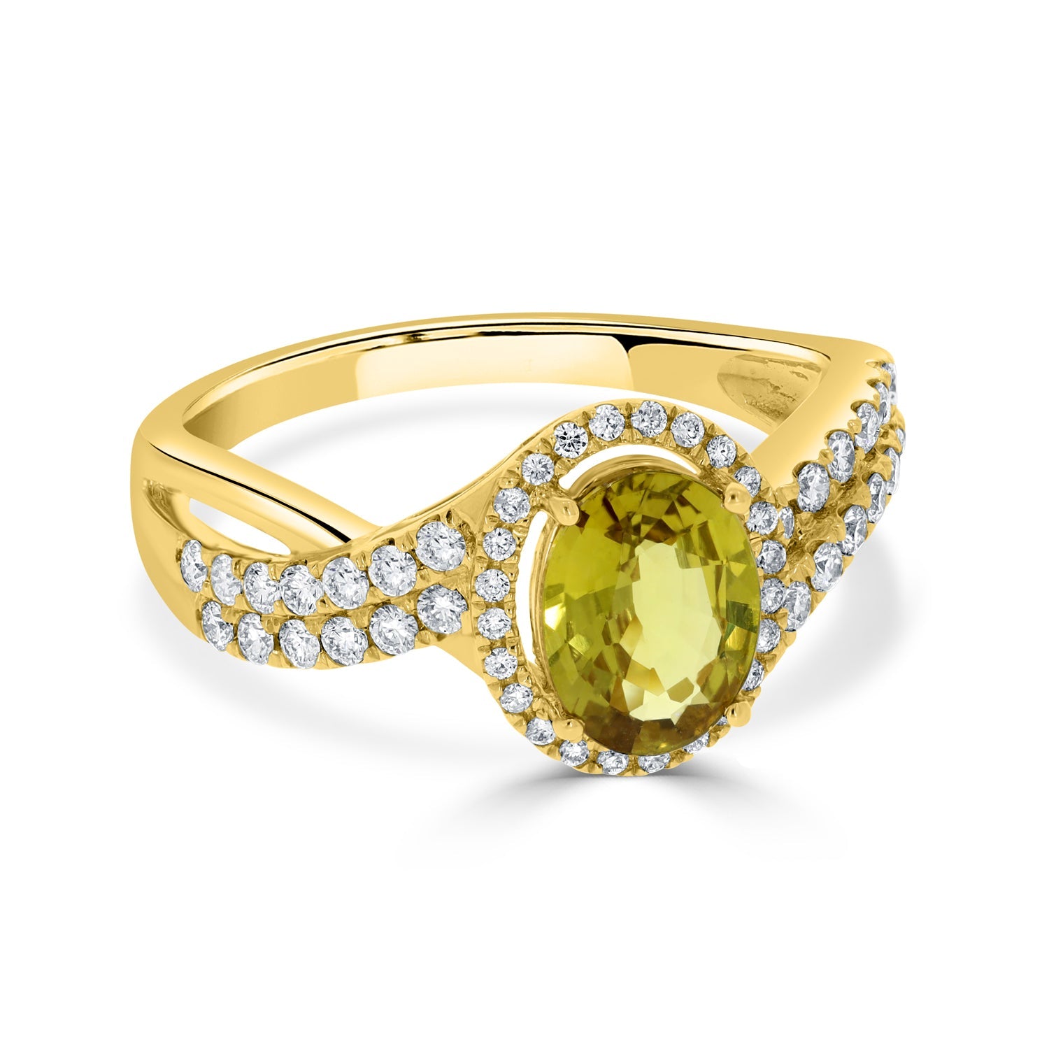 Designed Of 14k Yellow Gold And Set With An Oval Cut No Heat Certified Sapphire And Round Cut Diamonds. The Splendid Design Matches Well With Every Style Outfit And Is Perfect For Parties And Special Occasions.