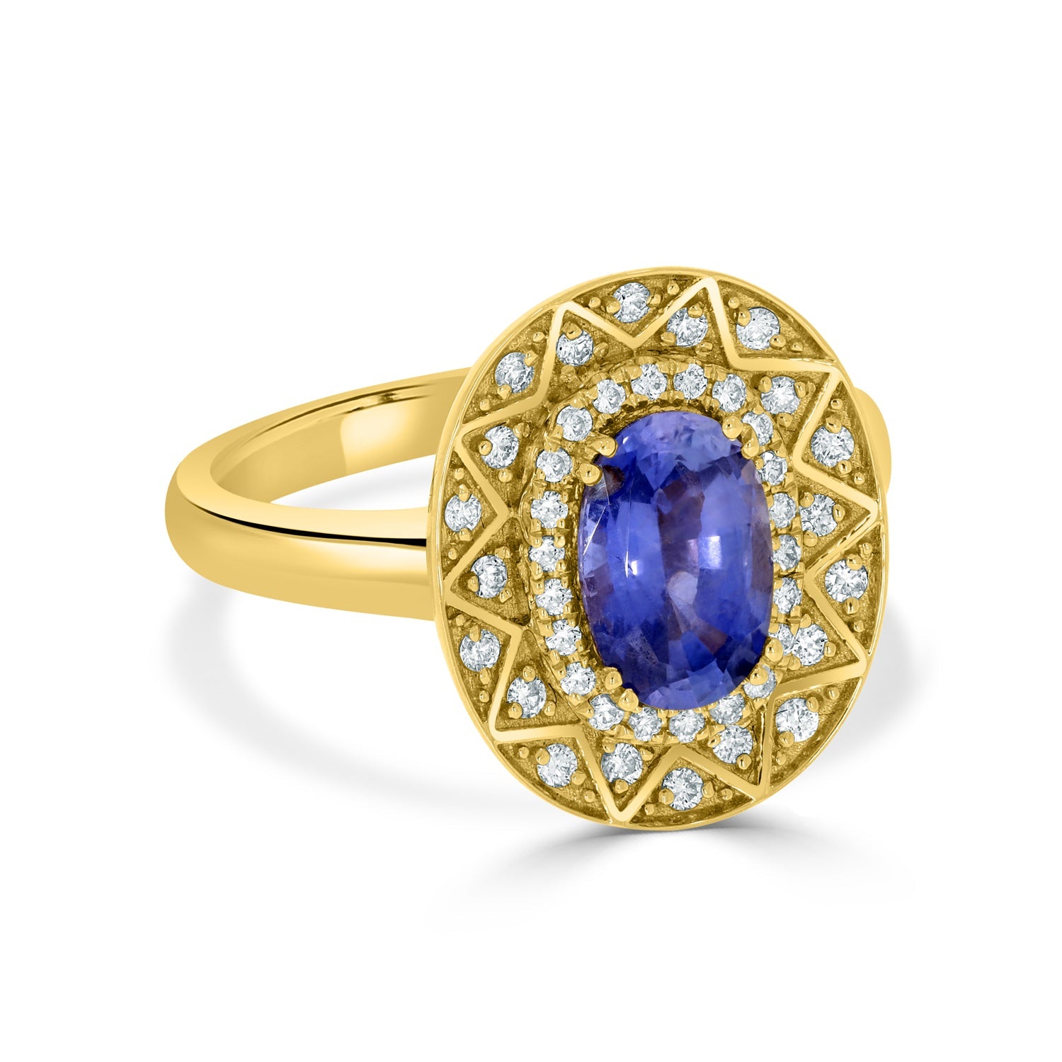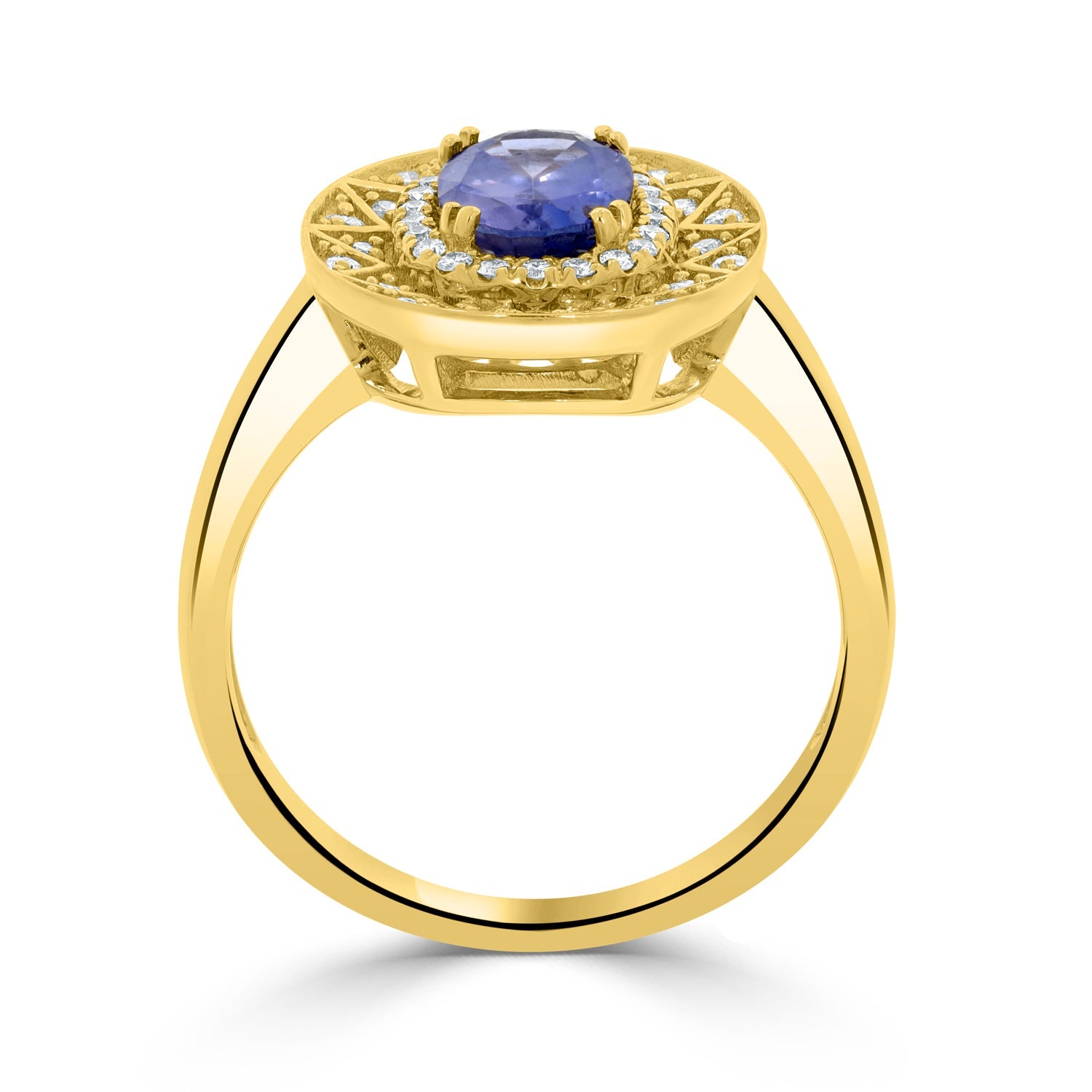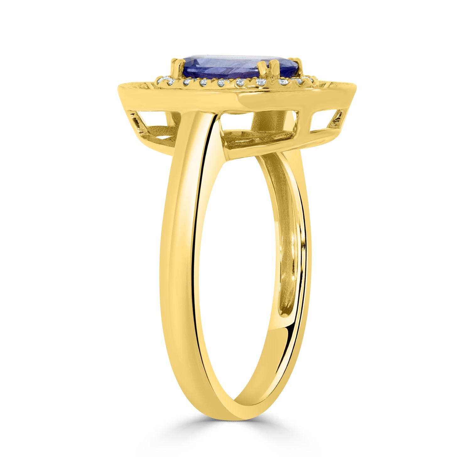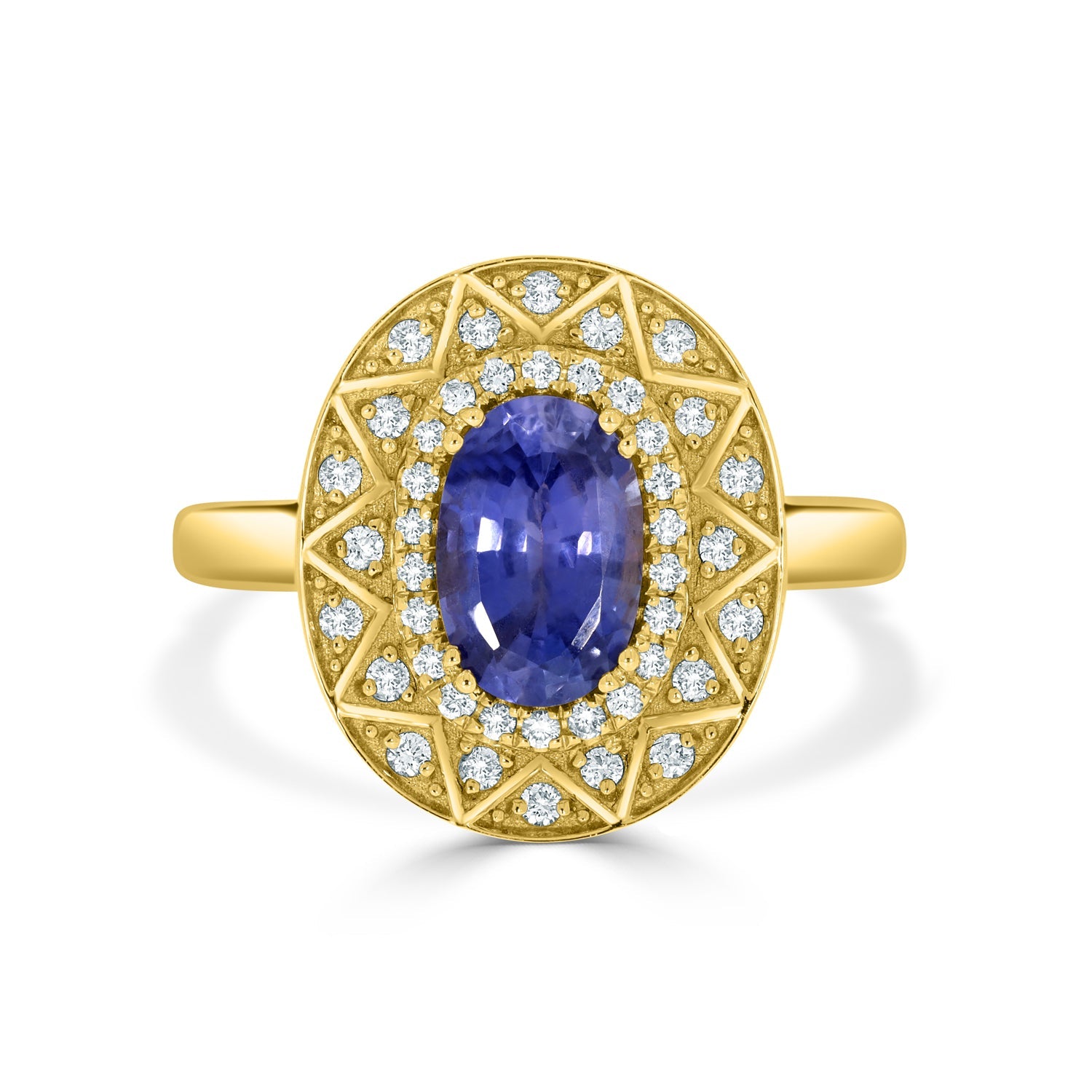 This 14k Yellow Gold Ring Emanates Class And Grace. It Is One Of Its Kind With An Oval-cut No Heat Certified Sapphire And Round Cut Diamonds To Enhance The Ring’s Luxurious Look. Pick This Ring To Exude Charm On Any Occasion.